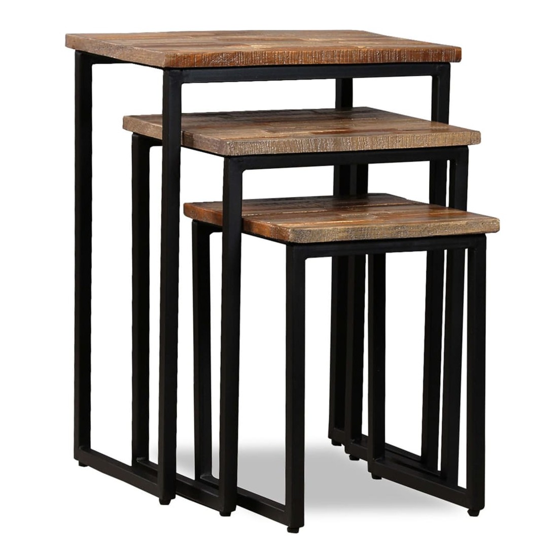 Cet ensemble de table basse attrayant et industriel sera un accessoire intemporel pour votre maison. Les dessus de table en bois offrent une surface stable et sûre sur laquelle vous pouvez placer vos boissons, des vases, des bols de fruits ou des ornements. Elles peuvent être utilisées aussi comme tables d'appoint ou tables de chevet. Cet ensemble de table basse est fait de teck récupéré, ce qui signifie que chaque meuble est unique et légèrement différent l'un de l'autre. Le teck recyclé est solide, stable, durable et beau. Les pieds en acier fort rendent les tables gigognes très robustes et durables et ajoutent à leur style industriel spectaculaire. La livraison inclut 3 tables basses de différentes tailles. L'assemblage est facile. Remarque importante : les couleurs varient d'une pi