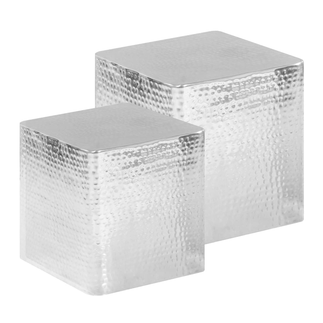 Ces tables basses remarquables deviendront non seulement le point central de votre salon ou de votre bureau, mais viendront également compléter une variété de styles de mobilier. Ces tables d'appoint sont en aluminium poli pour plus de stabilité et de solidité. De plus, la finition martelée attrayante ajoute une texture tactile à la table. Veuillez noter que ces articles sont déjà assemblés. Ajoutez une touche moderne à votre décoration intérieure avec notre ensemble de table basse au design unique ! La livraison inclut 2 tables basses de différentes tailles.