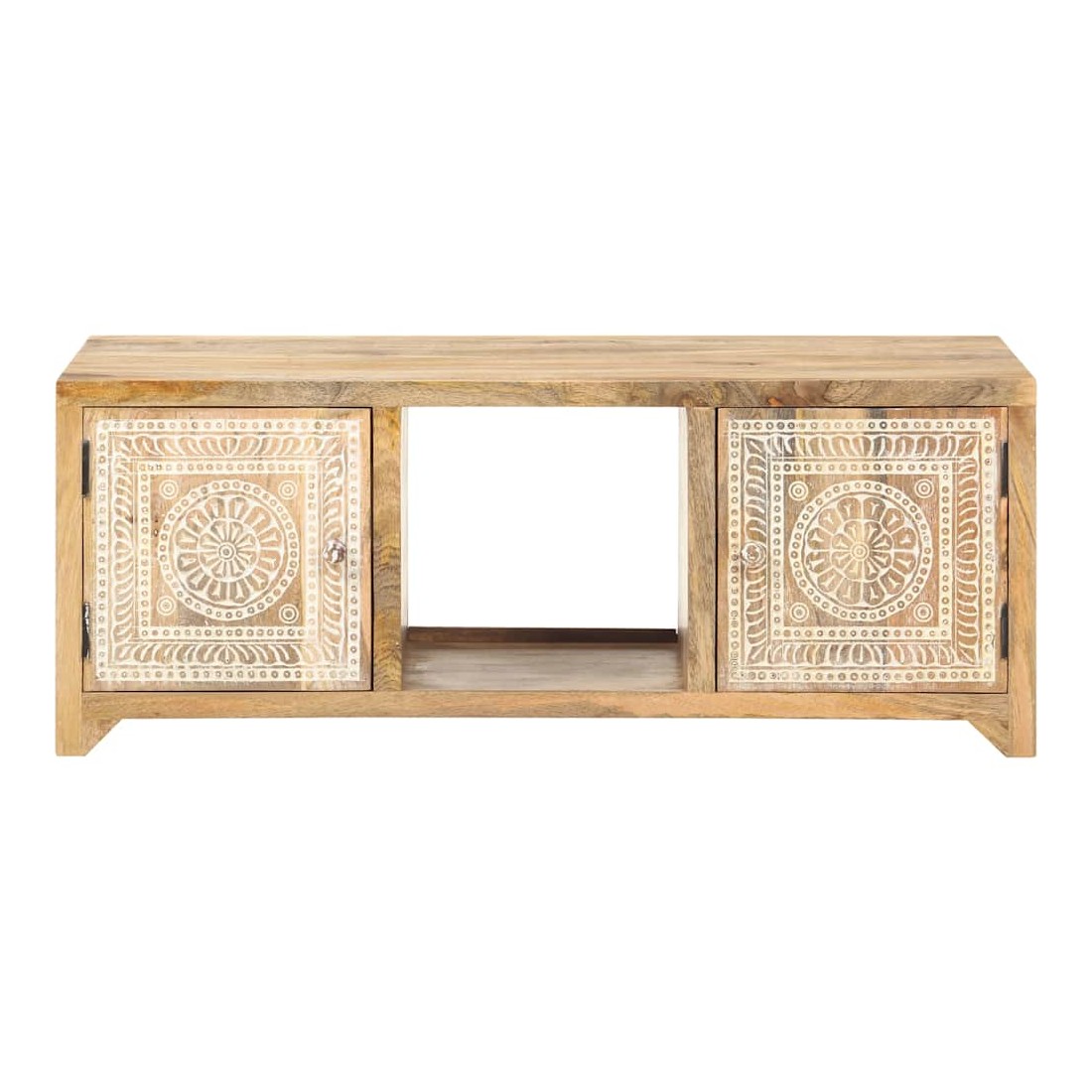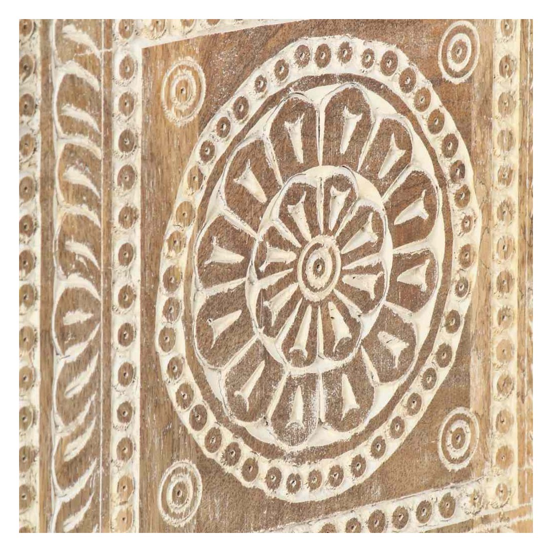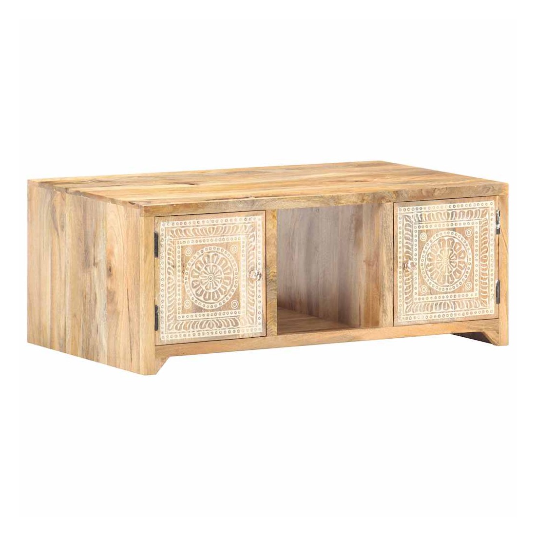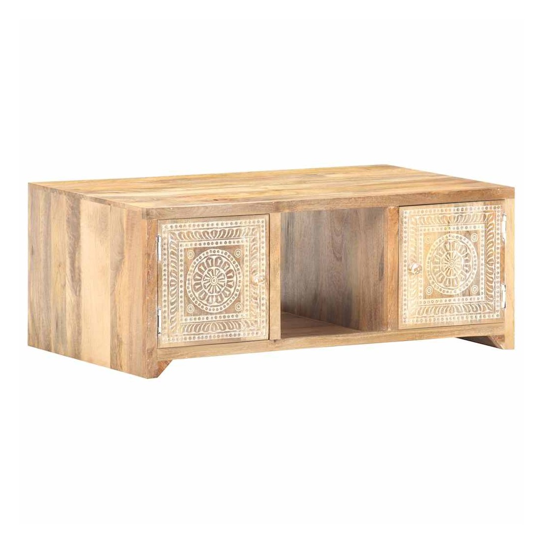 Si vous cherchez à ajouter une touche simple de charme rustique à votre décoration intérieure, cette table basse en manguier massif est ici ! Le bois de manguier massif est un bois dur tropical. Il a d'une part la force de soutenir le poids, et d'autre part résiste à l'usure du temps. De plus, le savoir-faire exquis et les beaux grains de bois rendent chaque pièce des tables de canapé légèrement différente l'une de l'autre. La table d'appoint est équipée d'1 étagère et de 2 compartiments, offrant un grand espace de rangement pour exposer ou garder tous les articles bien organisés. De plus, le motif sculpté blanchi ajoute à sa beauté. Note importante : les couleurs varient d'une pièce à l'autre, rendant chacune de nos tables de salon en bois unique.