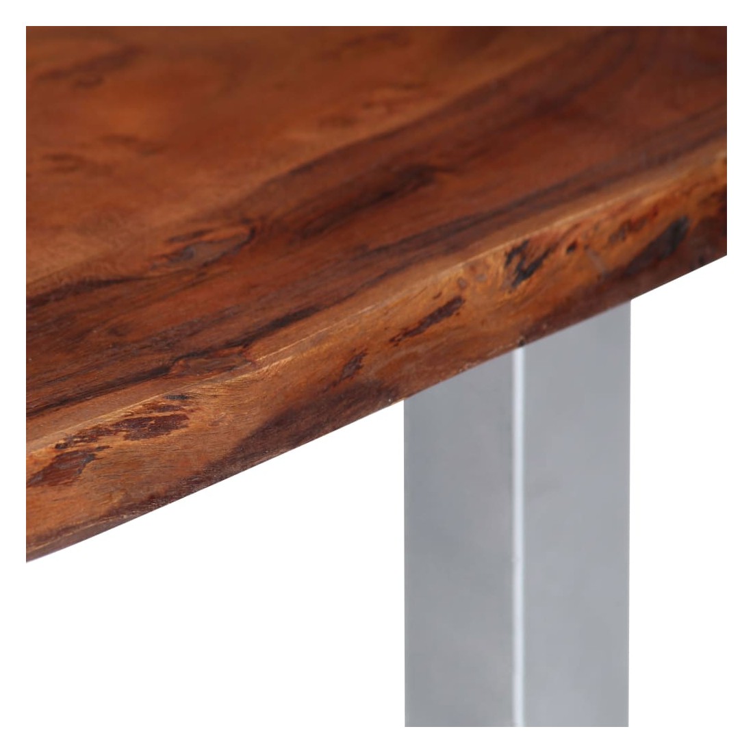 - Matériau : bois d'acacia massif (dessus de table) + fer recouvert de poudre (pieds)
