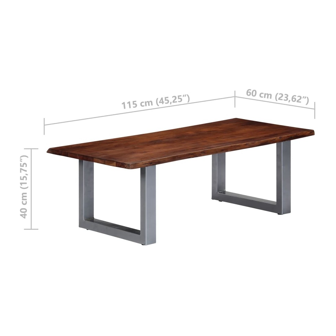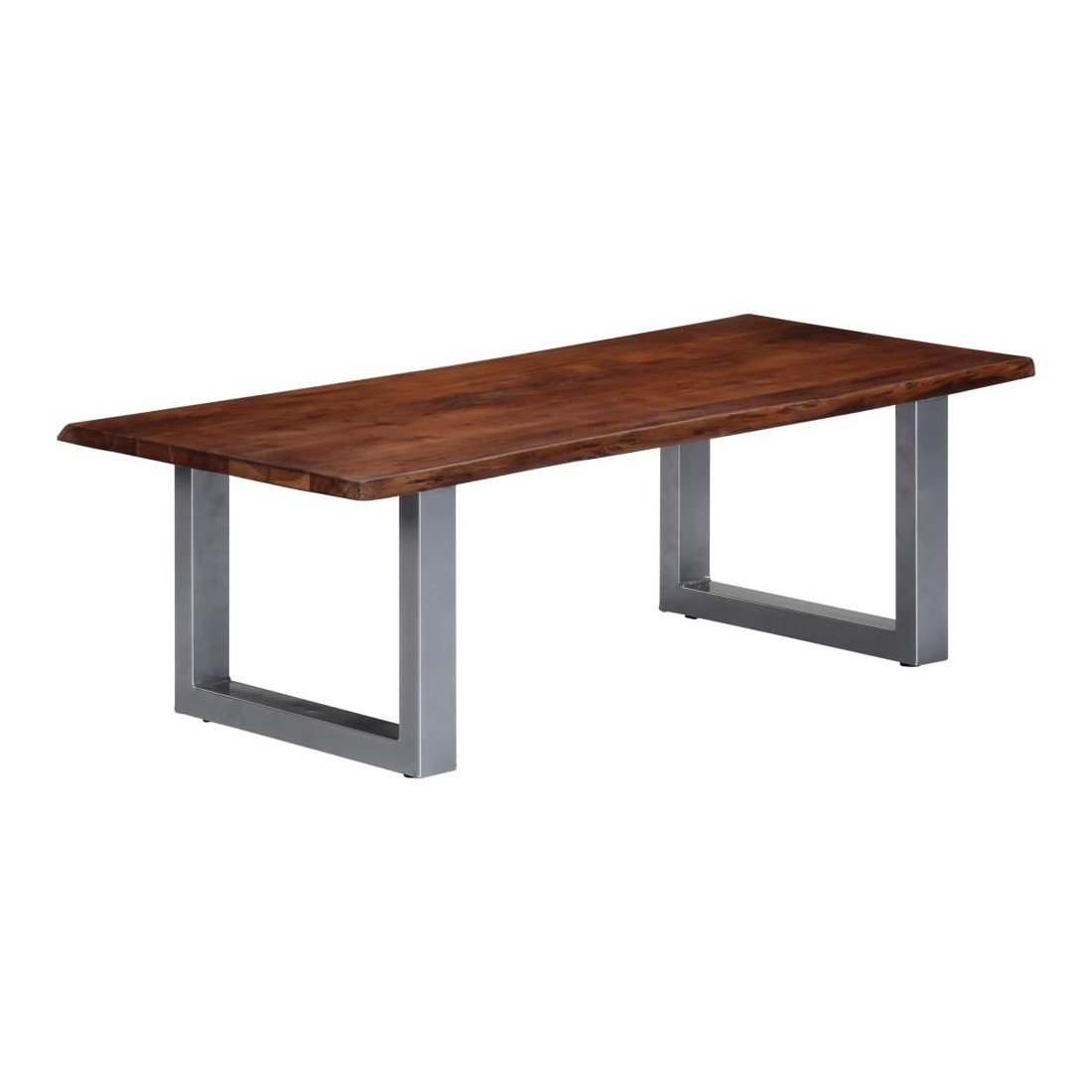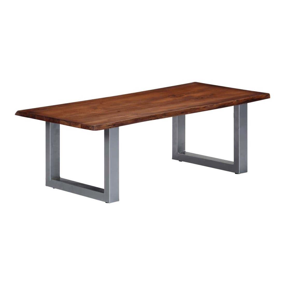 Cette table basse en bois au style industriel et décontracté s'intégrera parfaitement dans votre maison ou bureau. Le dessus de table est en bois d'acacia massif et robuste. Ses pieds métalliques uniques en forme de U, recouverts d'un revêtement en poudre, ajoutent au style industriel et rendent la table extrêmement stable. De plus, le bord du bois qui suit la forme naturelle de l'arbre rehausse la beauté de la table. La table basse est facile à assembler. Veuillez noter que le bois est un produit naturel et peut présenter des imperfections.