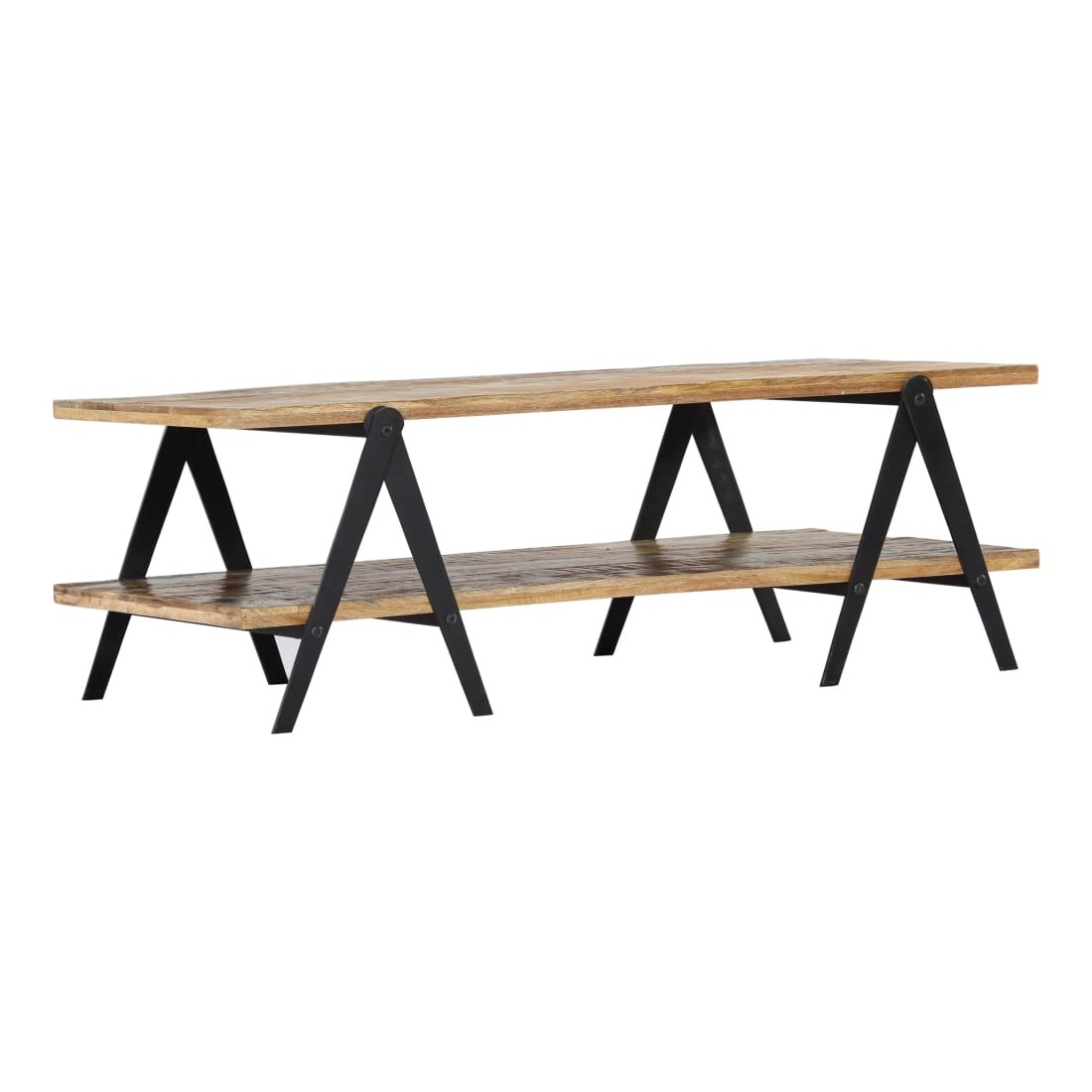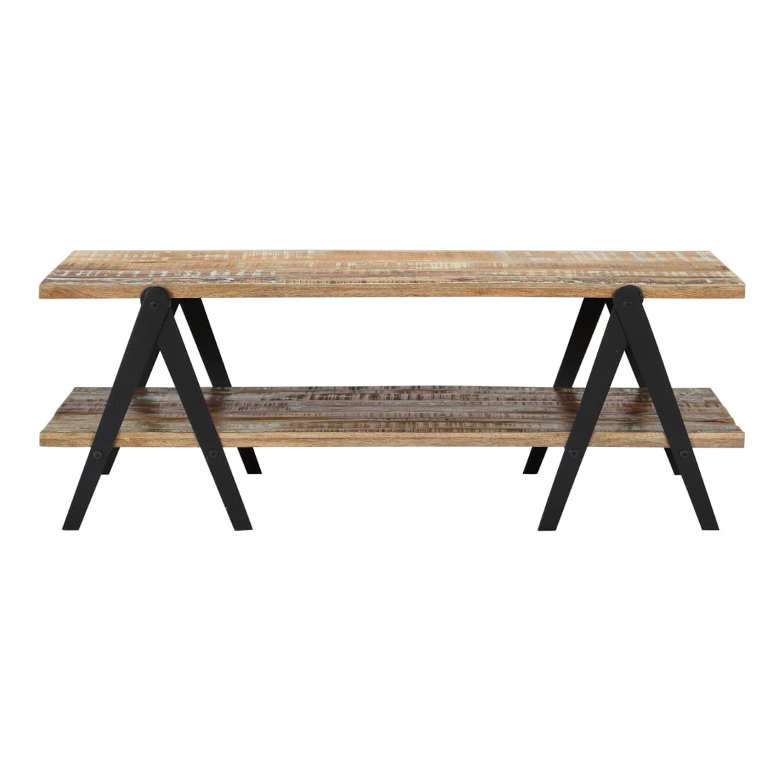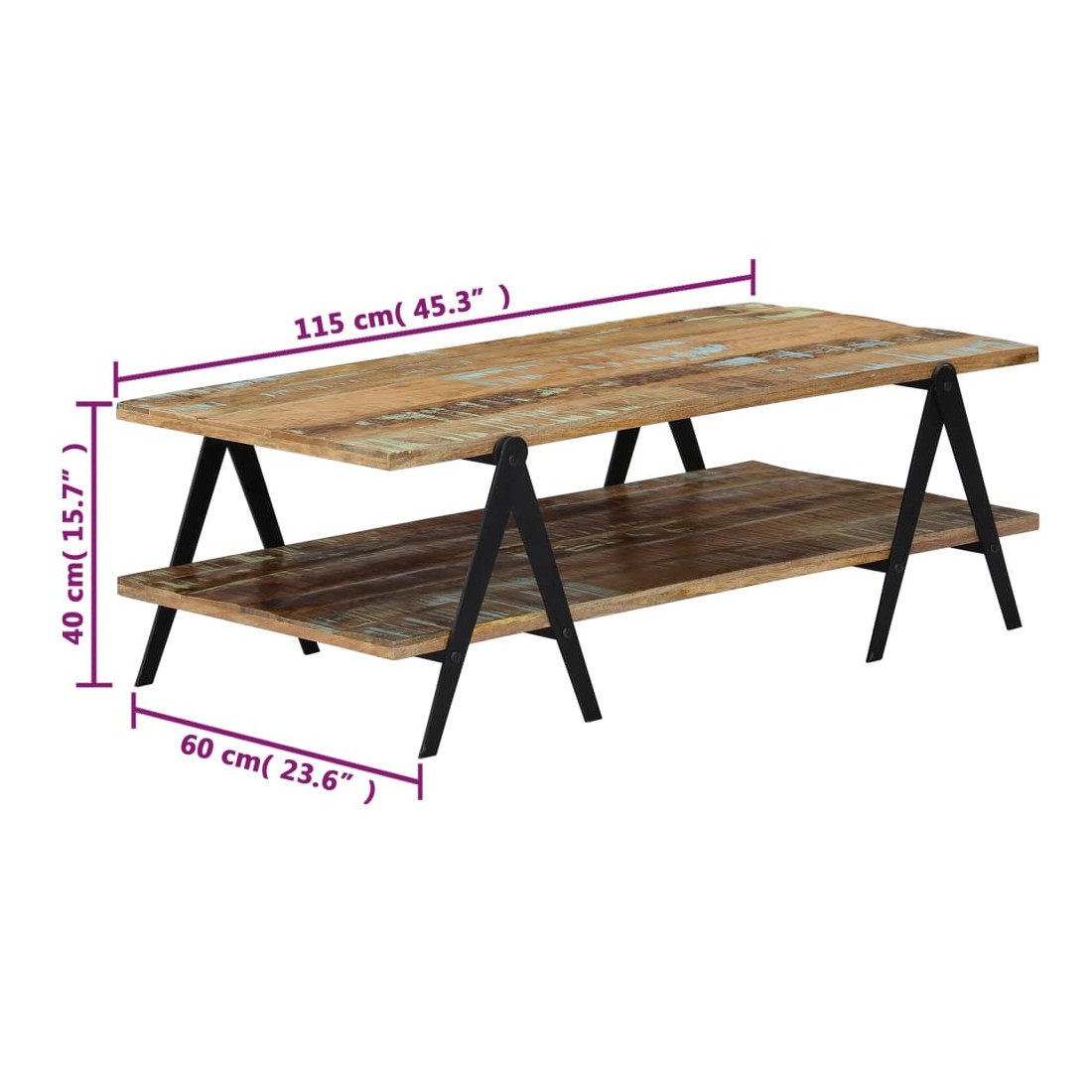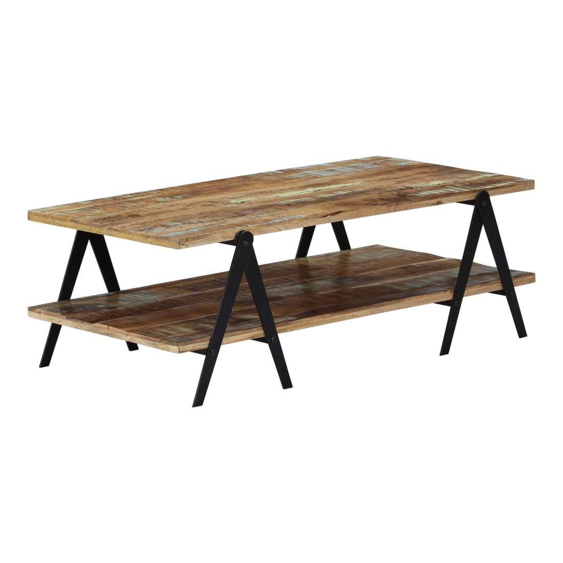 Présentant un charme rustique, cette superbe table basse en bois ajoutera une touche intemporelle à votre décoration. Son dessus de table solide offre une surface stable et sûre, sur laquelle vous pouvez placer des boissons, des vases, des coupes à fruits et autres ornements. Cette table basse pratique à 2 niveaux est idéale pour ranger des appareils multimédia, des livres, des magazines ou des petits objets que vous aimeriez garder à portée de main. Grâce à sa construction robuste et au matériau en bois de récupération, la table est extrêmement durable. Le bois de récupération a les caractéristiques de différents bois comme le bois de teck, le bois de manguier, le bois d'acacia, etc, qui est déjà vieilli, patiné et séché, donc il ne rétrécit pas et ne se plie pas. Chaque étape du proc