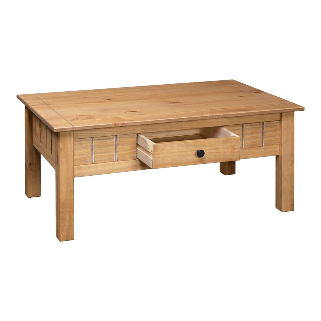 Cette table basse classique en bois sera un supplément indémodable à votre décoration intérieure. La table de canapé est fabriquée en bois de pin massif, ce qui la rend extrêmement robuste et durable. Cette table basse est équipée d'un tiroir pour garder vos magazines, livres, télécommande et autres petits objets à portée de main. La table d'appoint est facile à assembler.