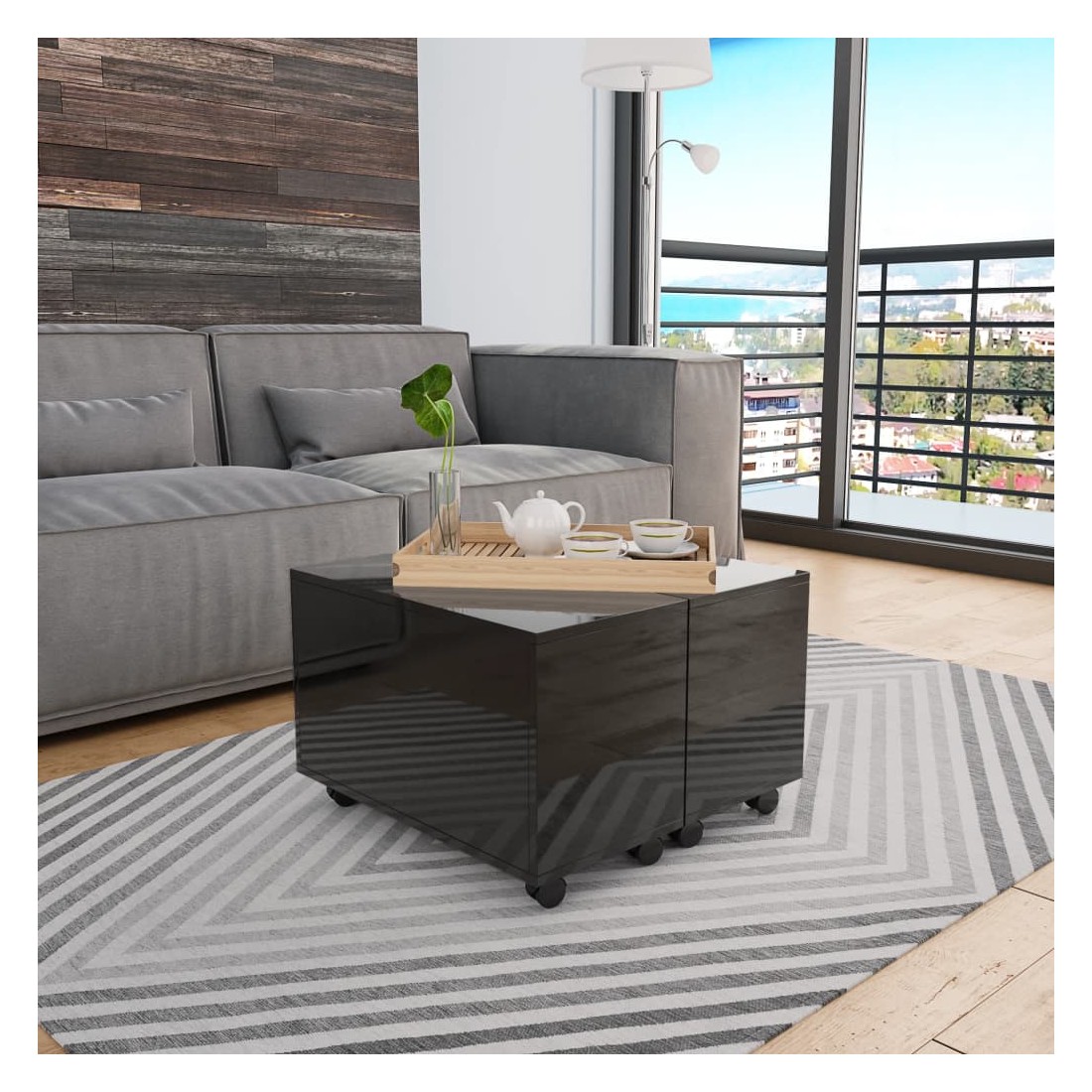 Apportez le luxe de charme élégant à votre intérieur avec notre élégante table basse ! La table de canapé est en bois d'ingénierie avec une finition haute brillance, ce qui lui donne un aspect raffiné et la rend extrêmement stable et durable. Cette table basse peut être rallongée des deux côtés, ce qui vous offre amplement d'espace pour ranger vos magazines, vos livres, votre télécommande ainsi que divers autres petits objets. De plus, grâce aux roues, la table de rangement est facile à déplacer. La table d'appoint est facile à assembler.