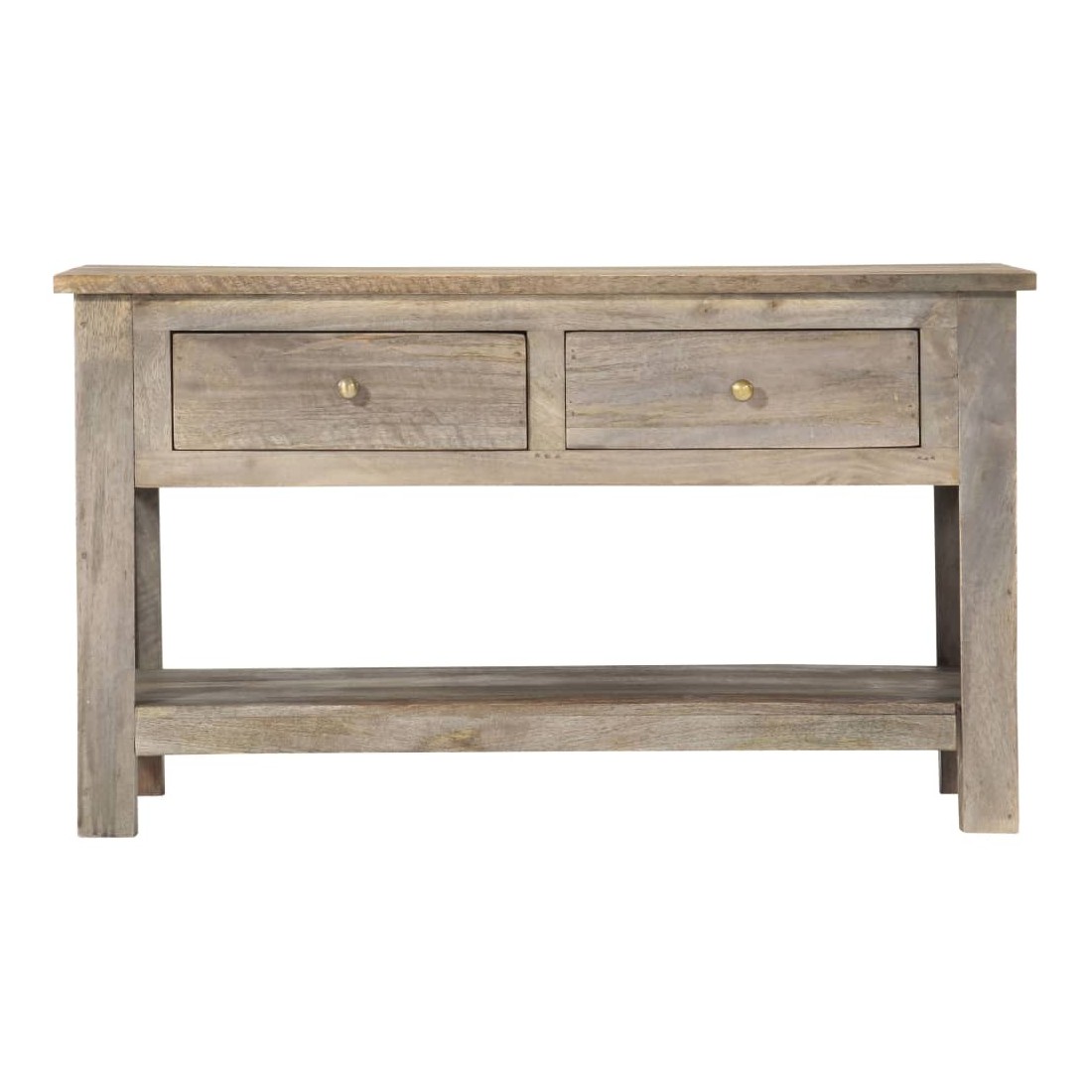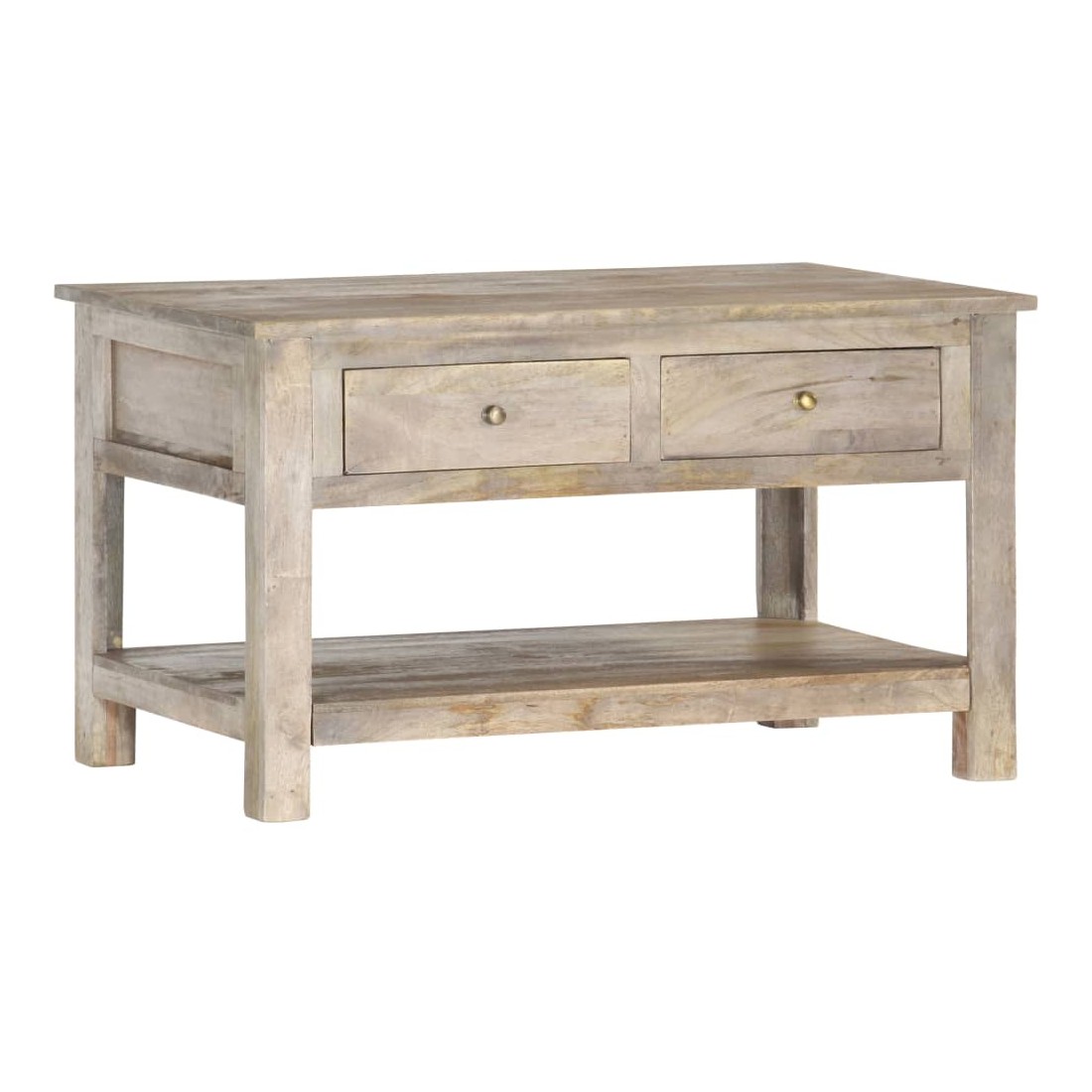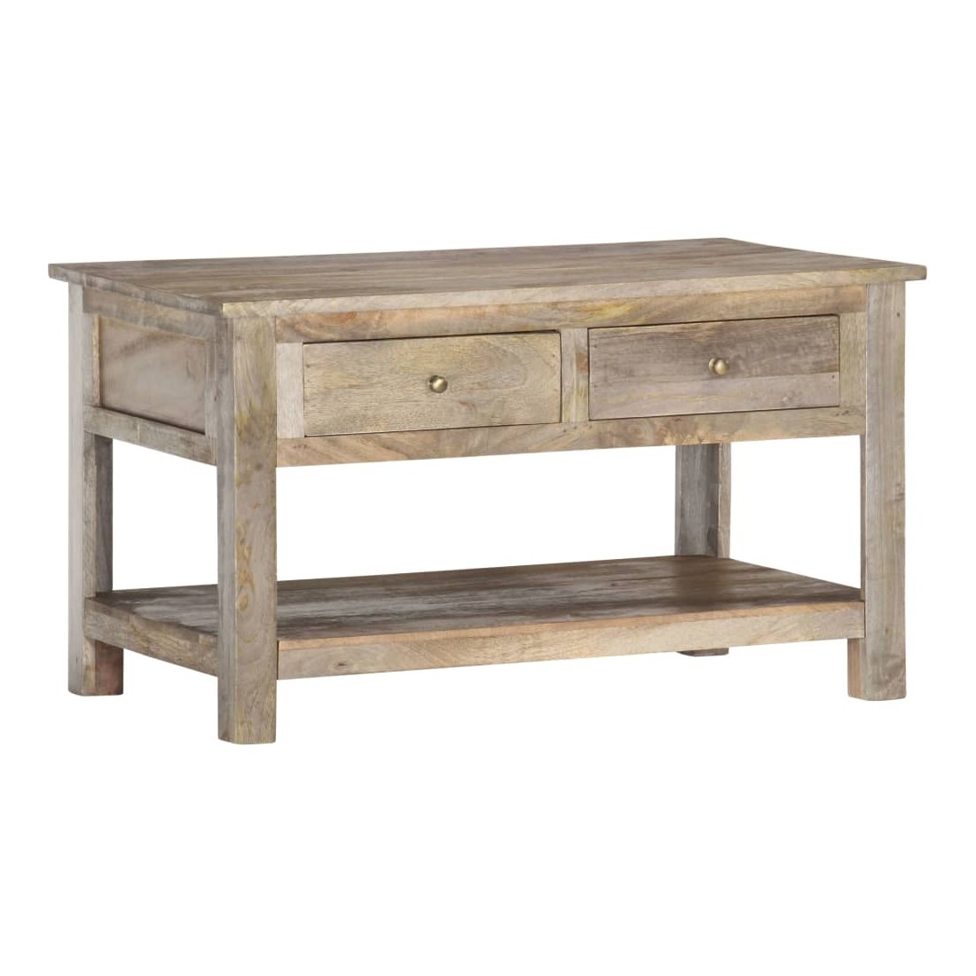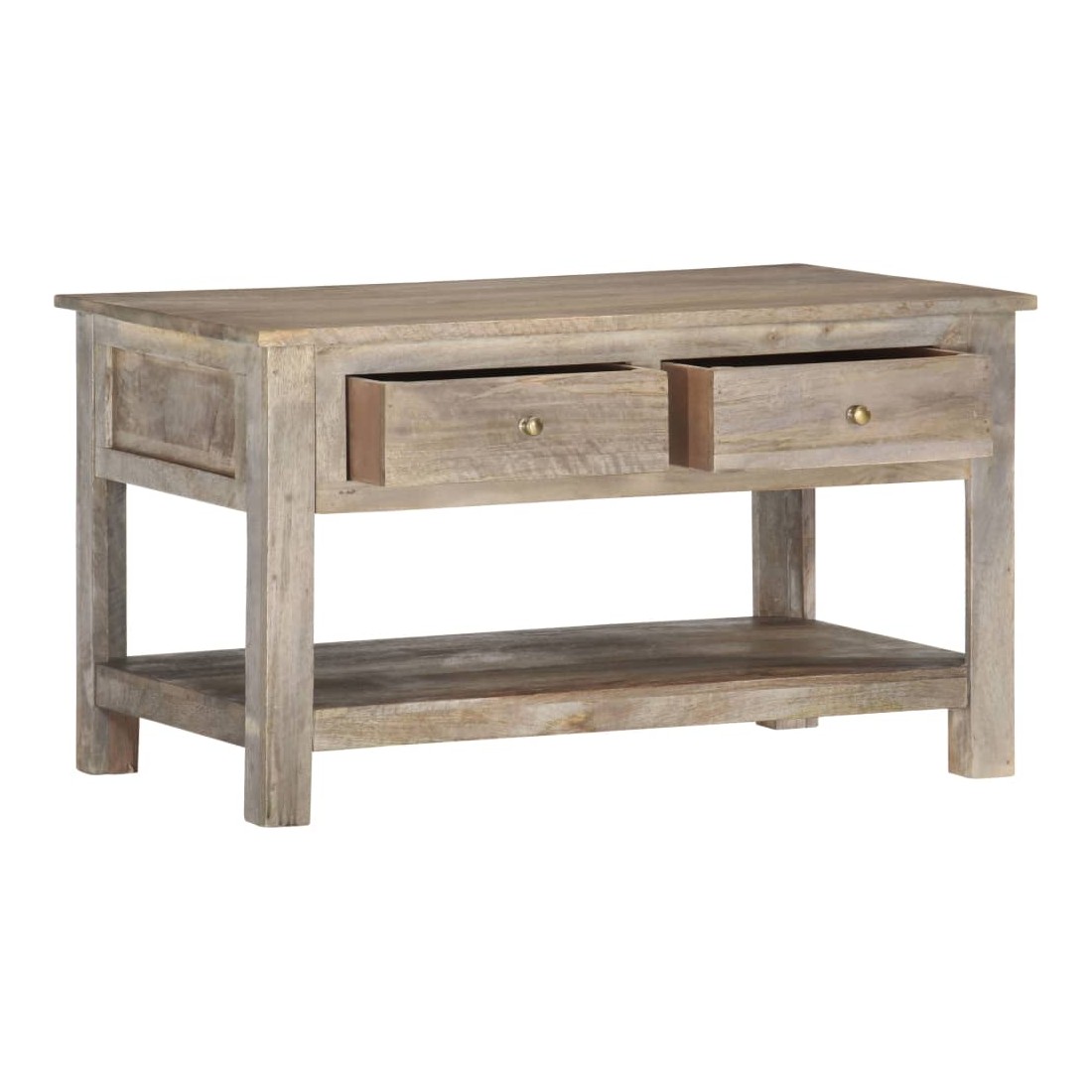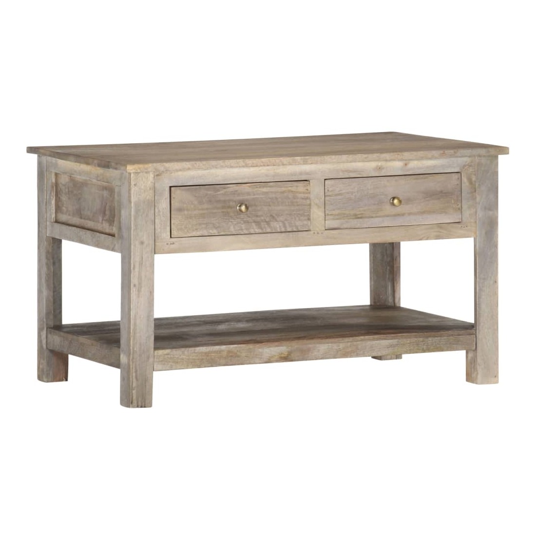 Cette table basse spéciale présente un style antique qui ajoutera une touche de charme vintage à votre décor. Fabriquée en bois de manguier massif, cette table basse magnifiquement conçue est à la fois très stable et durable. Son dessus de table solide offre une surface stable et sûre, sur laquelle vous pouvez placer des boissons, des vases, des bols à fruits et d'autres ornements. De plus, cette table basse comprend 1 étagère ouverte et 2 tiroirs pratiques, qui offrent suffisamment d'espace pour ranger vos appareils multimédia, vos livres et divers autres articles. Chaque étape du processus est réalisée avec le plus grand soin, que ce soit le polissage, la peinture ou le laquage. Remarque importante : Les couleurs et le grain du bois peuvent varier d'une pièce à l'autre, ce qui rend c