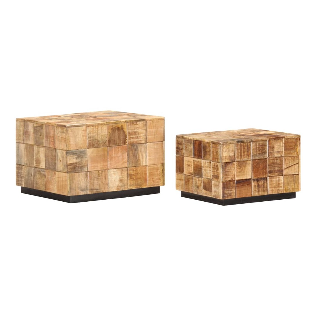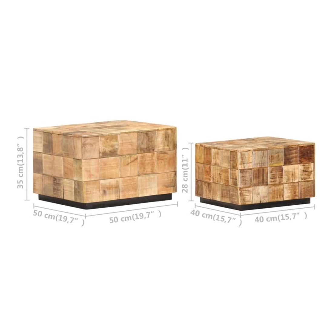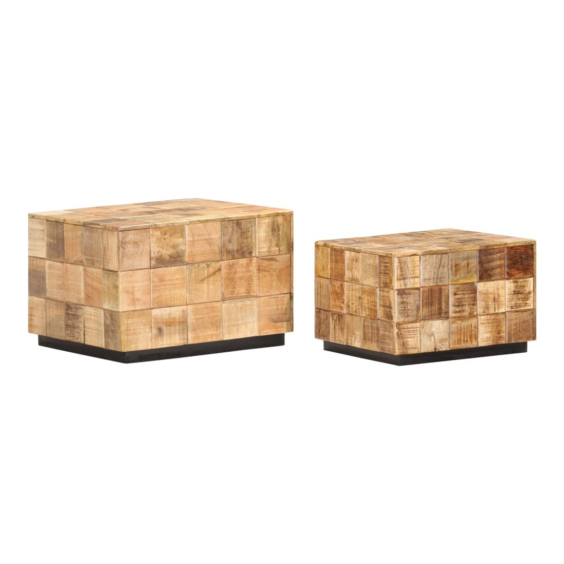 Notre ensemble de table basse en bois de style antique convient à n’importe quelle pièce de votre maison. Ces tables basses peuvent également être utilisées comme tables d'extrémité ou tables d'appoint. Fabriqué en bois de manguier massif, cet ensemble de table basse au design de bloc est facile à nettoyer avec un chiffon humide. Le bois de manguier est solide, stable, durable et glamour. Les signes d’usure et la structure de grain visible donnent à chaque pièce sa propre histoire avec un aspect exquis. Chaque étape du processus est effectuée avec le plus grand soin, que ce soit le polissage, la peinture ou le laquage. De plus, les tables sont idéales pour placer des boissons, des paniers de fruits, des objets décoratifs, etc. Grâce au design creux au fond et à l’intérieur des tables, la table plus petite peut être placée dans la grande, ce qui la rend plus facile à ranger.