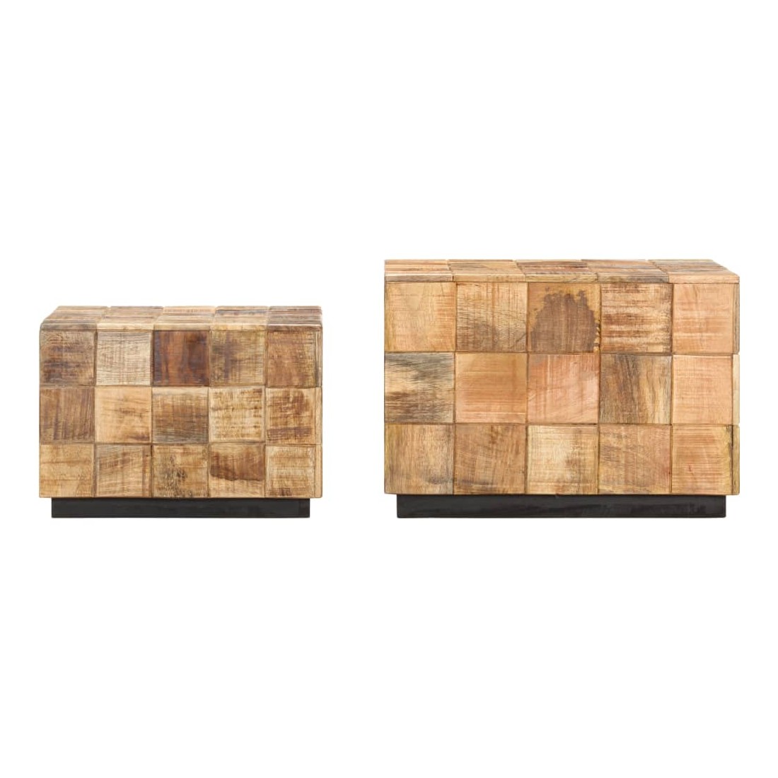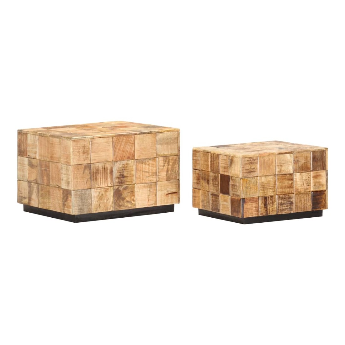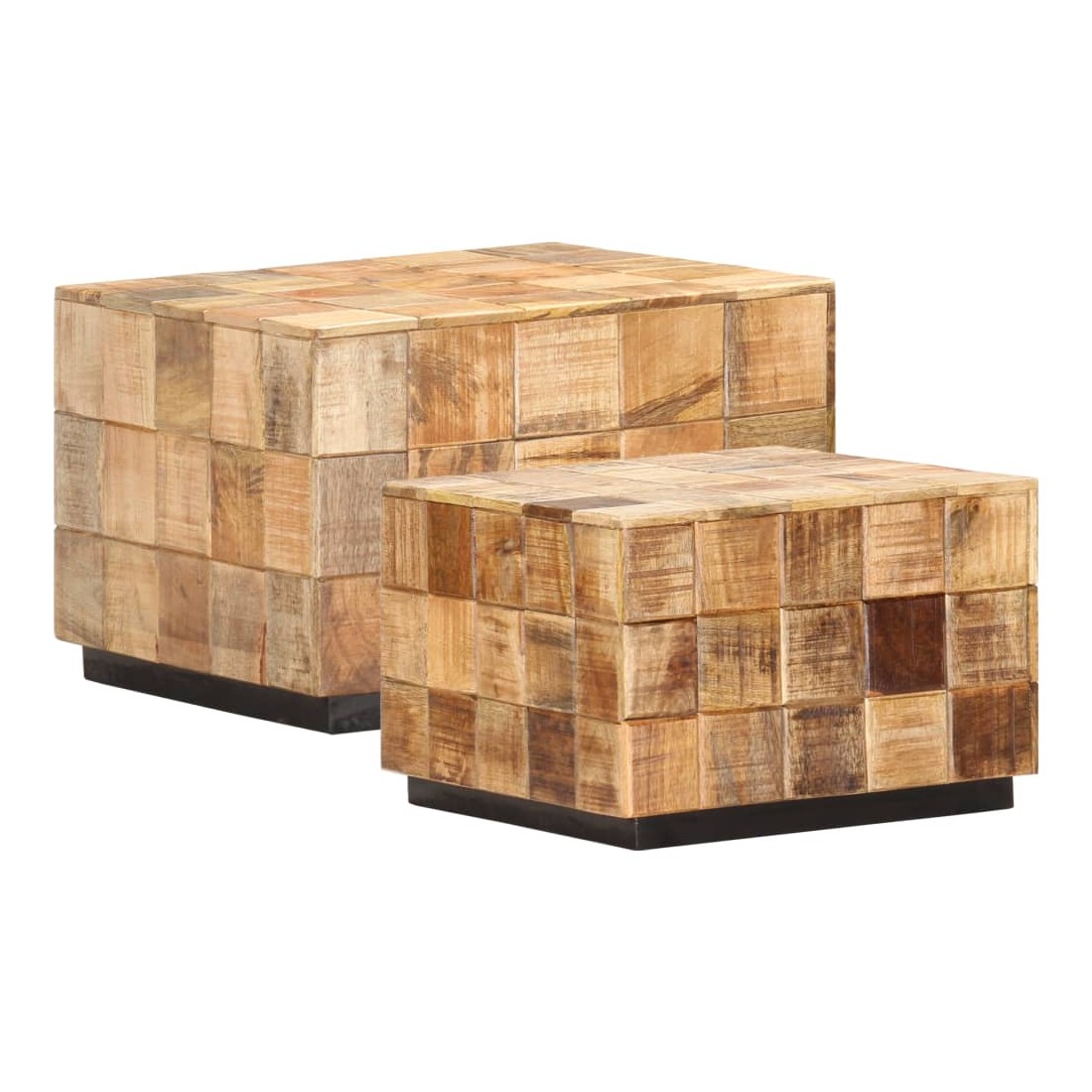 Notre ensemble de table basse en bois de style antique convient à n’importe quelle pièce de votre maison. Ces tables basses peuvent également être utilisées comme tables d'extrémité ou tables d'appoint. Fabriqué en bois de manguier massif, cet ensemble de table basse au design de bloc est facile à nettoyer avec un chiffon humide. Le bois de manguier est solide, stable, durable et glamour. Les signes d’usure et la structure de grain visible donnent à chaque pièce sa propre histoire avec un aspect exquis. Chaque étape du processus est effectuée avec le plus grand soin, que ce soit le polissage, la peinture ou le laquage. De plus, les tables sont idéales pour placer des boissons, des paniers de fruits, des objets décoratifs, etc. Grâce au design creux au fond et à l’intérieur des tables, la table plus petite peut être placée dans la grande, ce qui la rend plus facile à ranger.