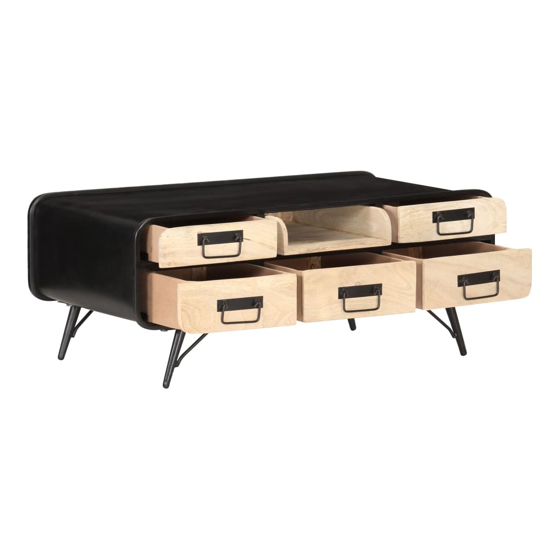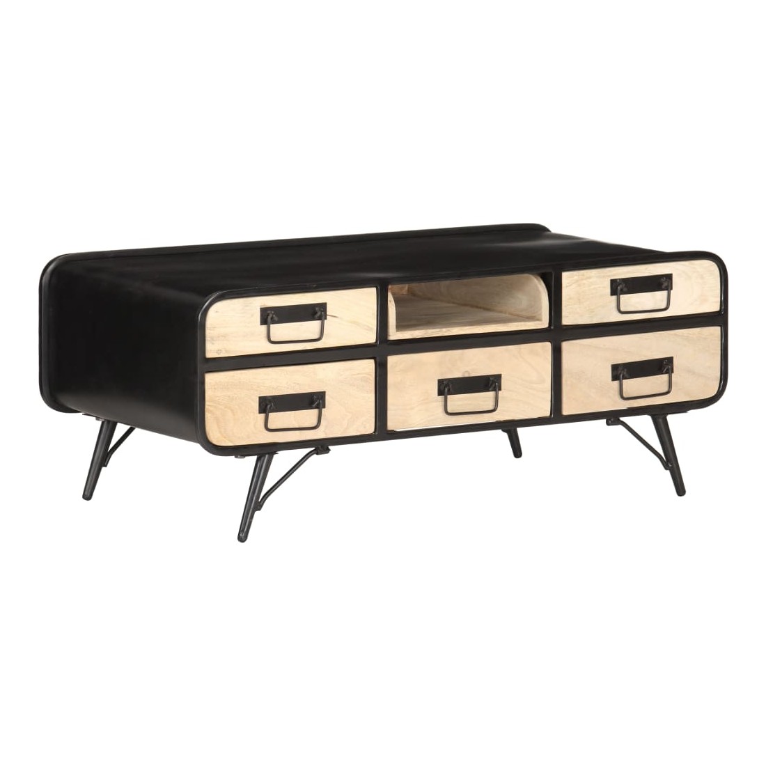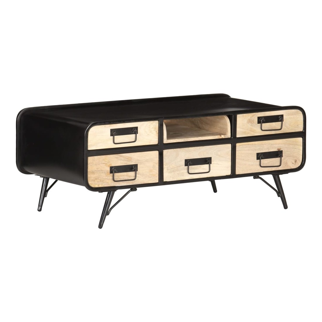 Cette table basse en bois sera un supplément décoratif ainsi que pratique à votre décoration. La table de canapé est fabriquée à la main en fer enduit de poudre et en bois massif de manguier, ce qui la rend robuste et stable. Le savoir-faire artisanal et les belles veines du bois font que chaque meuble est unique et légèrement différent l'un de l'autre. De plus, cette table de canapé dispose d'un grand espace de rangement pour garder vos objets importants organisés et à portée de main. La table de salon est également facile à assembler. Remarque importante : les couleurs et les grains peuvent varier d'une pièce à l'autre, rendant chaque pièce unique. La livraison est aléatoire, ce qui garantit l'exclusivité et l'individualité de votre produit.