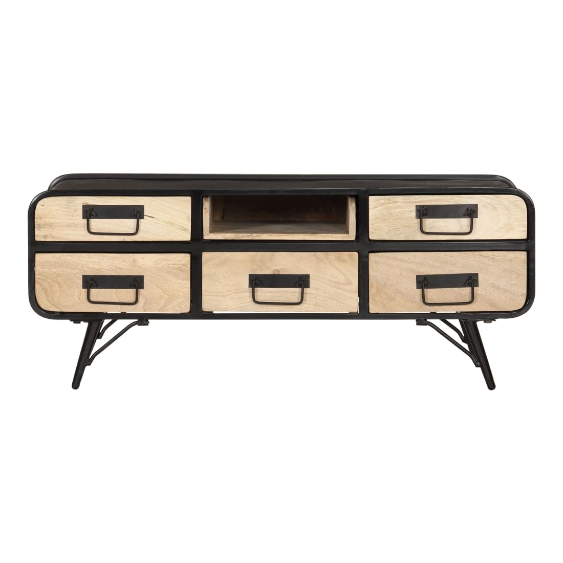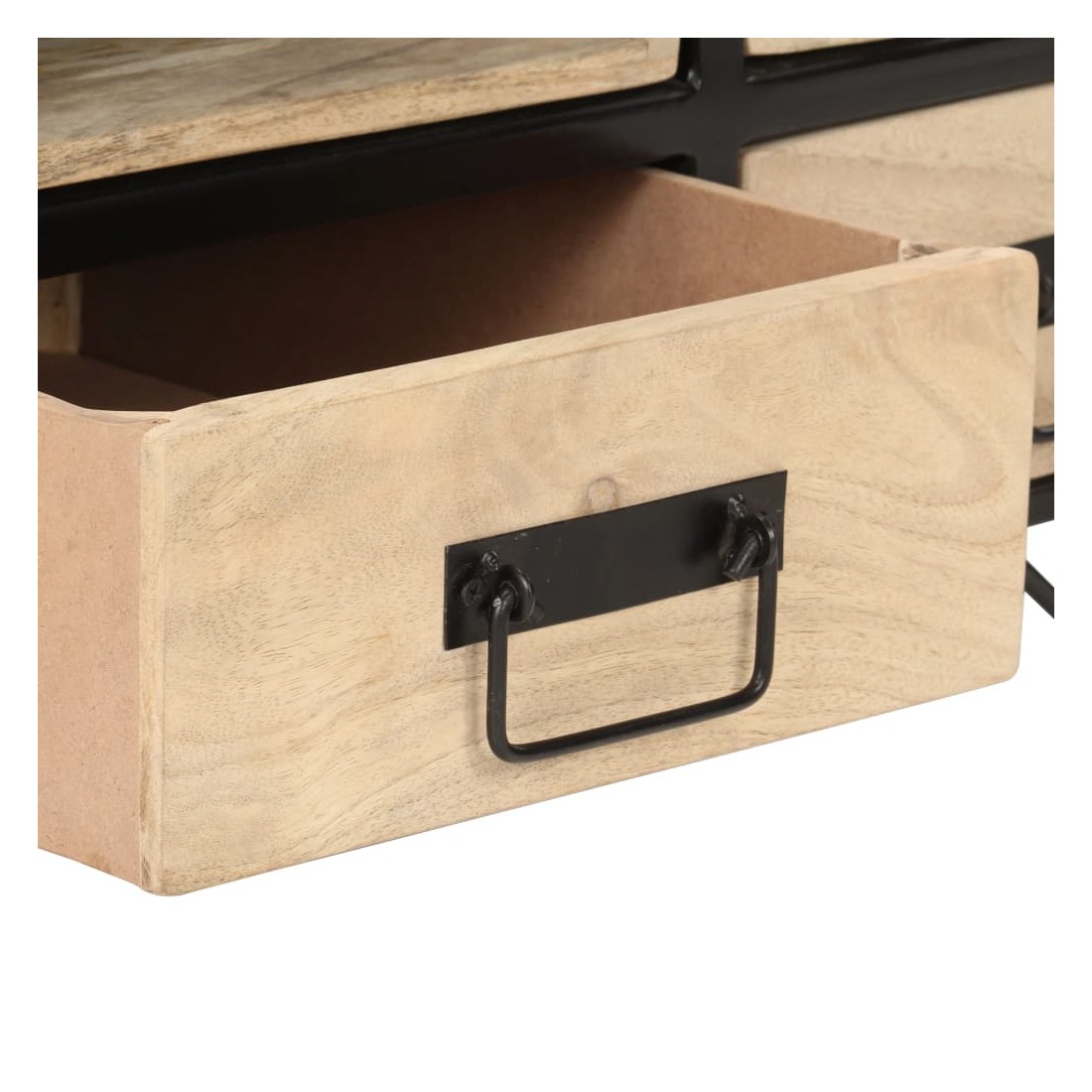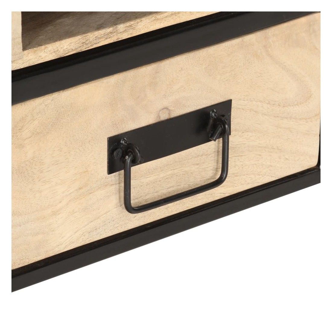 Cette table basse en bois sera un supplément décoratif ainsi que pratique à votre décoration. La table de canapé est fabriquée à la main en fer enduit de poudre et en bois massif de manguier, ce qui la rend robuste et stable. Le savoir-faire artisanal et les belles veines du bois font que chaque meuble est unique et légèrement différent l'un de l'autre. De plus, cette table de canapé dispose d'un grand espace de rangement pour garder vos objets importants organisés et à portée de main. La table de salon est également facile à assembler. Remarque importante : les couleurs et les grains peuvent varier d'une pièce à l'autre, rendant chaque pièce unique. La livraison est aléatoire, ce qui garantit l'exclusivité et l'individualité de votre produit.