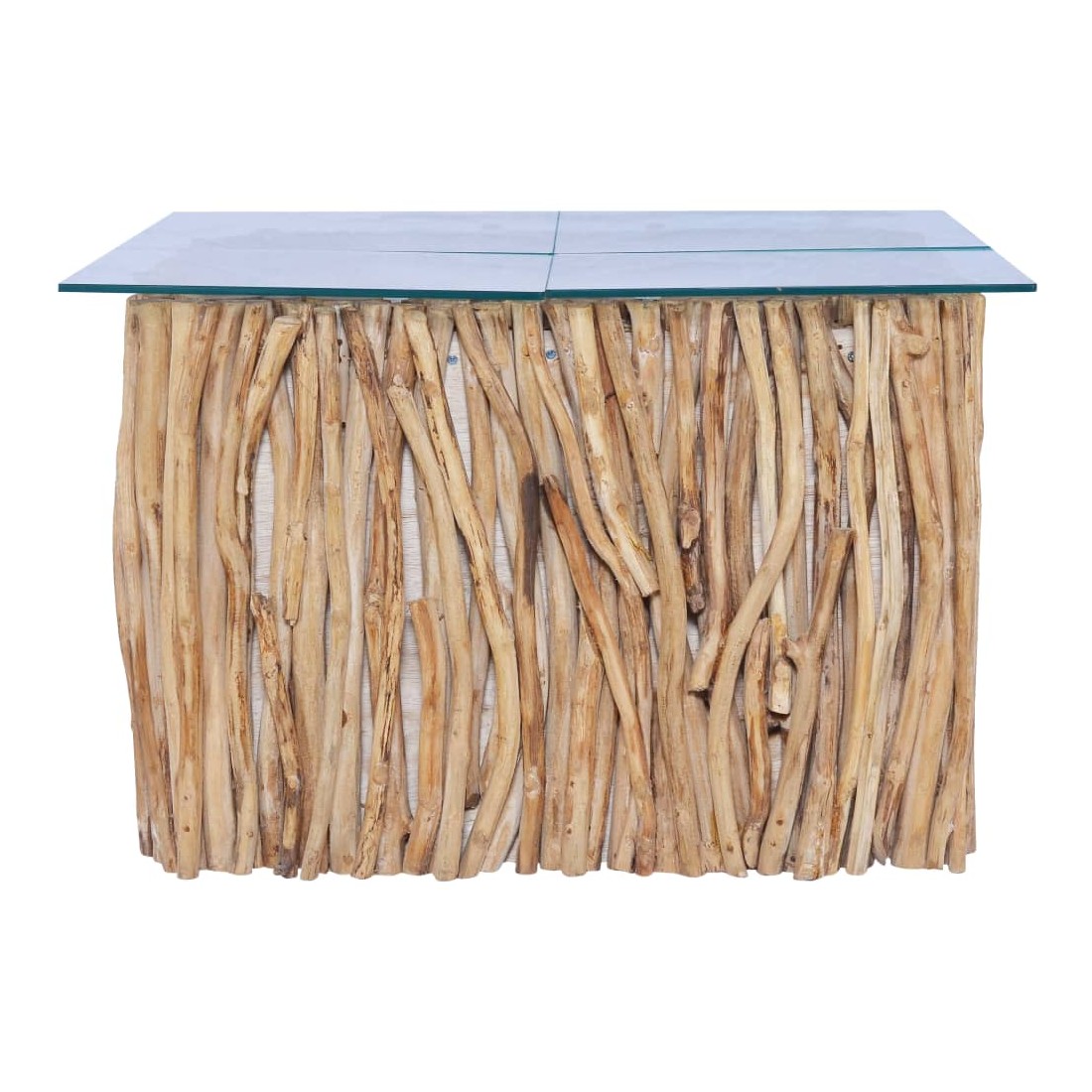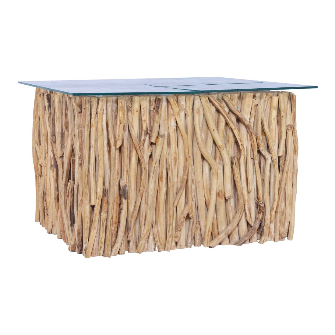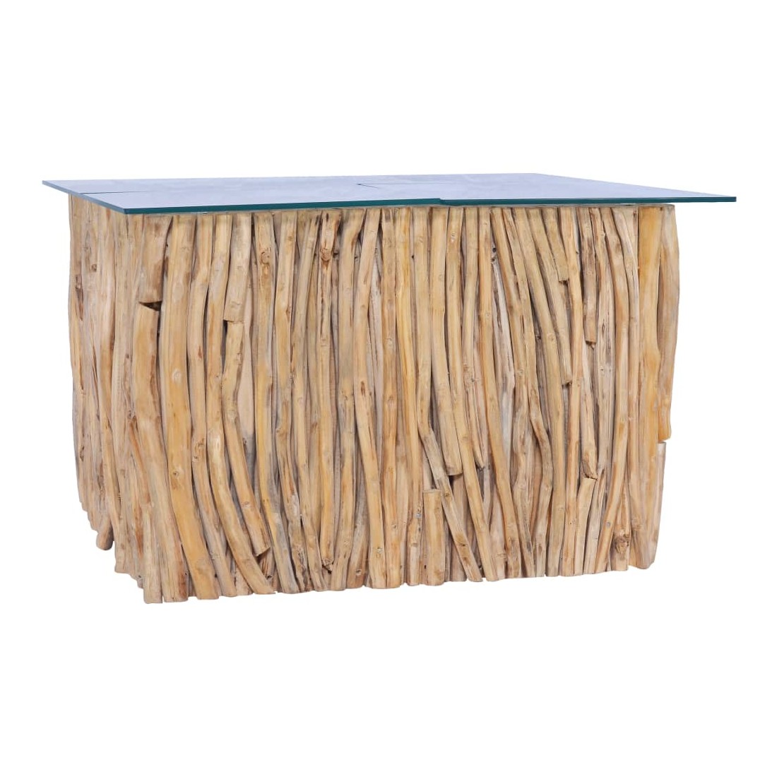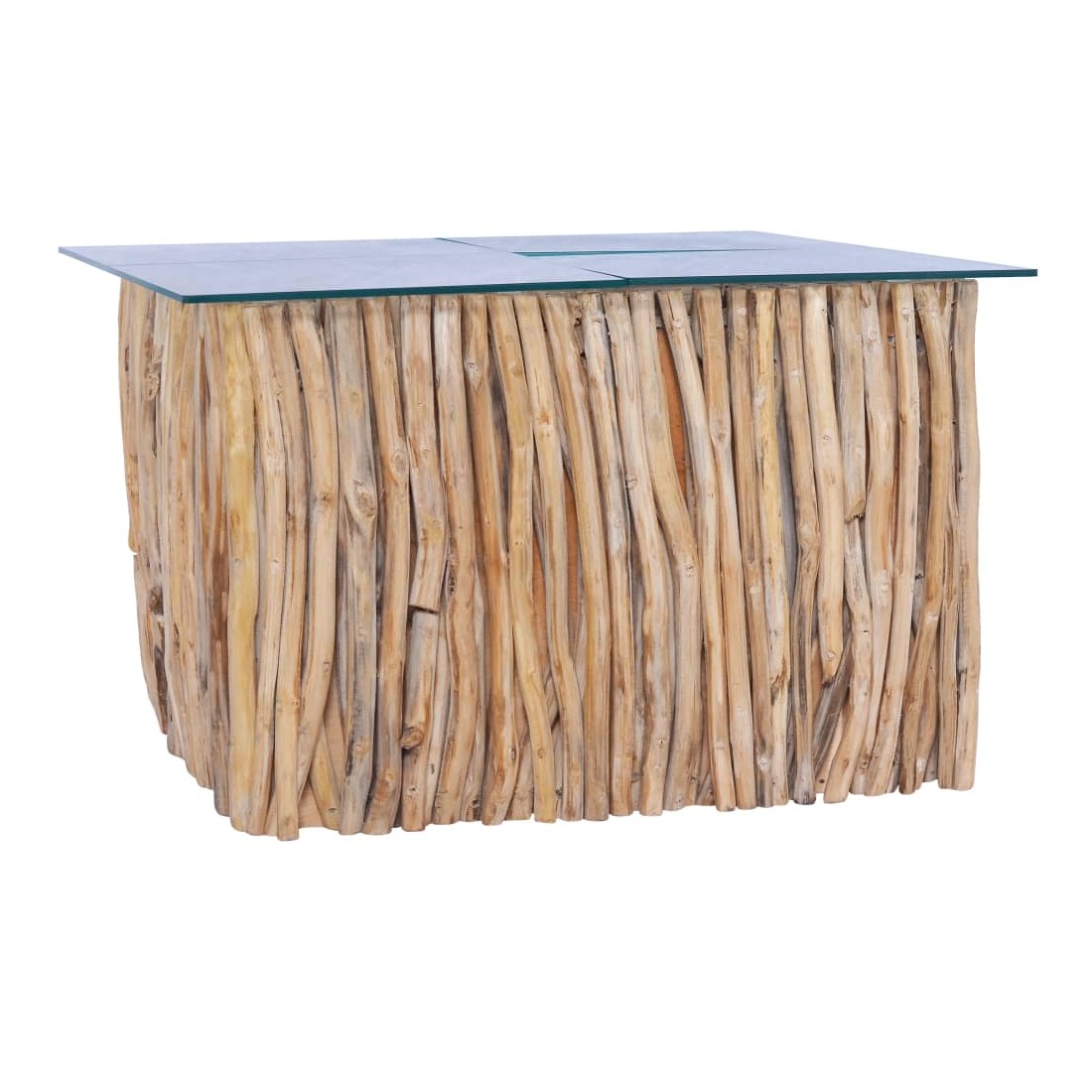 - Matériau : bois de teck massif et verre