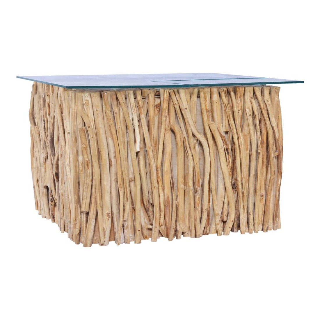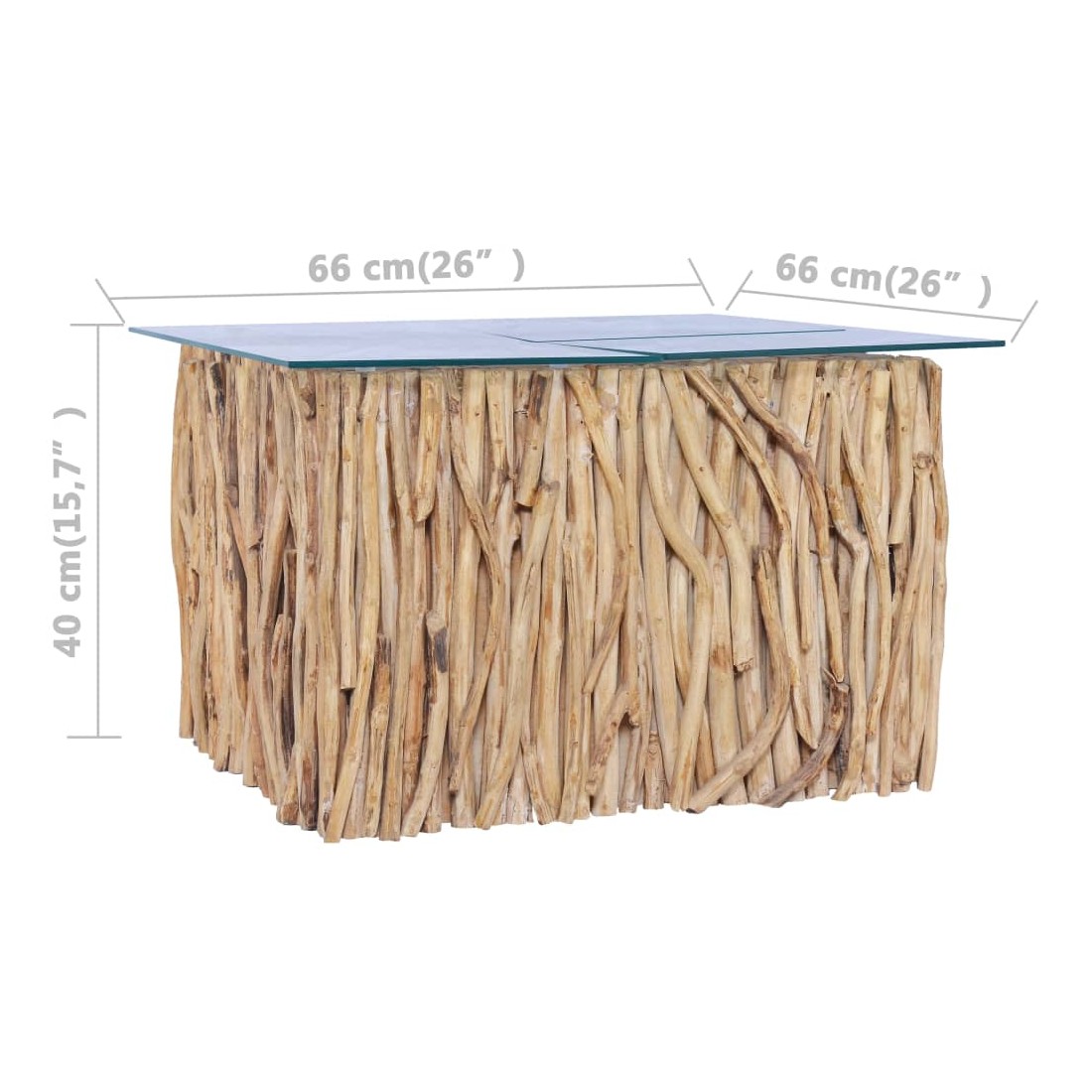 Table basse avec dessus en verre 66x66x40cm Bois de teck massif