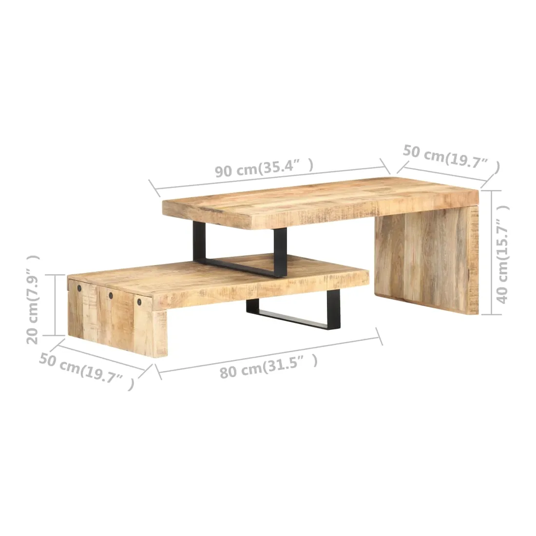 - Dimensions de la table inférieure : 80 x 50 x 20 cm (L x l x H)