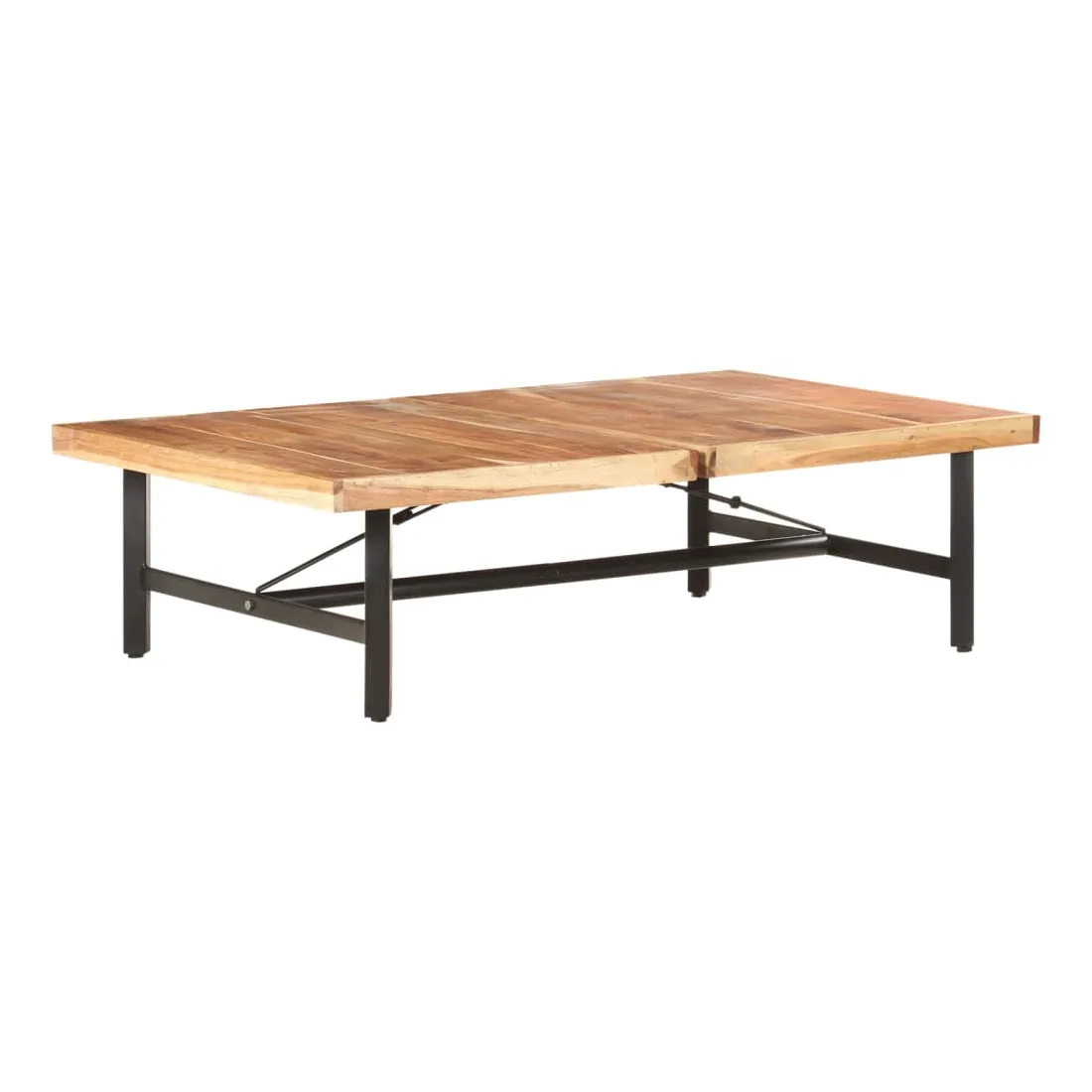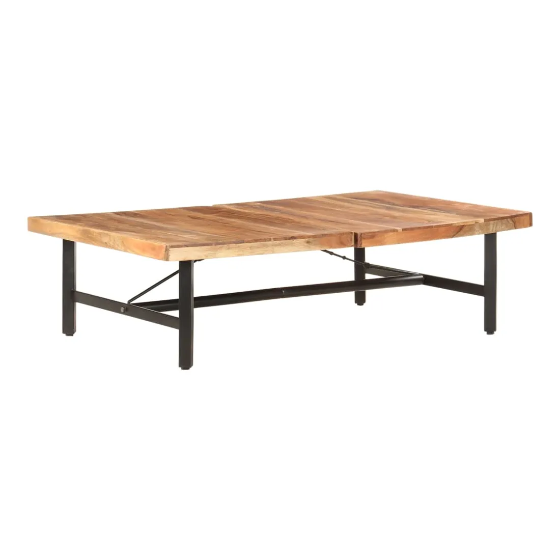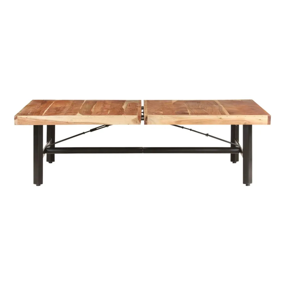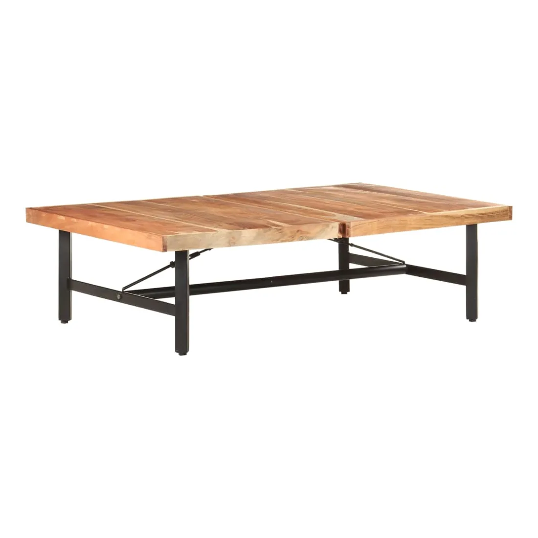 Cette table basse en bois d'acacia solide au design pratique est parfaite pour apporter une présence classique à votre salon. La table centrale est en bois d'acacia massif, un bois dur aux grains denses. Cette table magnifiquement conçue est stable, durable et accrocheuse. De plus, le savoir-faire exquis et les beaux grains de bois rendent chaque pièce légèrement différente l'une de l'autre. Le bout de canapé est doté de pieds en fer enduit de poudre, ce qui le rend stable et robuste. Le dessus de table est parfait pour placer des boissons, des bols de fruits ou des ornements. Remarque importante : les couleurs varient d'une pièce à l'autre, rendant chaque pièce unique. La livraison est aléatoire, garantissant l'exclusivité et l'individualité de votre produit.