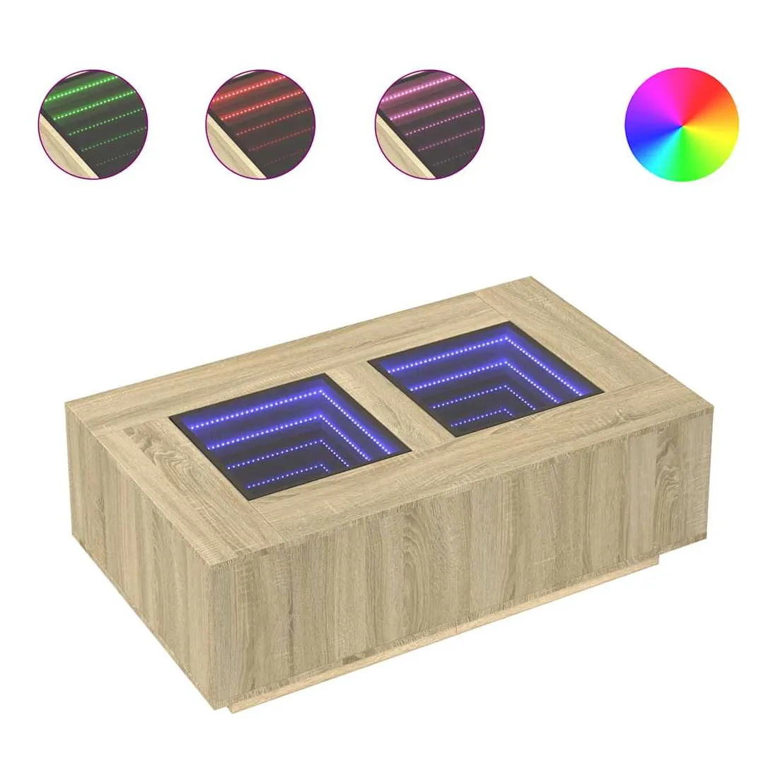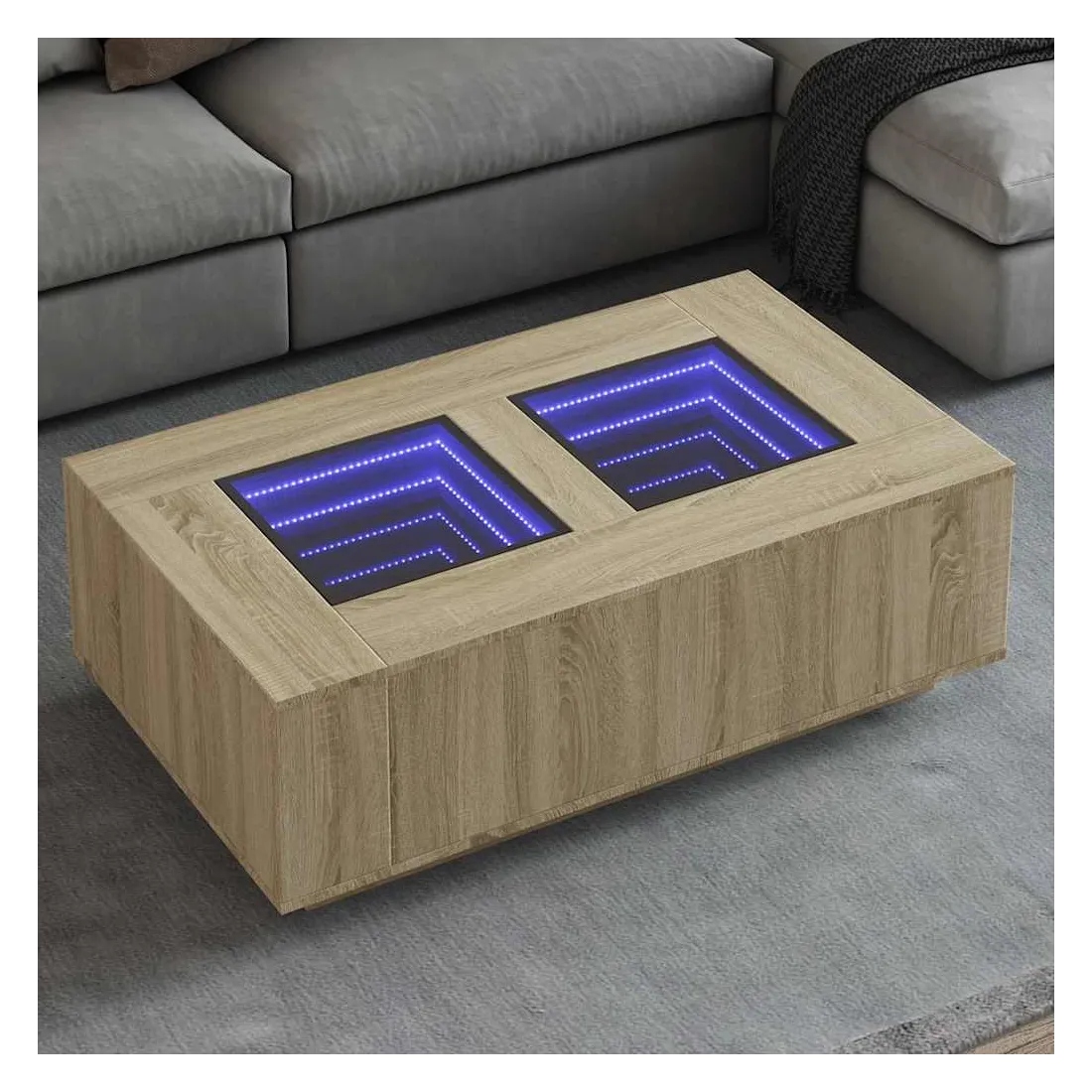 Cette table basse unique dotée d'un miroir à LED infini est adaptée à différents endroits. Matériau stable et durable : le bois d'ingénierie est un matériau durable et stable dont la surface lisse résiste à l'humidité, à la déformation et au fendillement, ce qui en fait un choix fiable pour une grande variété de projets.Lampes LED RVB pour une ambiance agréable : cette table est dotée de lampes LED qui peuvent être facilement réglées pour créer un spectacle lumineux personnalisé. Vous pouvez personnaliser les modes, les couleurs et la luminosité pour améliorer l'ambiance de votre espace intérieur.Dessus de table stable et robuste : le dessus de table robuste est idéal pour placer vos boissons ou tout autre objet nécessaire à portée de main.Multifonctionnelle : cette table basse a de multiples fonctions. Elle peut servir de table d'appoint, de table d'extrémité ou de table de chevet dans votre salon ou votre chambre à coucher, répondant ainsi à vos besoins spécifiques. Bon à savoir :Ce produit est doté d'un connecteur USB qui nécessite une source d'alimentation USB de 5V certifiée (non incluse).