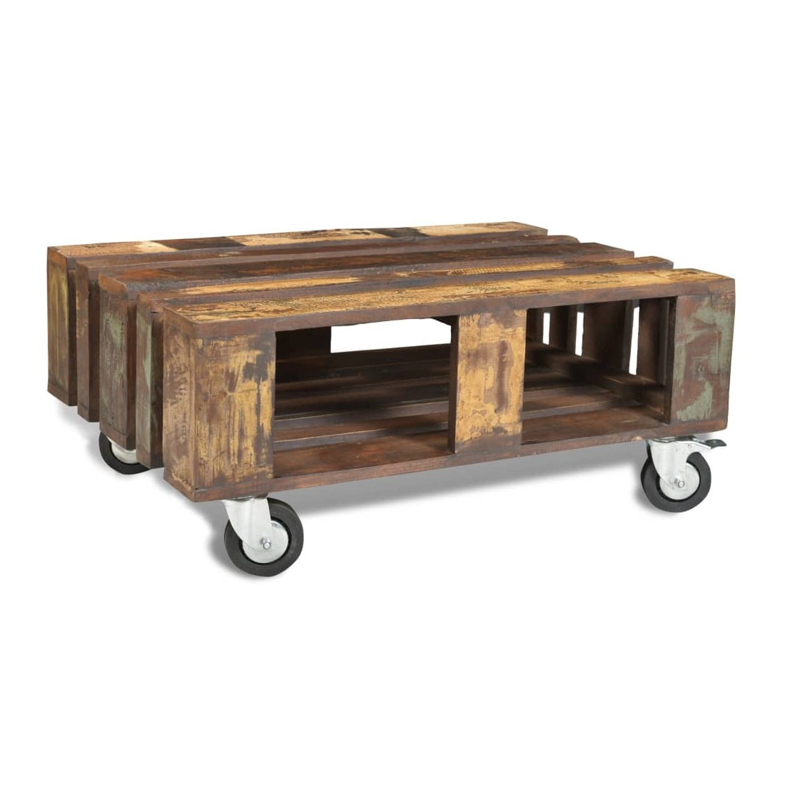 Table basse avec 4 roulettes Bois recyclé