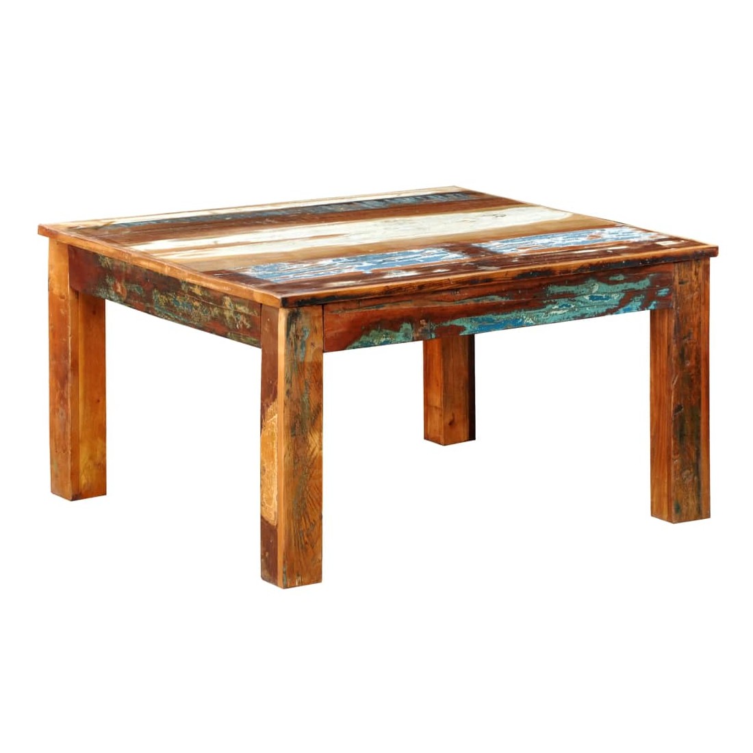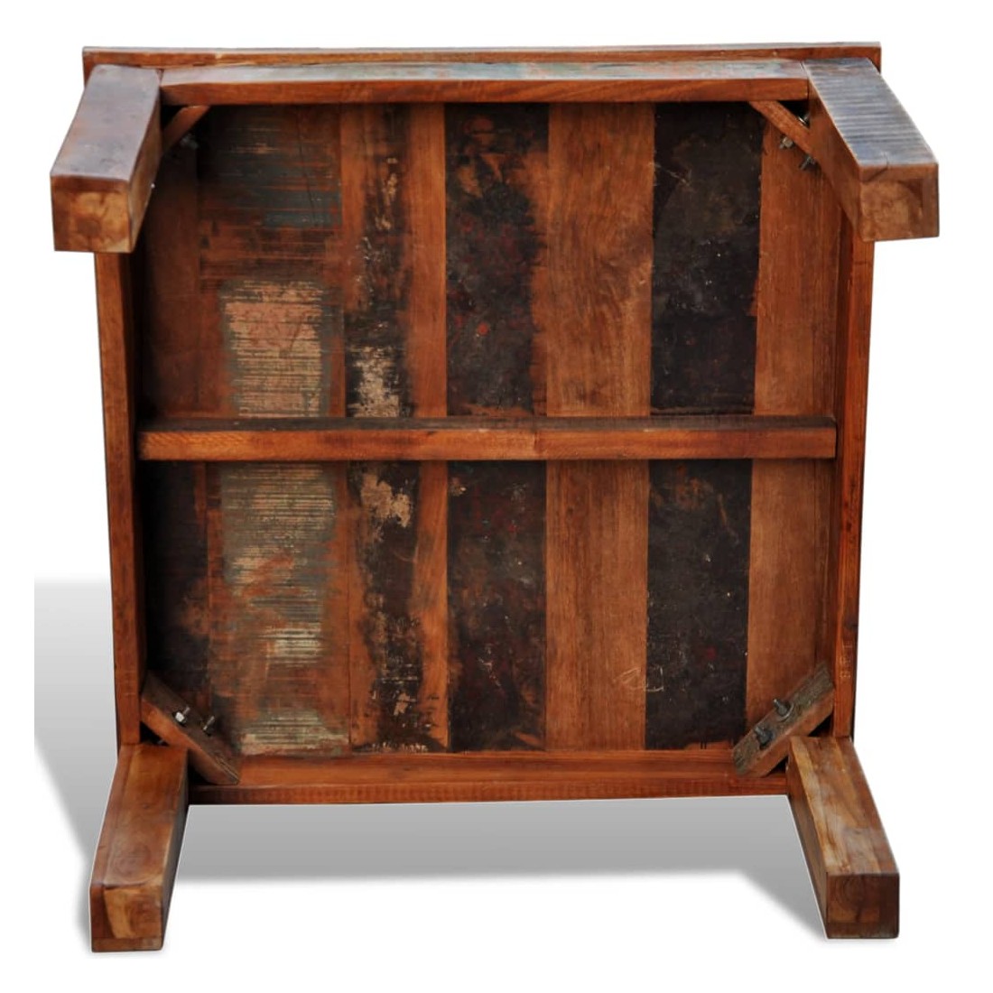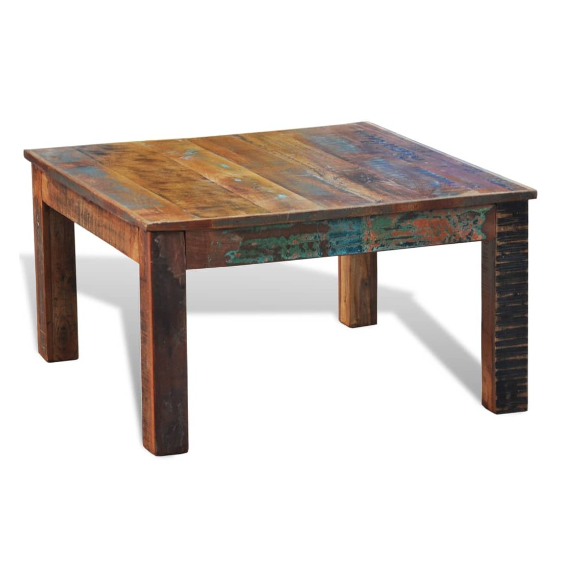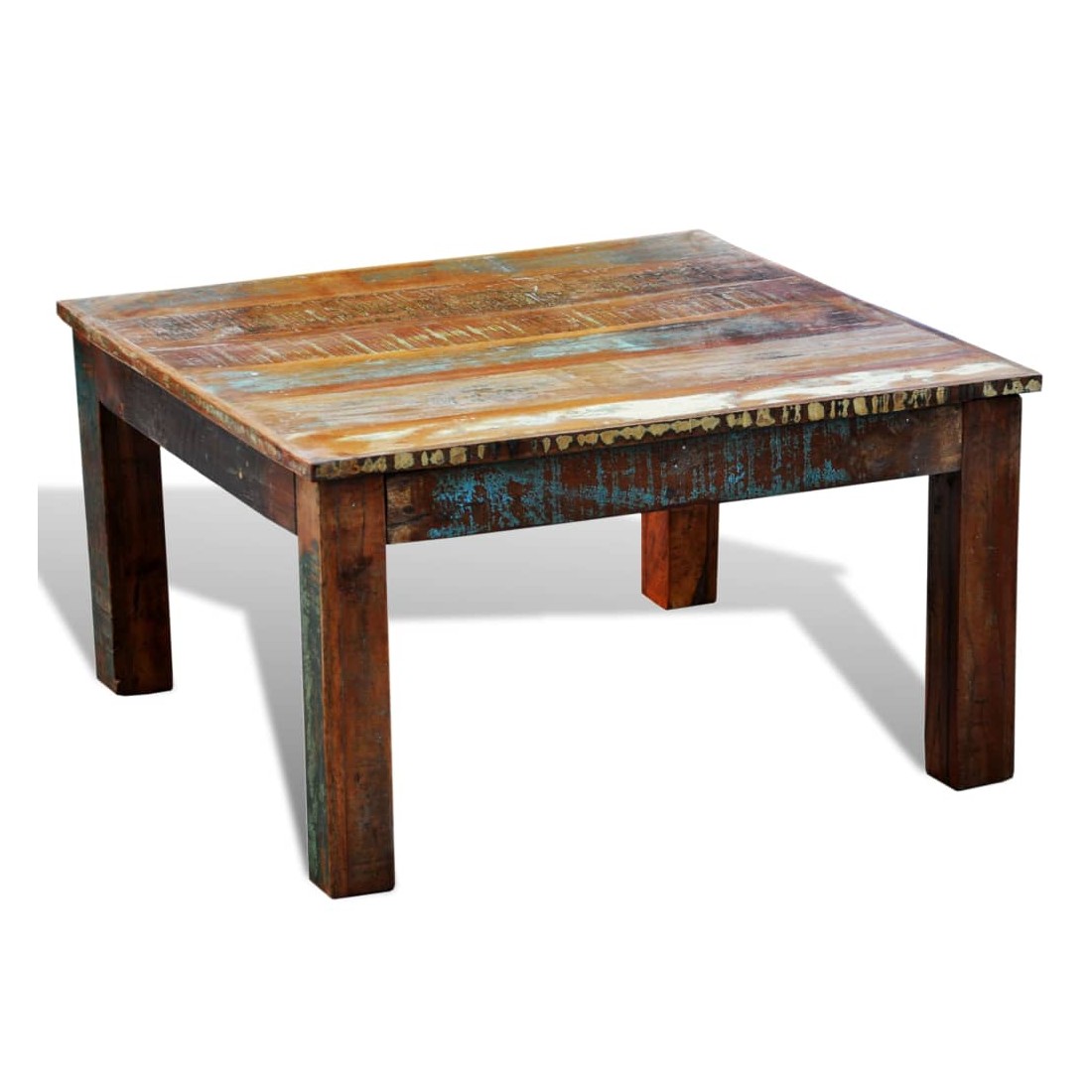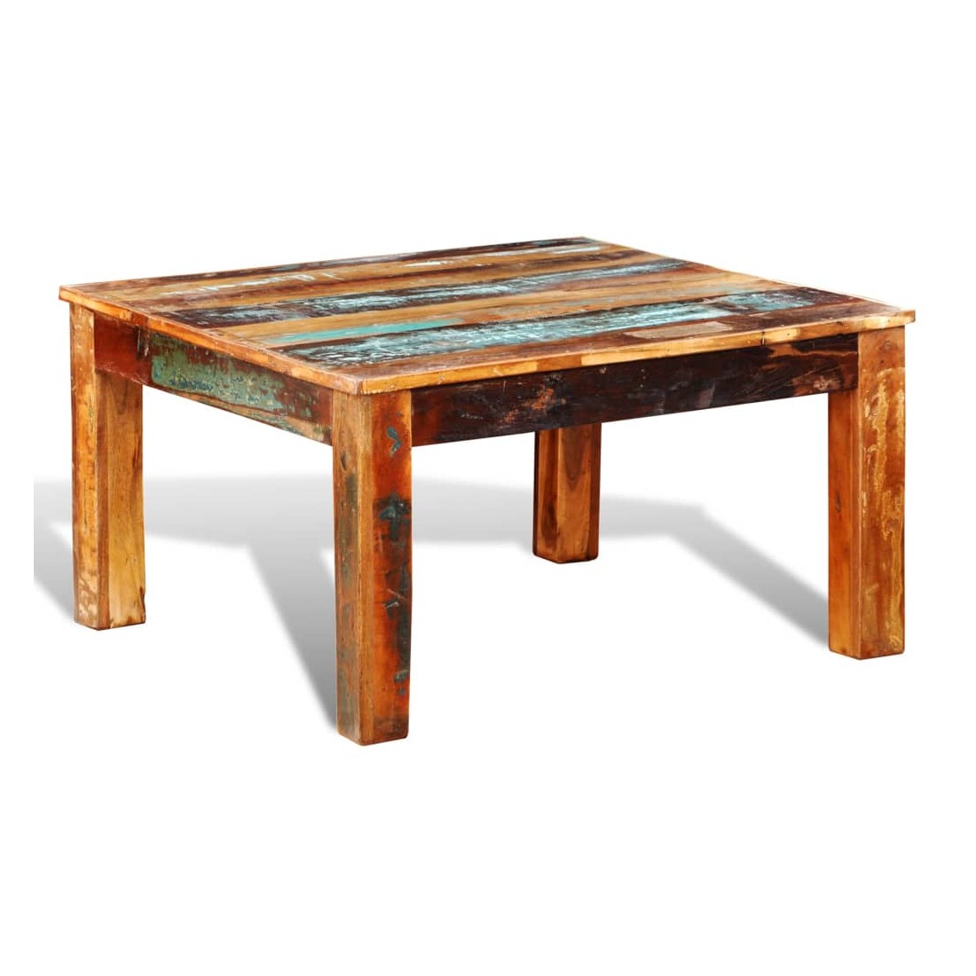 Cette table basse en bois de style antique est un accessoire attrayant et intemporel pour votre maison. Son dessus de table en bois massif offre une surface stable et sécurisée pour poser vos verres, vases, fruits ou ornements. Cette table basse exotique est faite de bois recyclé, ce qui signifie que chaque meuble est unique et légèrement différent l'un de l'autre. Le mobilier fabriqué en bois recyclé a des caractéristiques de différents bois comme le bois de teck, l'acacia, le bois de manguier, le bois de saal etc. Le bois recyclé est solide, stable, durable et beau. Les trous de clous ou les grains à face claire apportent leur histoire avec eux et invitent une autre génération à les imprégner des leurs. Garder ce meuble à la maison montrera votre concept de conservation des ressources, de protection de l'environnement et de développement durable. L'artisanat fait à la main ajoute le style spectaculaire vintage à la table basse et vous offre une touche exotique. Chaque processus de recombinaison, de polissage, de peinture et de cirage est minutieusement préparé. Détendez-vous et profitez du bon temps avec la famille et les amis autour de cette table basse unique ! Remarque importante : les couleurs varient d'un meuble à l'autre, rendant chacune de nos tables basses unique. La livraison est aléatoire, ce qui garantit l'exclusivité et l'individualité de votre produit.
