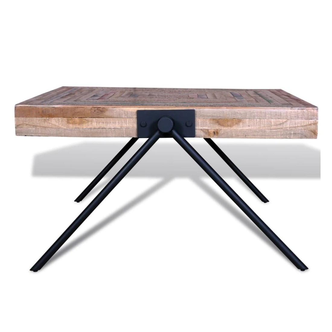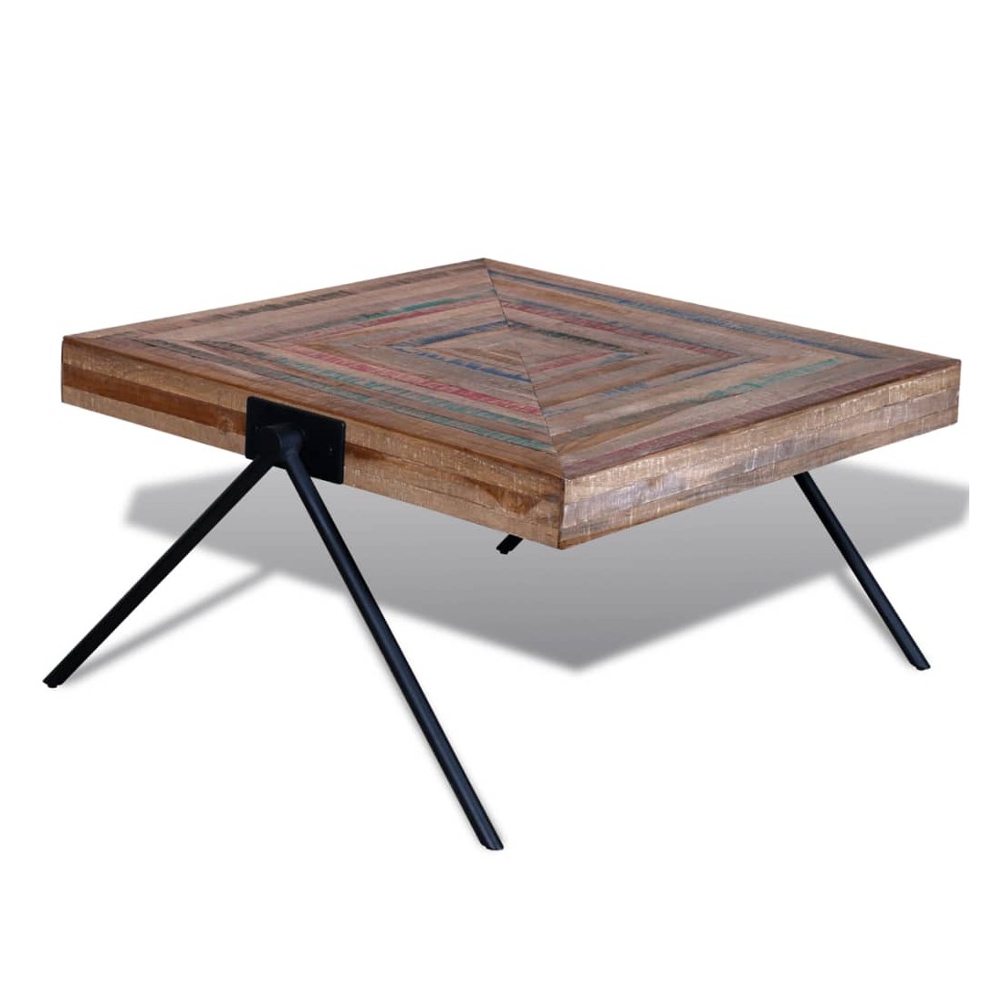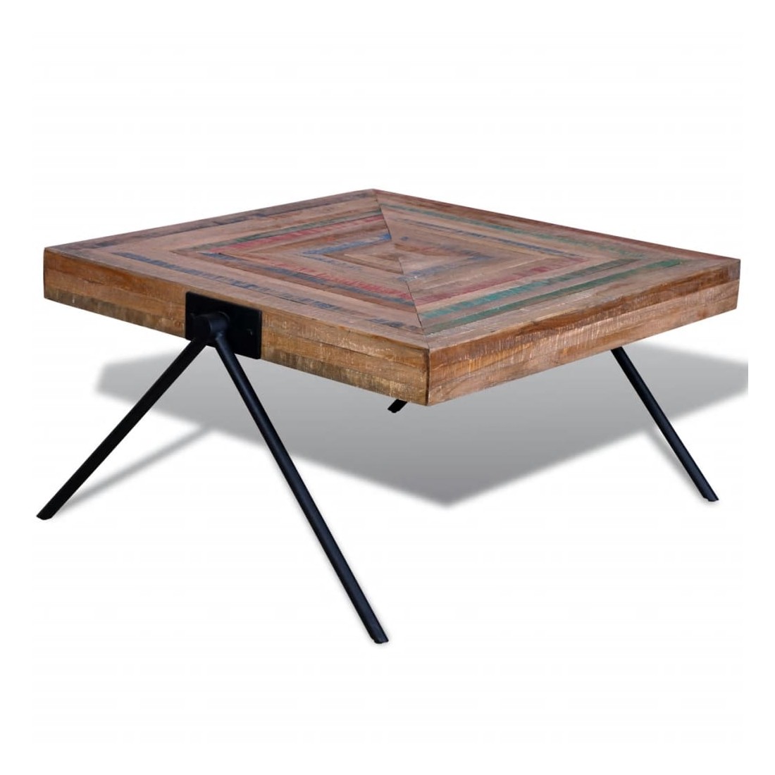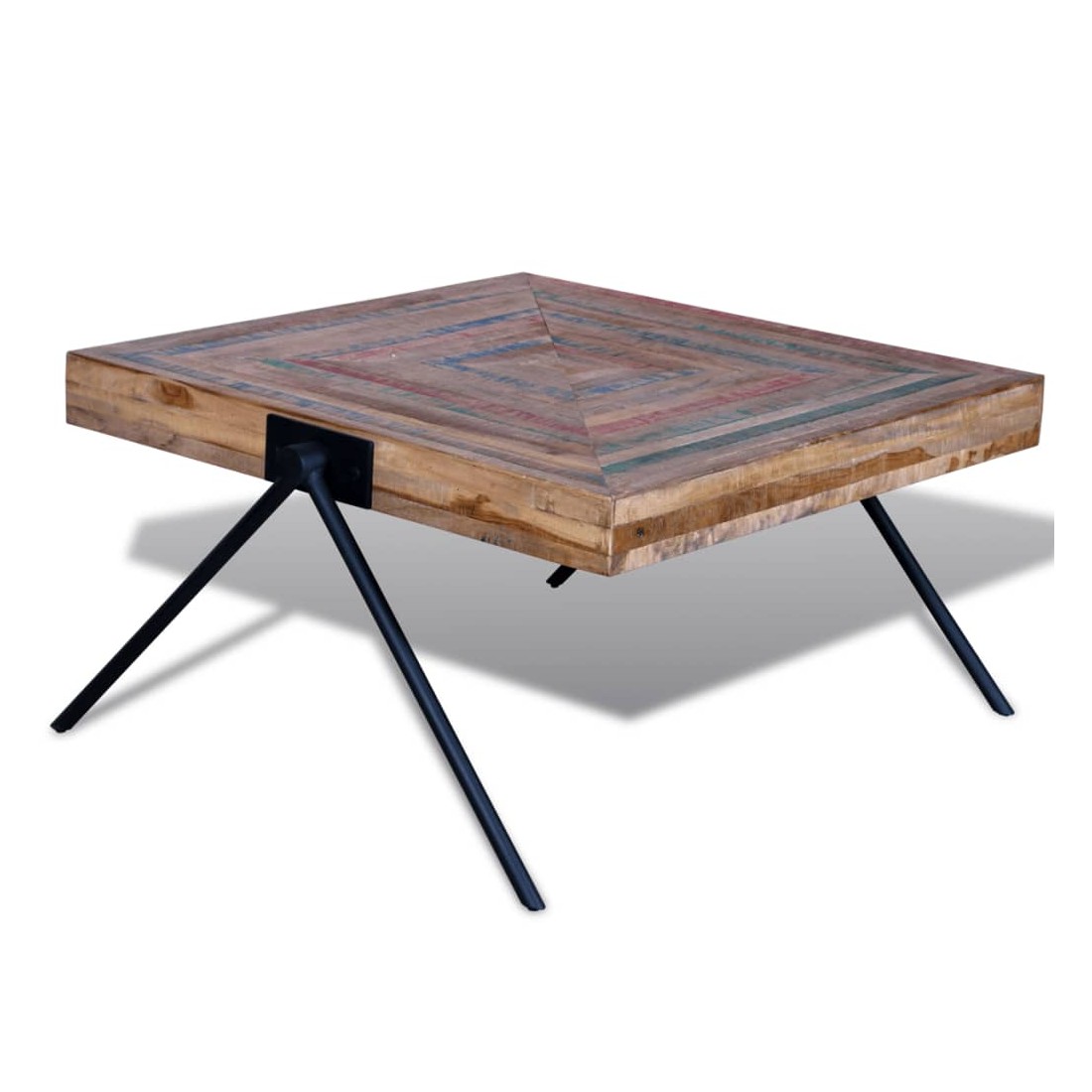 Cette table basse en bois de teck récupéré est un accessoire intemporel dans votre maison. Son dessus de table en bois solide fournit une surface stable et sécurisée sur laquelle vous pouvez placer vos boissons, vases, bols de fruits ou ornements. Les pieds métalliques en forme de V ont l'aspect unique et sont très stables et durables. La table basse peut être utilisée aussi comme une table d'appoint. Cette table basse exotique est faite de bois de récupération, ce qui signifie que chaque meuble est unique et légèrement différent l'un de l'autre. Le bois de récupération est solide, stable, durable et beau. Elle est partiellement faite à la main et l'artisanat ajoute au style vintage unique de la table basse. Un grand soin est apporté à chaque étape du processus de production, qu'il s'a