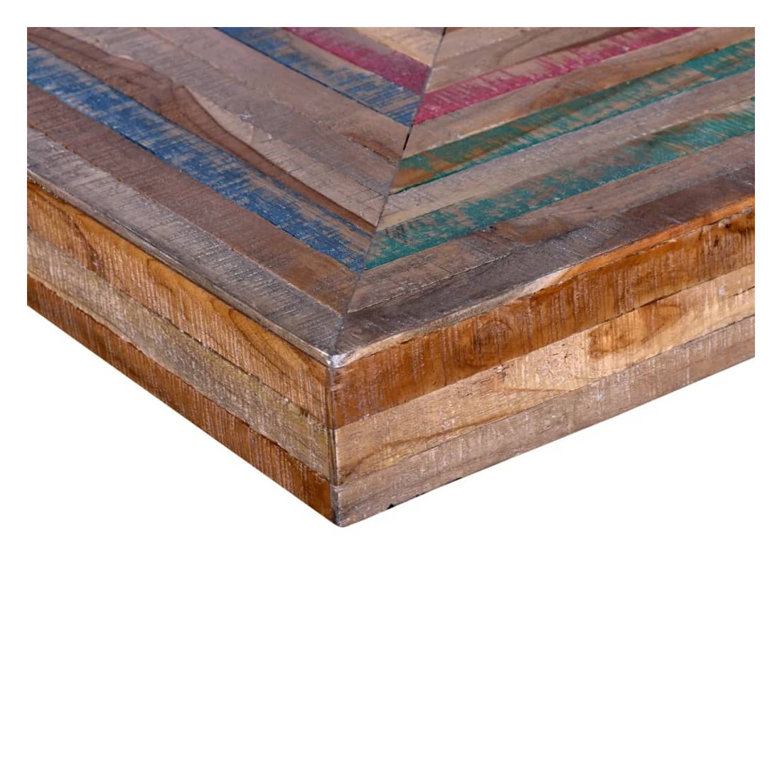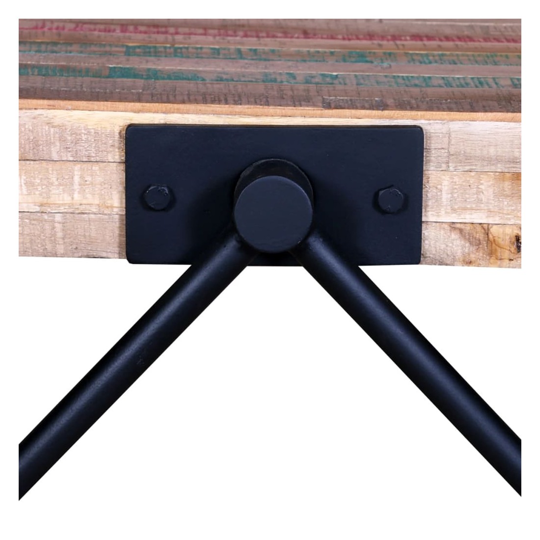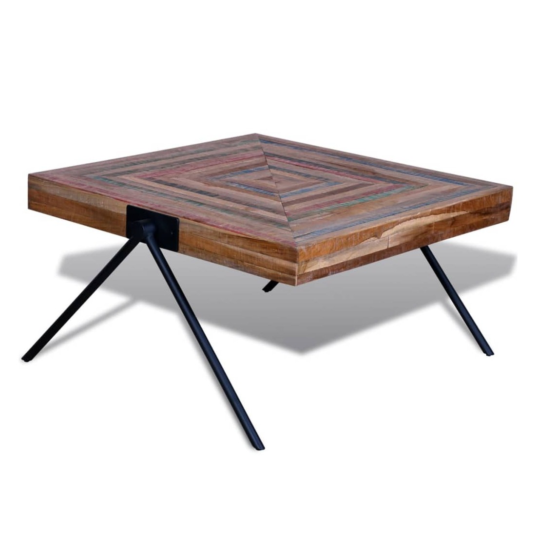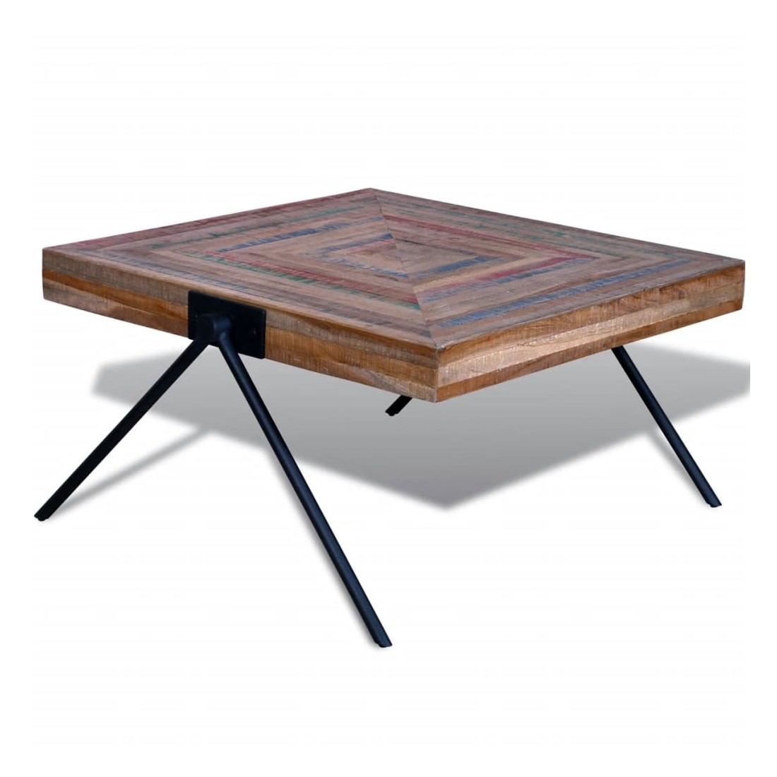 Cette table basse en bois de teck récupéré est un accessoire intemporel dans votre maison. Son dessus de table en bois solide fournit une surface stable et sécurisée sur laquelle vous pouvez placer vos boissons, vases, bols de fruits ou ornements. Les pieds métalliques en forme de V ont l'aspect unique et sont très stables et durables. La table basse peut être utilisée aussi comme une table d'appoint. Cette table basse exotique est faite de bois de récupération, ce qui signifie que chaque meuble est unique et légèrement différent l'un de l'autre. Le bois de récupération est solide, stable, durable et beau. Elle est partiellement faite à la main et l'artisanat ajoute au style vintage unique de la table basse. Un grand soin est apporté à chaque étape du processus de production, qu'il s'a