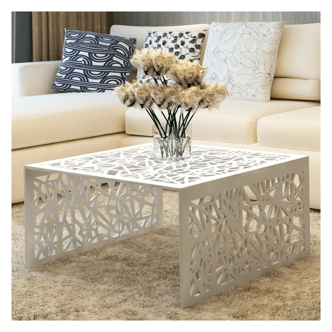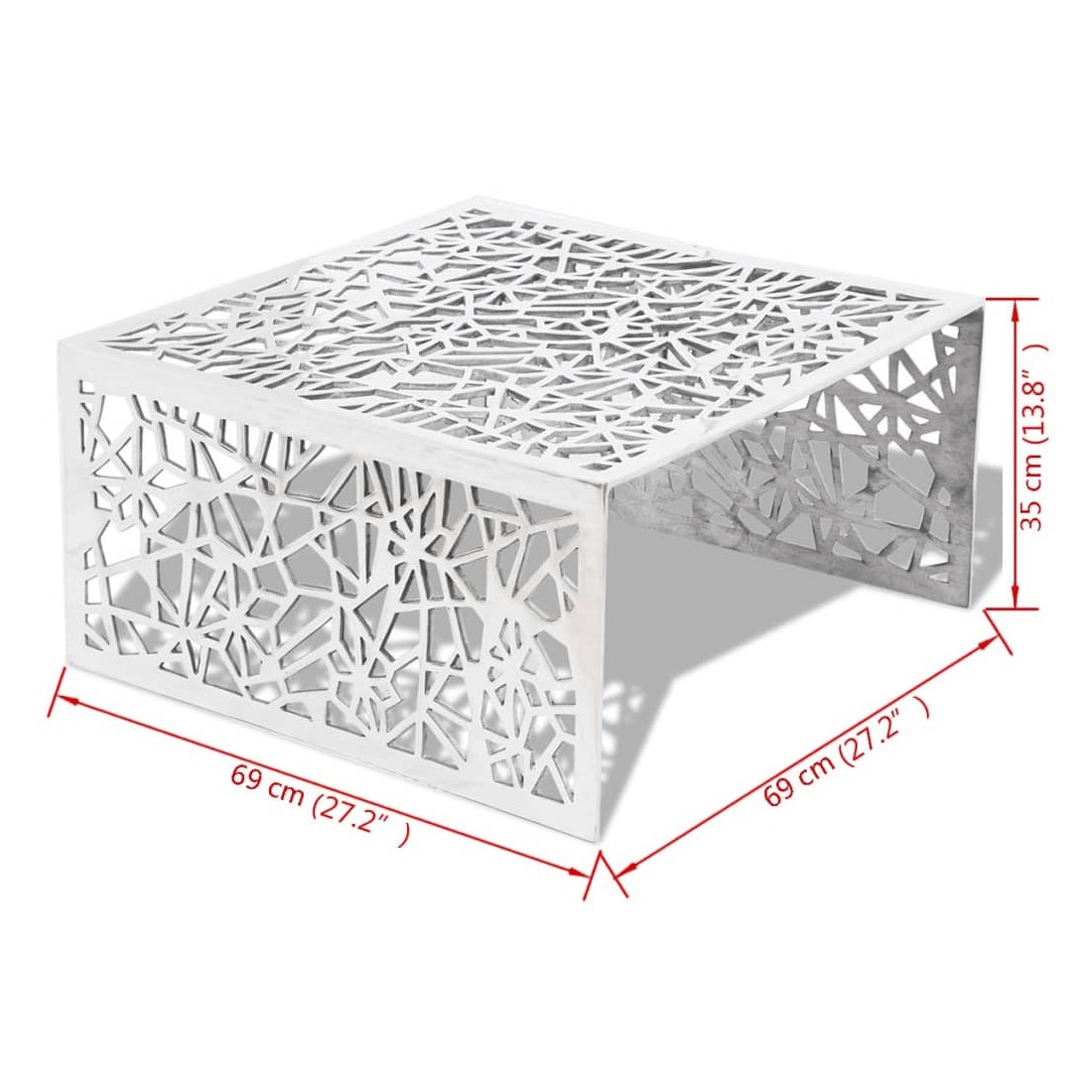 Étonnamment légère, cette table basse en aluminium peut également être utilisée comme table d'appoint, table de chevet, table d'extrémité, etc. Elle deviendra le point central de n'importe quelle pièce et complétera une variété de styles de meubles. Cette table basse a un dessus de table solide, sur lequel vous pouvez déposer des aliments ou des boissons ou étaler des objets décoratifs comme des cadres photo ou même des plantes en pot. La table basse est en aluminium de haute qualité avec une finition polie, ce qui la rend extrêmement durable.