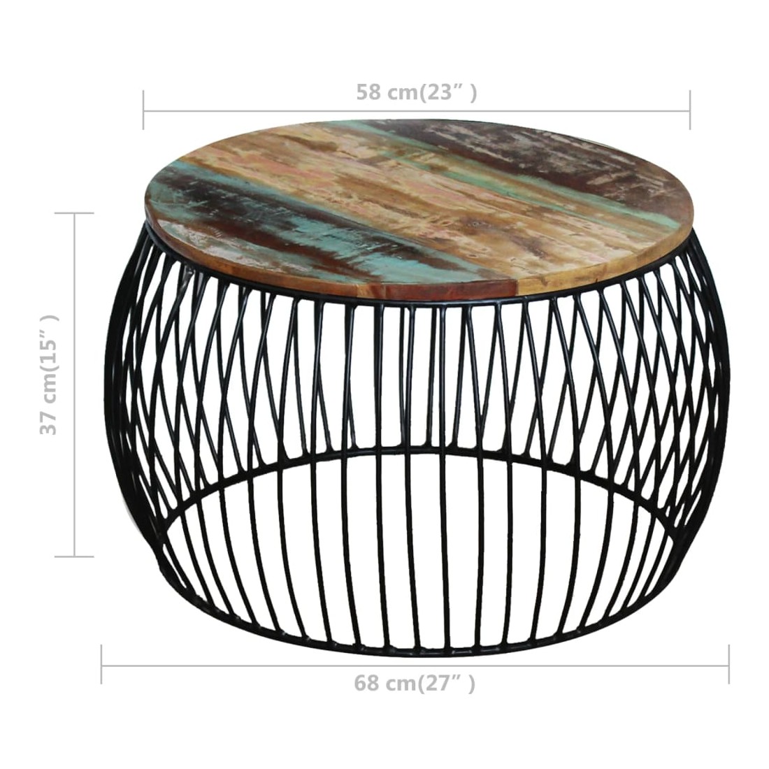Cette table basse en bois de style vintage sera un accessoire unique à votre maison. Cette table d'appoint est fabriquée en bois de récupération massif, ce qui signifie que chaque meuble est unique et légèrement différent l'un de l'autre. Les meubles en bois de récupération ont les caractéristiques de différents bois comme le teck, le bois de manguier et l'acacia. Le bois de récupération est solide, stable, durable et beau. Des signes d'usure et une structure de grains visible donnent à chaque pièce sa propre histoire et un look unique. La table basse est entièrement faite à la main et la qualité de l'artisanat s'ajoute à son style rétro spectaculaire. Chaque étape du processus est effectuée avec le plus grand soin, qu'il s'agisse de la recombinaison, le polissage, la peinture ou le cirage. Remarque importante : les couleurs varient d'un meuble à l'autre, rendant chacune de nos tables basses unique. La livraison est aléatoire, ce qui garantit l'exclusivité et l'individualité de votre produit.