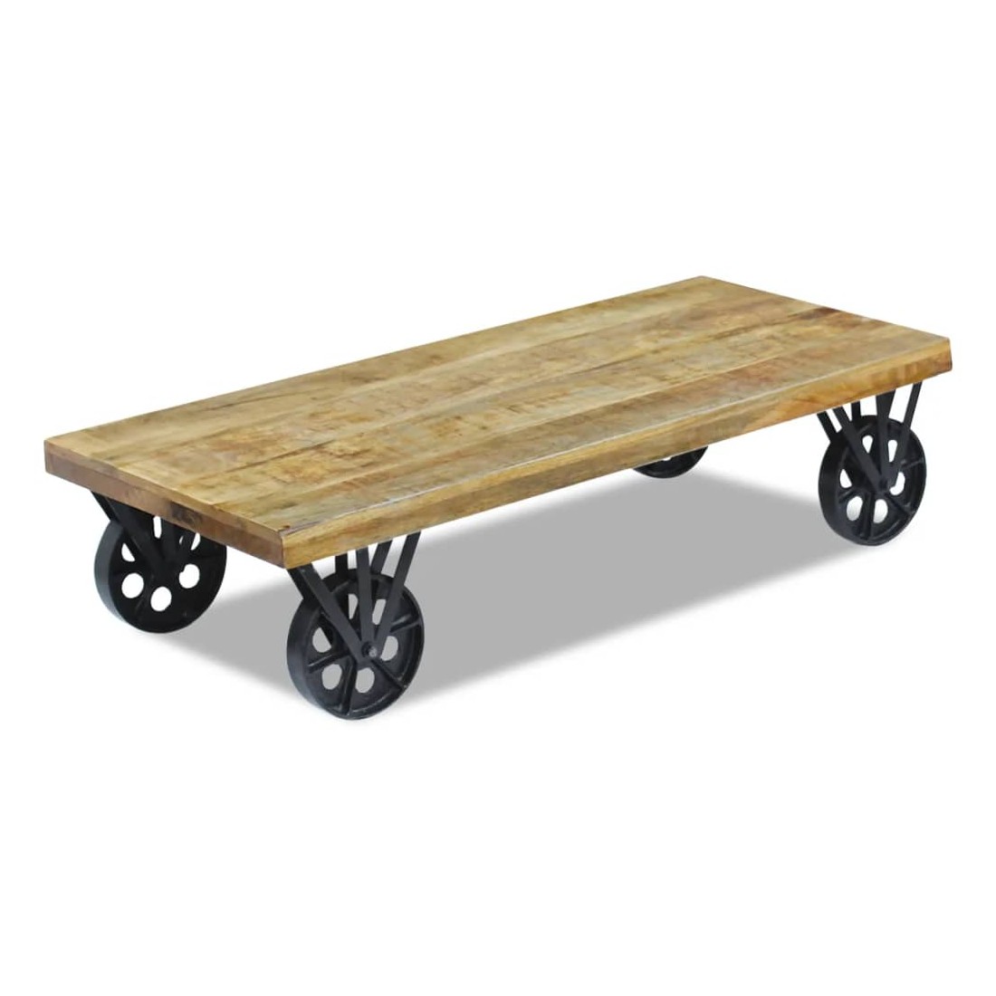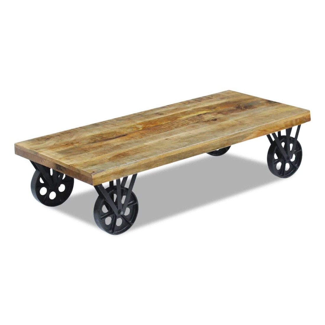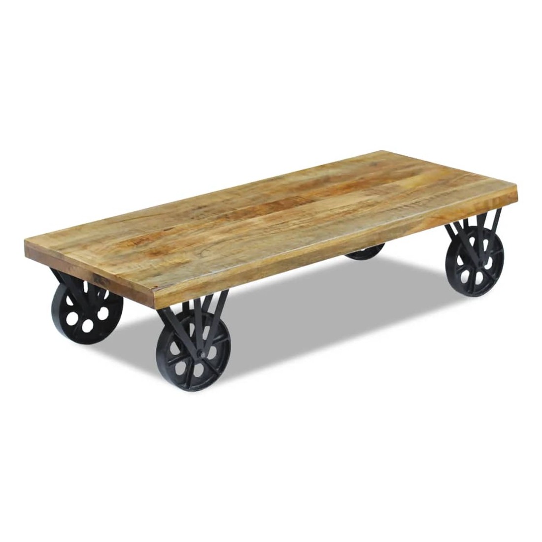 Cette table passe sur quatre roues sera un ajout unique à votre pièce. Sa construction en bois massif la rend stable et fiable adaptée pour y poser des verres, des paniers de fruits ou des objets décoratifs. La table basse peut également être facilement déplacée dans toute la maison grâce à ses quatre roues en acier flexibles. Cette table basse rétro peut également être utilisée comme table d'appoint, table de salon ou table auxiliaire, etc. Entièrement faite à la main, chaque étape du processus de fabrication de la table est effectuée avec le plus grand soin, qu'il s'agisse du polissage, de la peinture ou du cirage. La table basse peut facilement être assemblée.