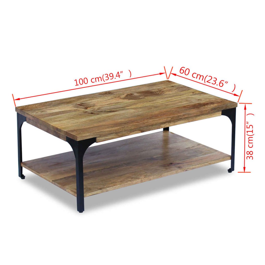 - Matériau : bois de manguier et structure en acier robuste