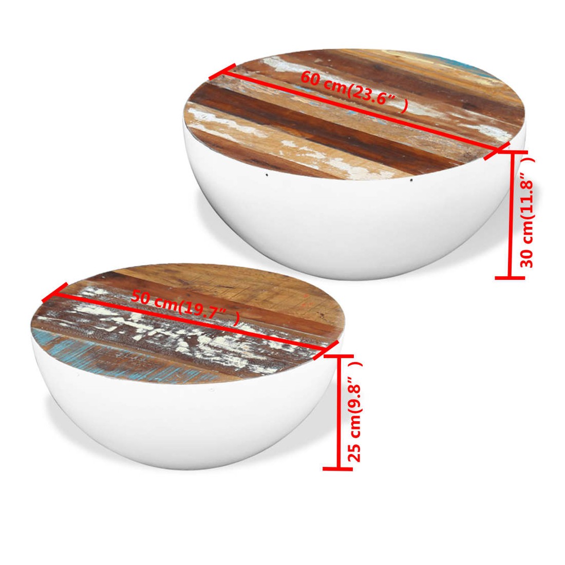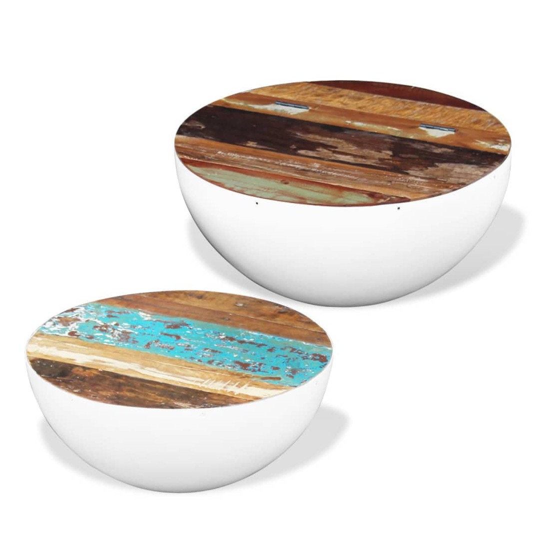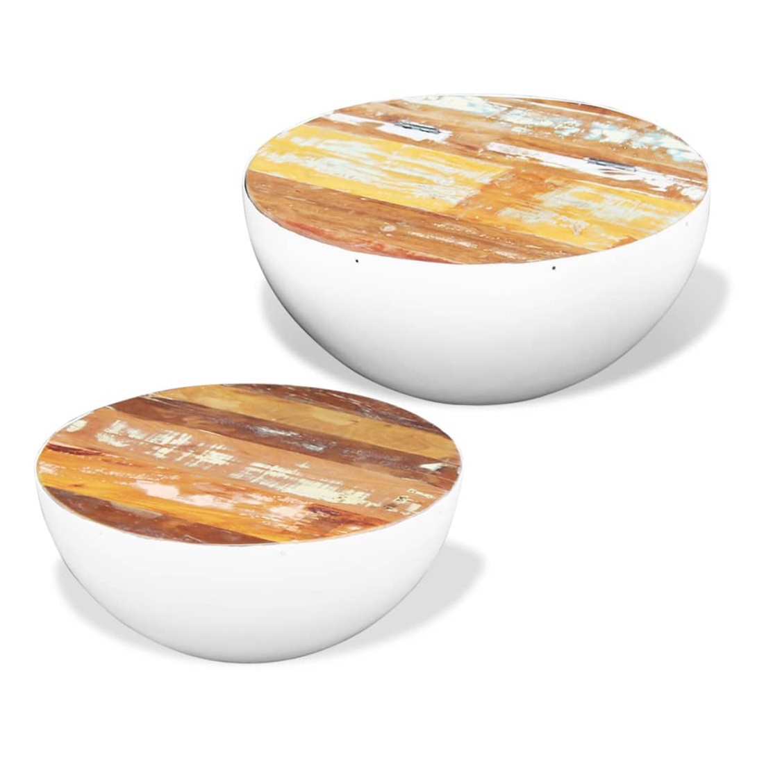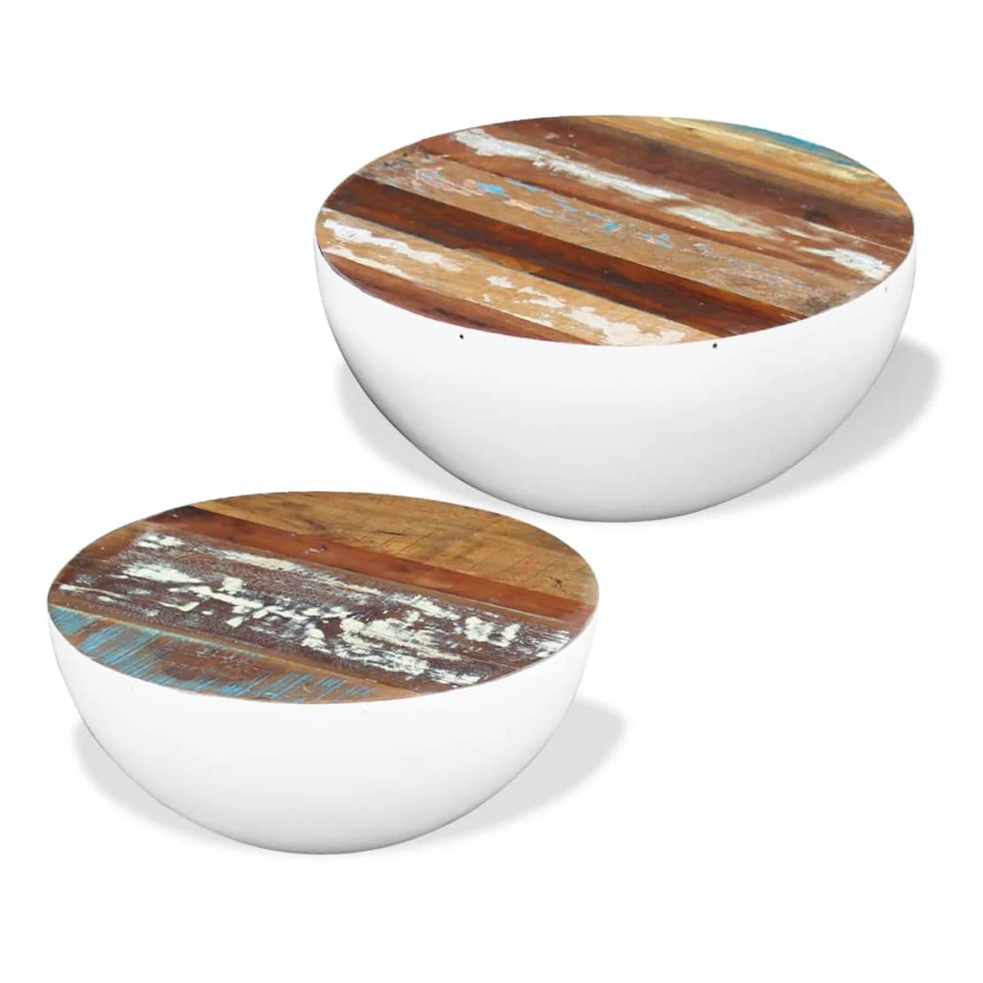 Ensemble de 2 tables basses Forme de bol Bois de récupération