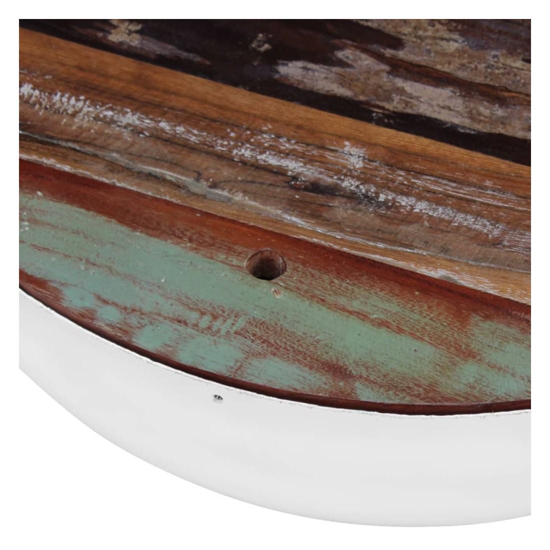 Cette table basse en bois sera un supplément unique à votre maison. Vous pouvez l'utiliser pour poser des boissons, des décorations, des livres, etc. La construction en acier robuste en forme de bol la rend stable et résistante à l'usure. Elle peut également être utilisée comme table auxiliaire, coffre, table à tiroirs, table de salon, etc. Chaque dessus de table basse en bois de récupération est solide, durable et magnifique et possède les caractéristiques de plusieurs bois tel que le teck, le manguier, l'acacia, le bois recyclé, le bois dur, etc. Chaque meuble est vraiment unique et légèrement différent du suivant. Les traces d'usure et la structure du grain visible donnent à chaque meuble sa propre histoire et un aspect unique. Remarque importante : les couleurs du dessus peuvent va