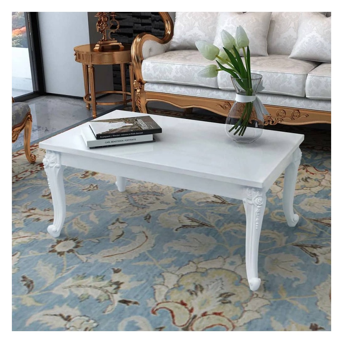 Cette table basse laquée sera un excellent ajout décoratif à l'intérieur de votre salon avec son design classique. Elle peut également être utilisée comme table d'extrémité ou table d'appoint. La table a été fabriquée en MDF (Medium Density Fibreboard). Elle présente quatre pieds en plastique, stables et durables, embellis avec un motif ornementé classique ressemblant à de la sculpture sur bois. La table basse laquée est également facile à nettoyer et à entretenir - un chiffon doux et humide suffit ! L'assemblage est facile.