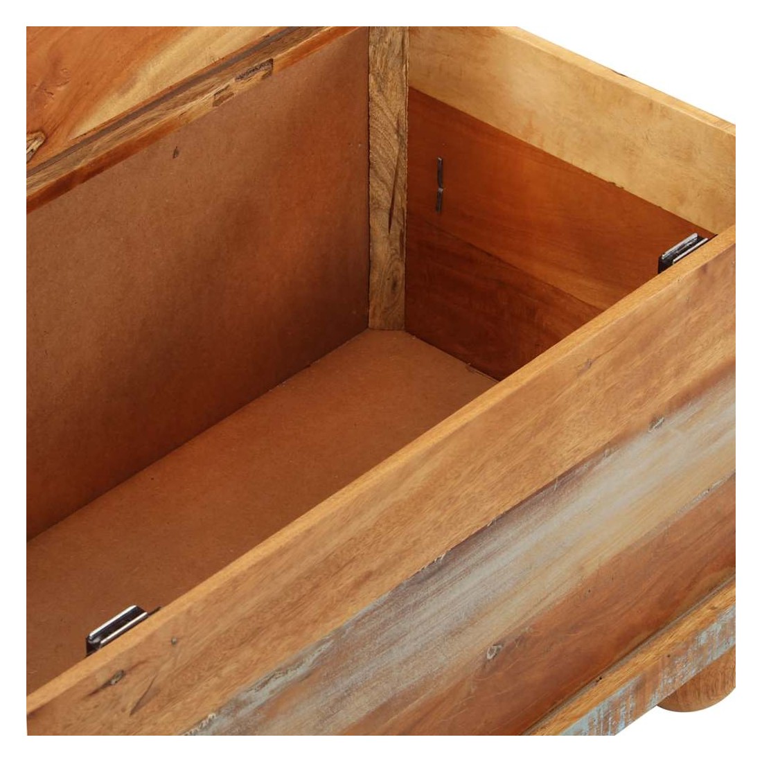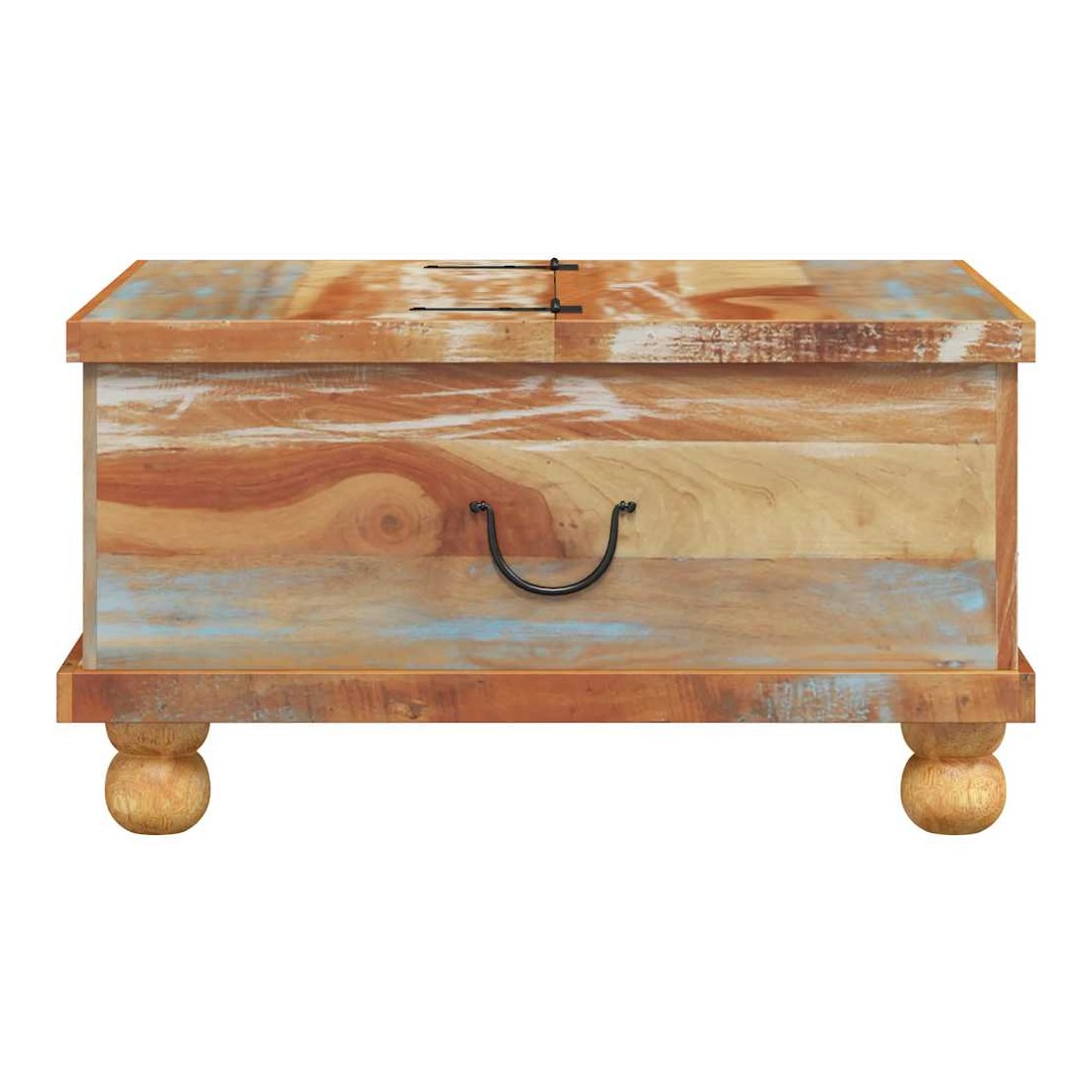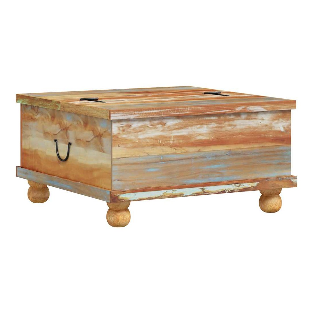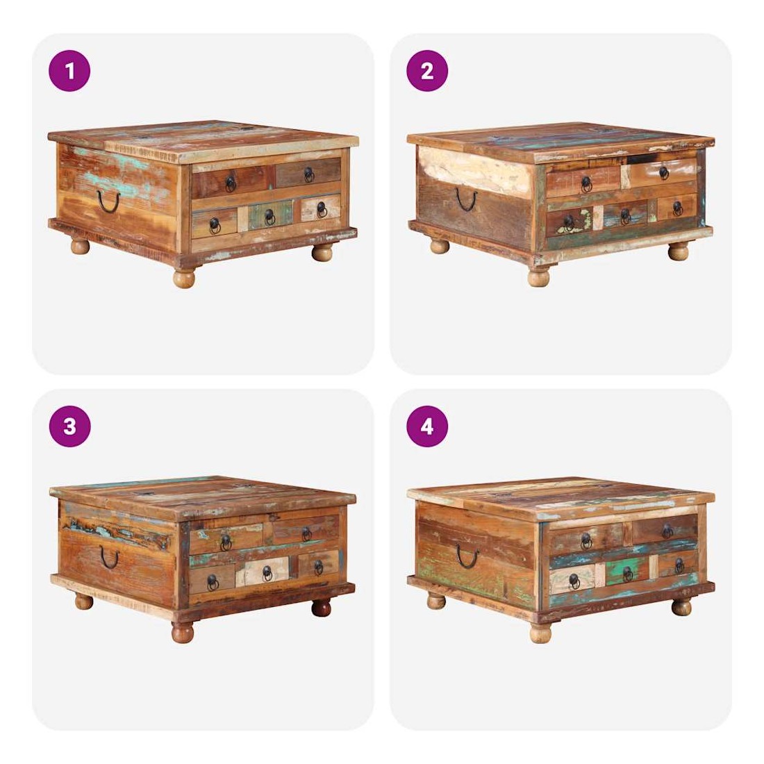 Cette table basse en bois de style industriel dégage un charme vintage et sera une addition intemporelle à votre maison. La table basse peut également être utilisée comme table d'appoint ou table de chevet. La table basse rétro est faite à la main en bois de récupération qui est stable, durable et beau, et a les caractéristiques de différents bois comme teck, manguier, acacia, bois recyclé, bois dur, etc. Chaque étape du processus est réalisé avec le plus grand soin, qu'il s'agisse du polissage, de la peinture ou du laquage. L'artisanat et les beaux grains de bois rendent chaque meuble unique et légèrement différent l'un de l'autre. De plus, les 5 tiroirs et le grand compartiment intérieur offrent amplement d'espace pour tous les articles que vous souhaitez garder à portée de main. Remarque importante : les couleurs varient d'une pièce à l'autre, rendant chacune de nos tables unique. La livraison est aléatoire, ce qui garantit l'exclusivité et l'individualité de votre produit.