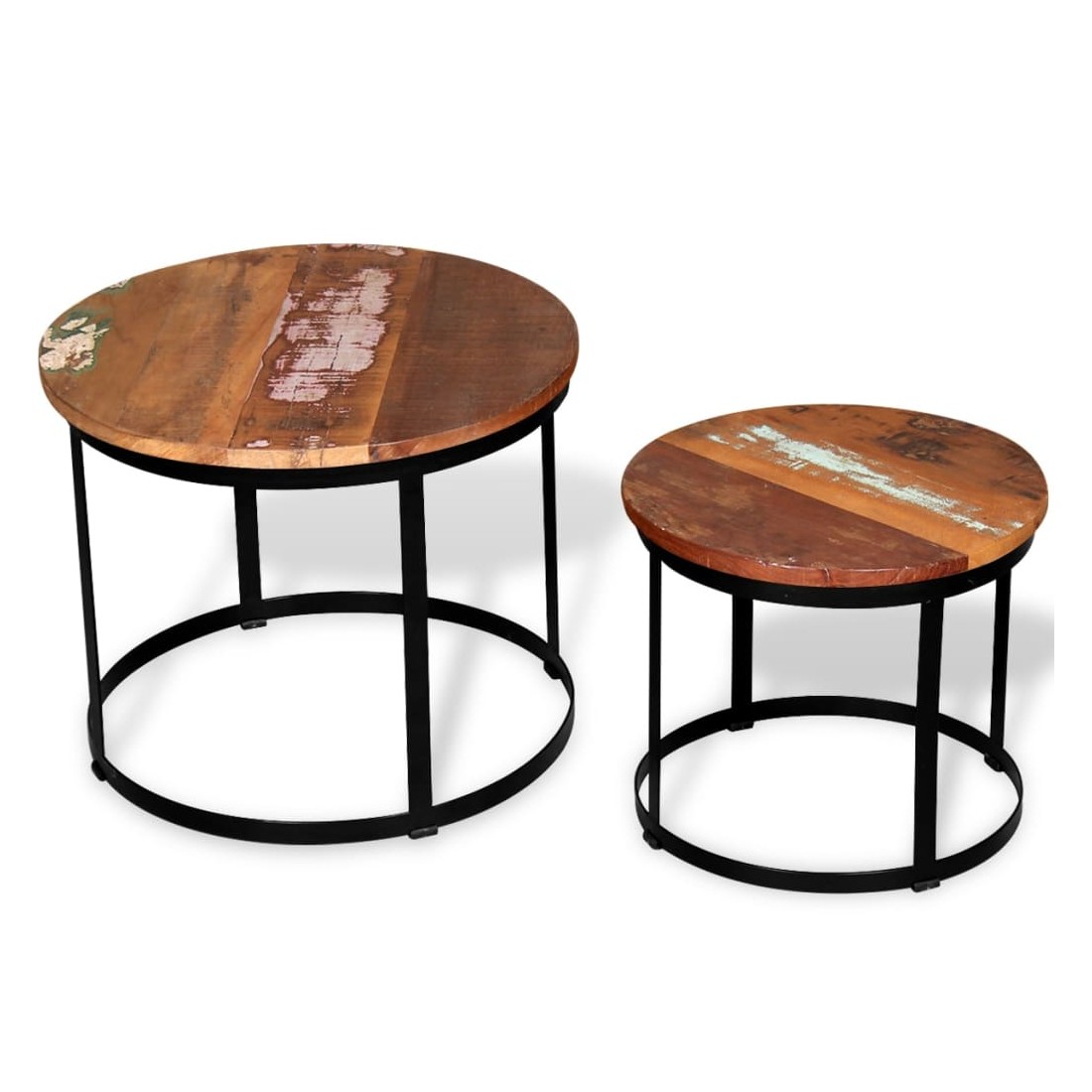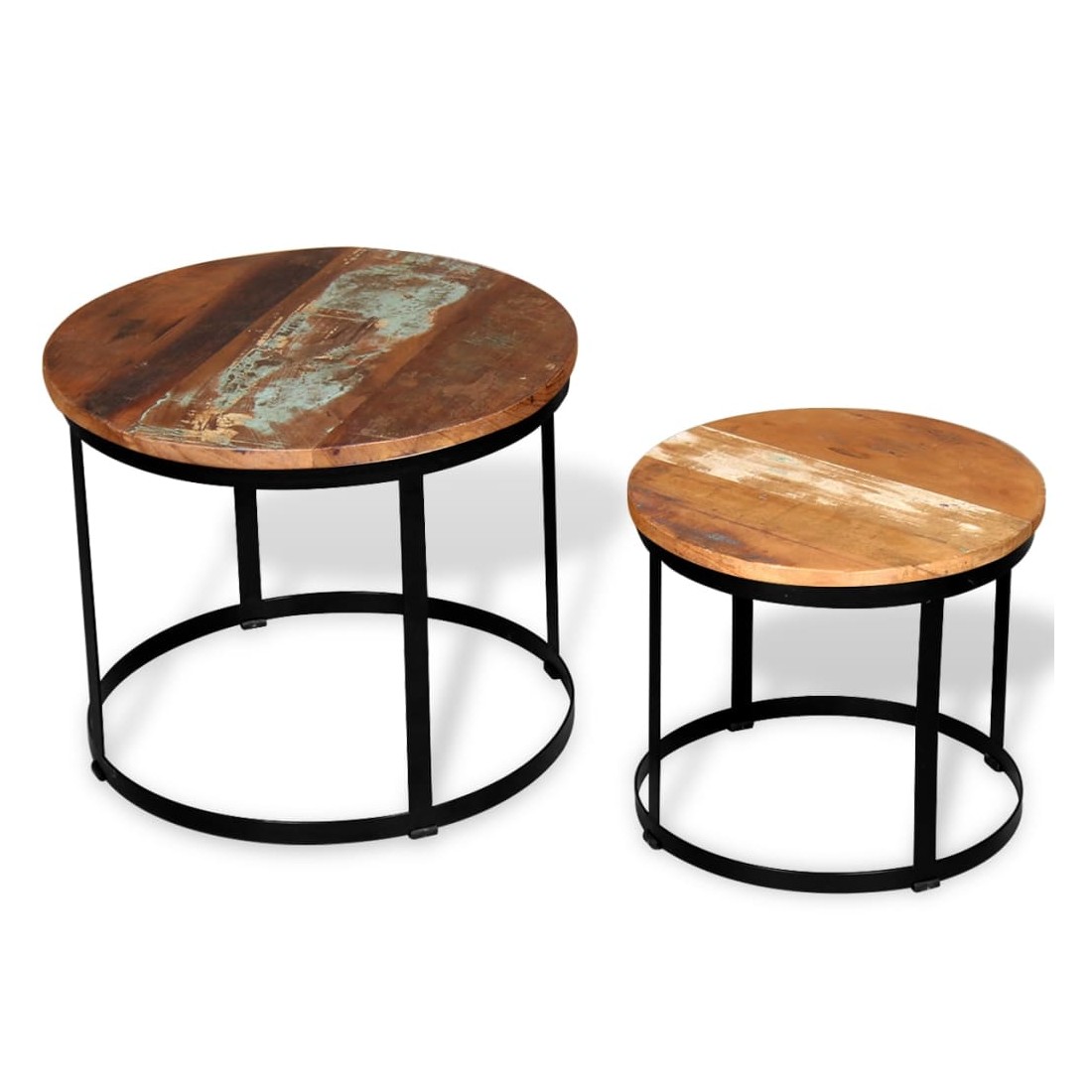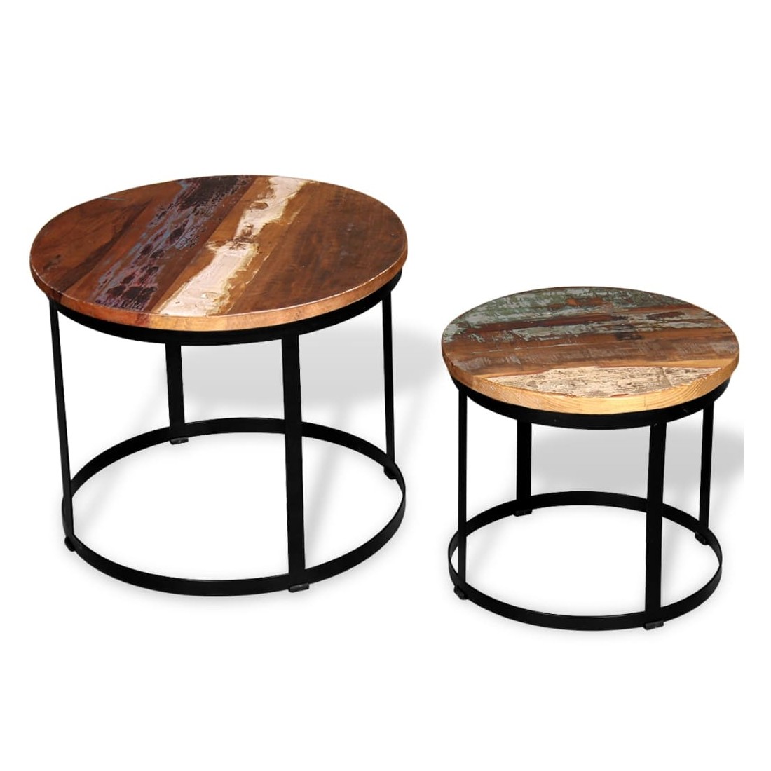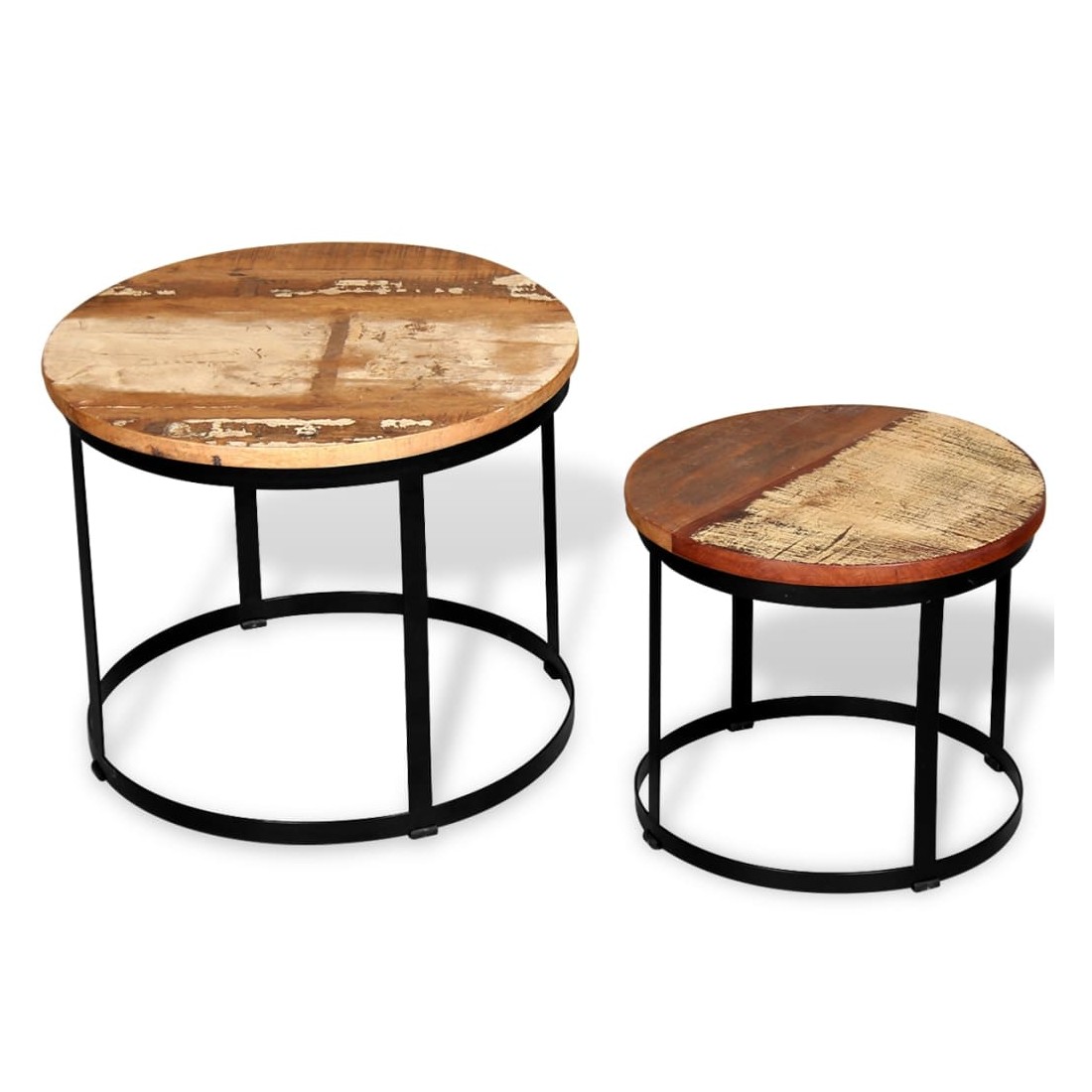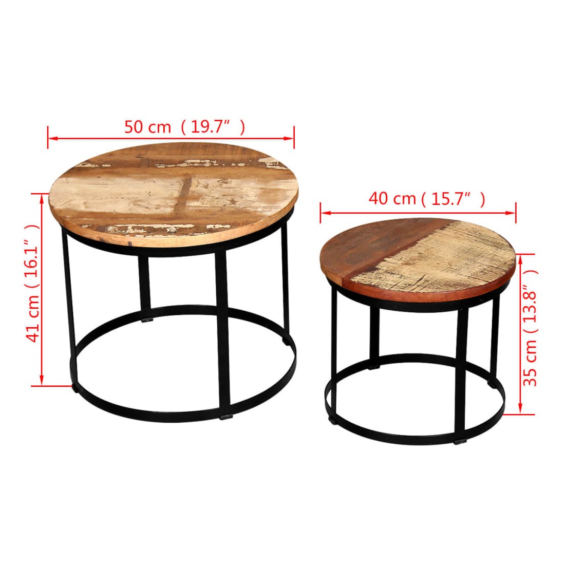 Table basse 2 pcs Bois récupéré massif Rond 40 cm / 50 cm