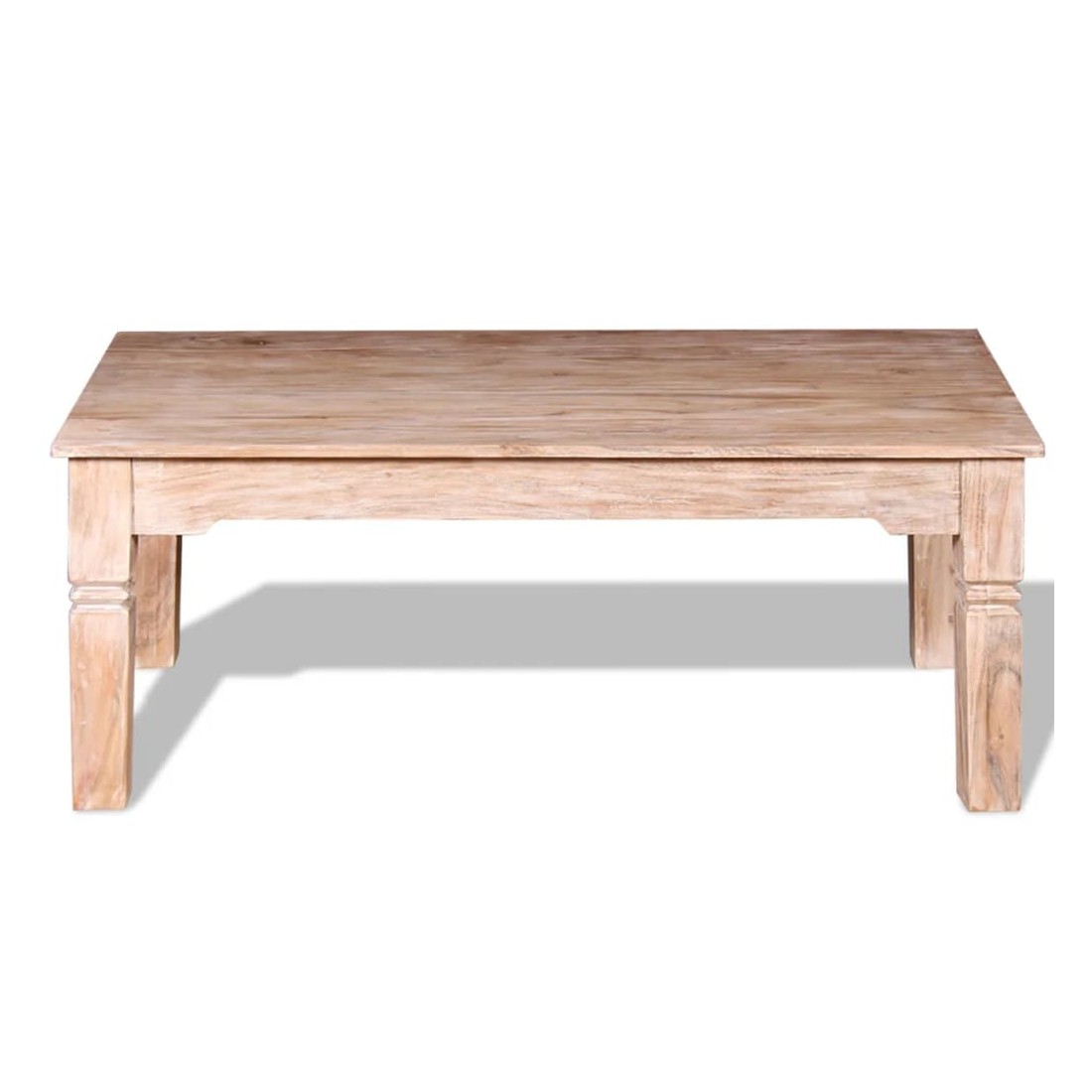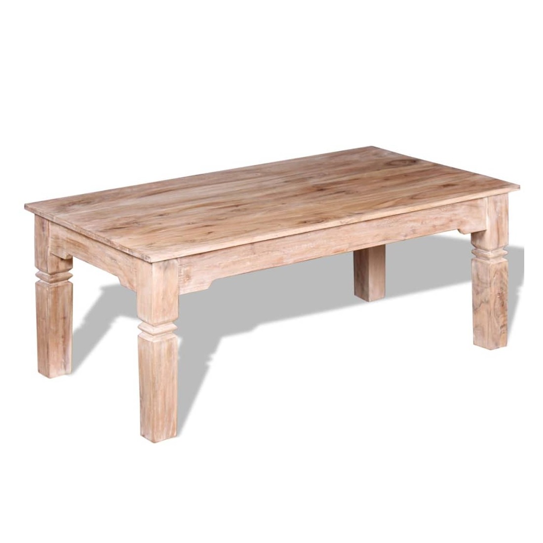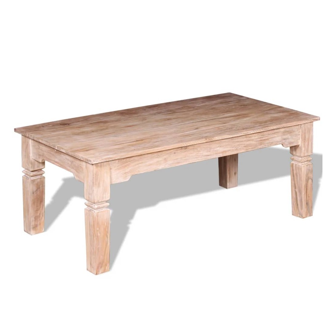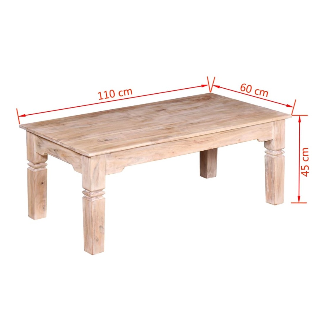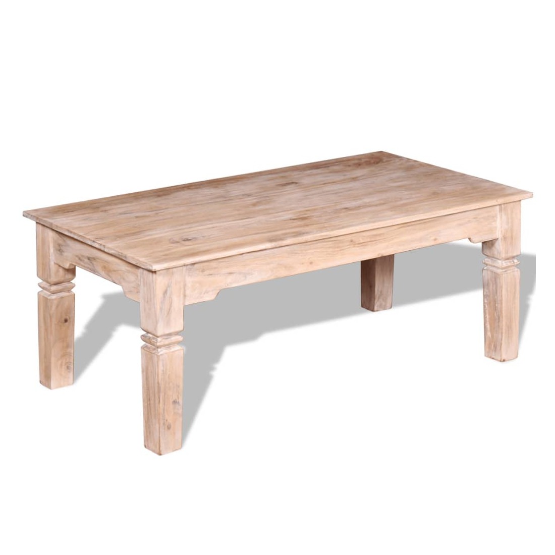 Cette table basse unique, en bois d'acacia massif avec une finition brossée blanche, sera un excellent ajout à votre pièce. Elle peut également être utilisée comme table auxiliaire, table d'appoint et table de salon. Le dessus de table solide offre une surface stable et sûre sur laquelle vous pouvez placer des boissons, une corbeille de fruits, un vase ou d'autres objets décoratifs. Les quatre pieds robustes s'ajoutent à la structure robuste. La table basse a été faite à la main à partir de bois massif. L'artisanat raffiné et les magnifiques grains de bois rendent chaque meuble unique et légèrement différent de l'autre. Remarque importante : les couleurs varient d'un meuble à l'autre, rendant chacune de nos tables basses unique. La livraison est aléatoire, ce qui garantit l'exclusivité et l'individualité de votre produit.