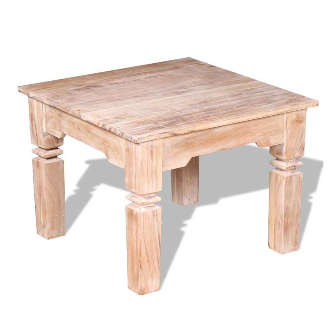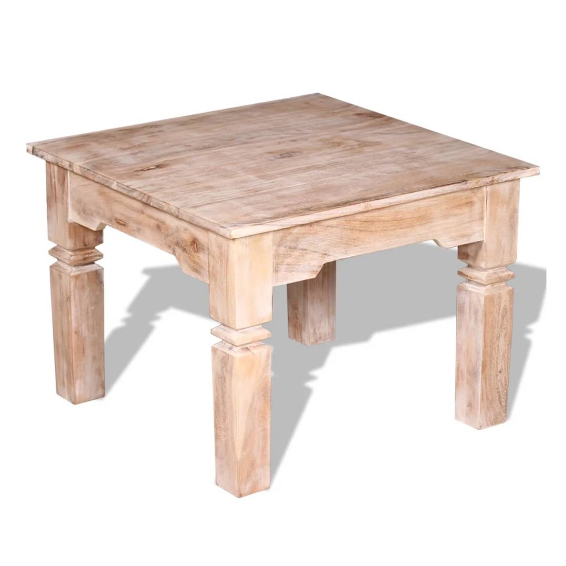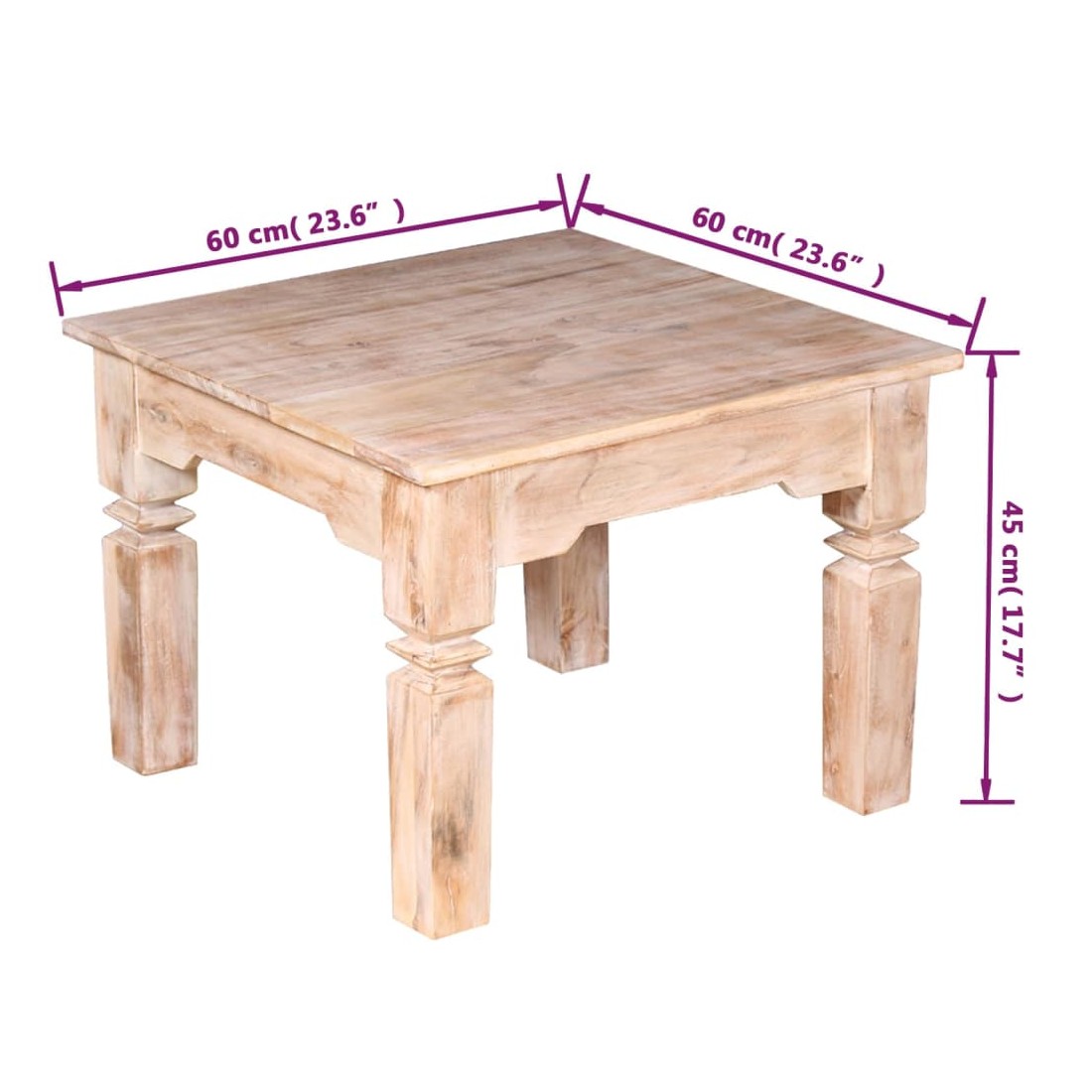 Cette table basse unique, en bois d'acacia massif avec une finition brossée blanche, sera un excellent ajout à votre pièce. Elle peut également être utilisée comme table auxiliaire, table d'appoint et table de salon. Le dessus de table solide offre une surface stable et sûre sur laquelle vous pouvez placer des boissons, une corbeille de fruits, un vase ou d'autres objets décoratifs. Les quatre pieds robustes s'ajoutent à la structure robuste. La table basse a été faite à la main à partir de bois massif. L'artisanat raffiné et les magnifiques grains de bois rendent chaque meuble unique et légèrement différent de l'autre. Remarque importante : les couleurs varient d'un meuble à l'autre, rendant chacune de nos tables basses unique. La livraison est aléatoire, ce qui garantit l'exclusivité