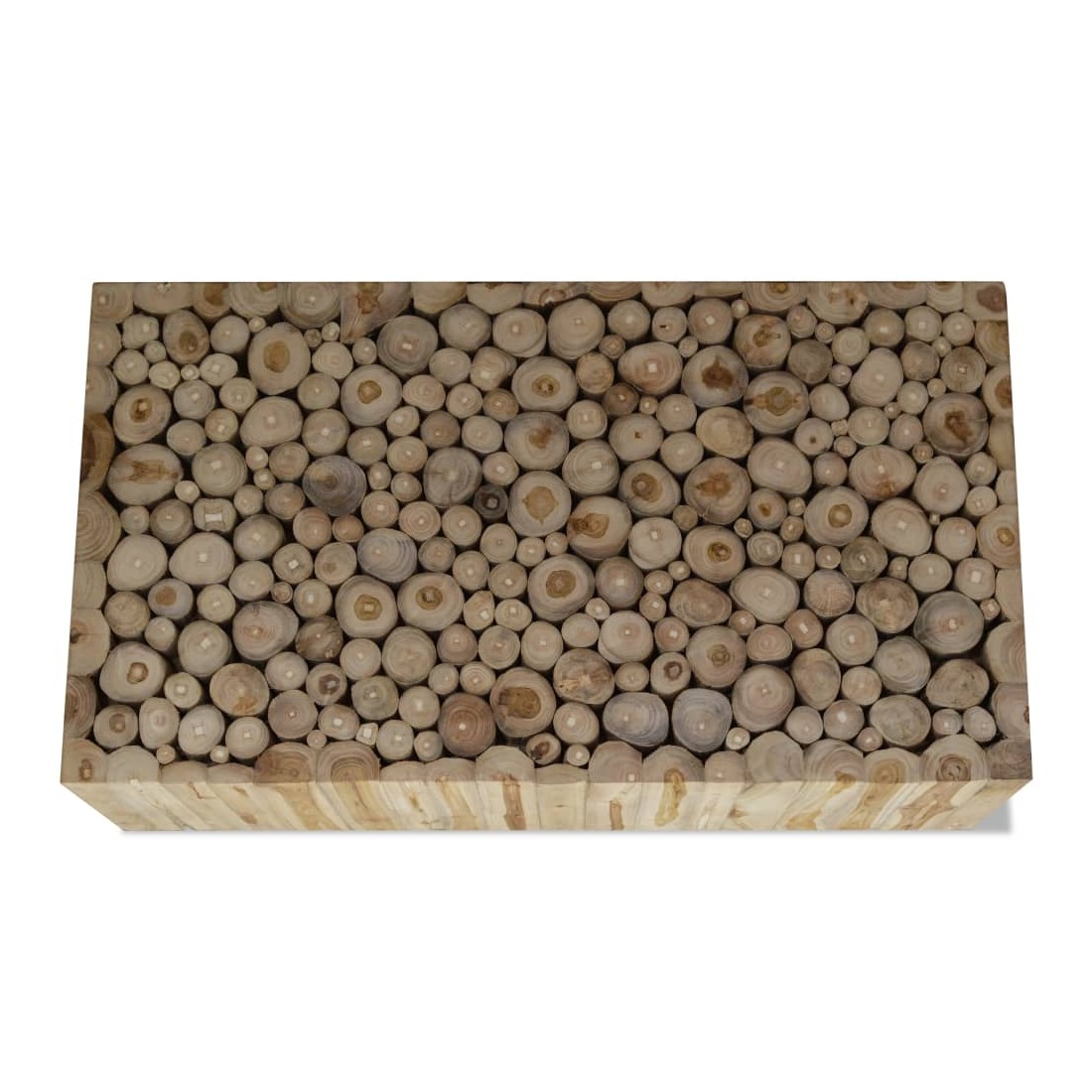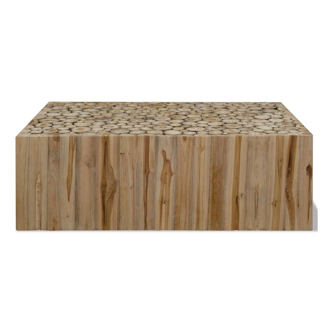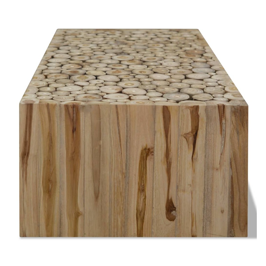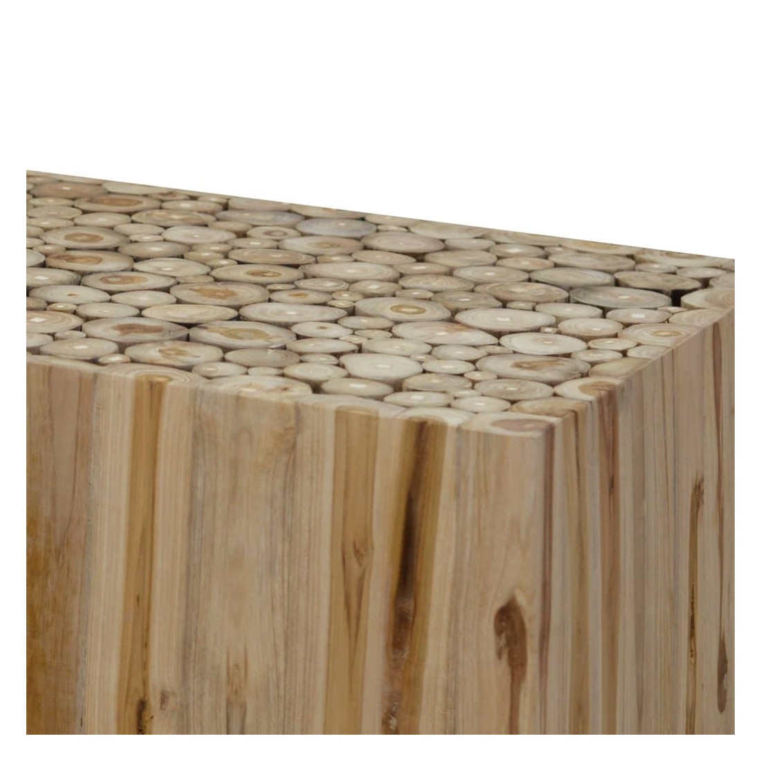 Cette table basse unique sera un supplément distinctif à votre décor. Elle peut également être utilisée comme table latérale ou table d'appoint. Cette belle table durable est composée de tranches de bois de teck véritable pour imiter l'apparence d'une pile de bûches. Elle est très robuste, durable et stable et donc idéale pour placer des boissons, des vases, des plantes en pot, des paniers à fruits et d'autres articles décoratifs. Elle est déjà assemblée; aucun assemblage n'est requis. Remarque importante : la couleur peut varier d'une pièce à l'autre, ce qui rend chacune de nos tables basses unique. La livraison est aléatoire, ce qui garantit l'exclusivité et l'individualité de votre produit.