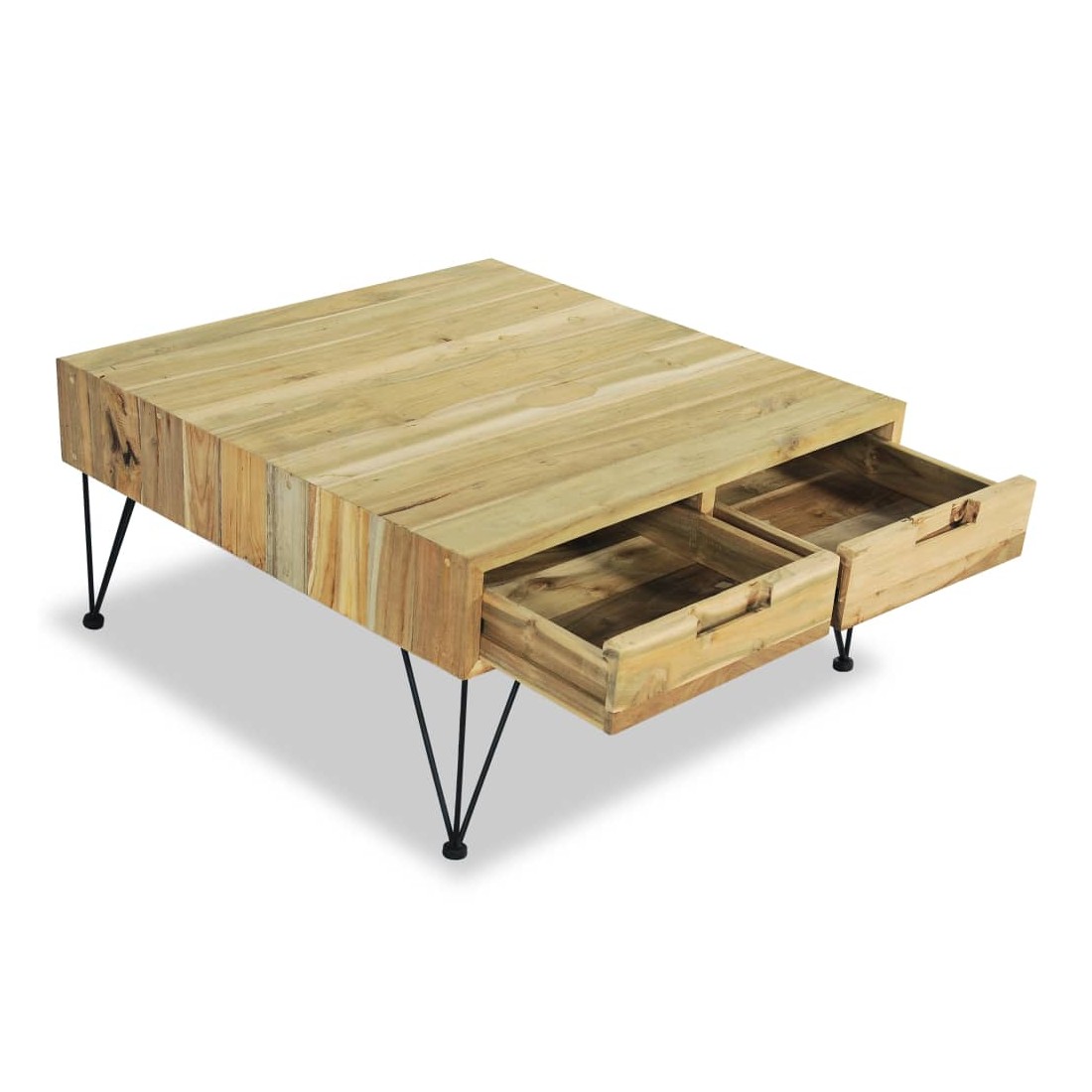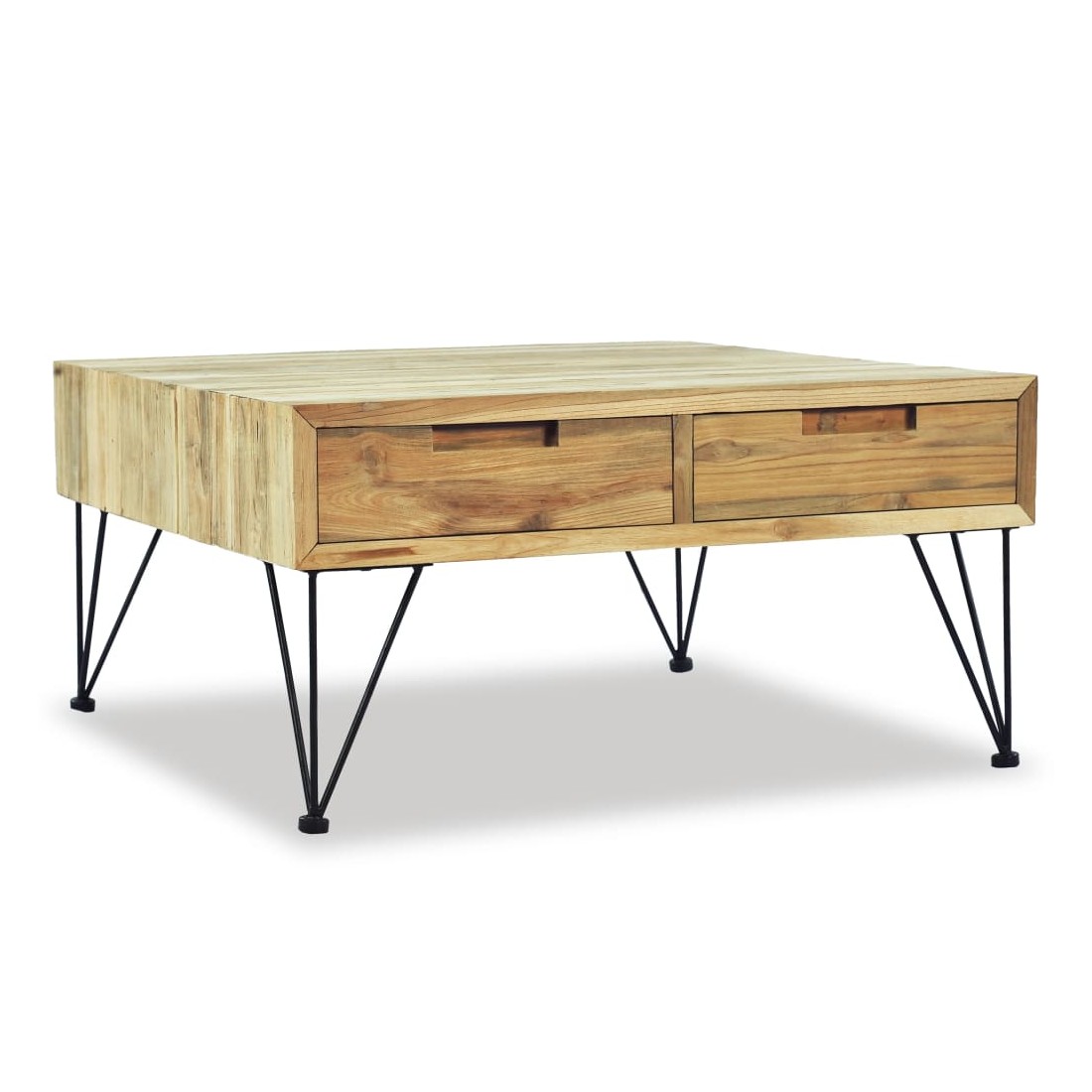 Cette table basse de style colonial en teck massif recyclé, ajoutera une touche de charme rustique à votre intérieur. Elle peut également être utilisée comme table d'appoint, table de canapé ou table d'extrémité. La table dispose d'un dessus de table en bois dur robuste, sur lequel vous pouvez placer des objets décoratifs comme des paniers de fruits ou des vases. Les 2 tiroirs offrent amplement d'espace pour garder toutes sortes de petits objets bien organisés et à portée de main. Cette table d'appoint robuste est soutenue par de solides pieds en fer forgé. L'assemblage est vraiment facile. Remarque importante : les couleurs et les grains varient d'une pièce à l'autre, rendant chacune de nos tables basses unique. La livraison est aléatoire, ce qui garantit l'exclusivité et l'individualité de votre produit.