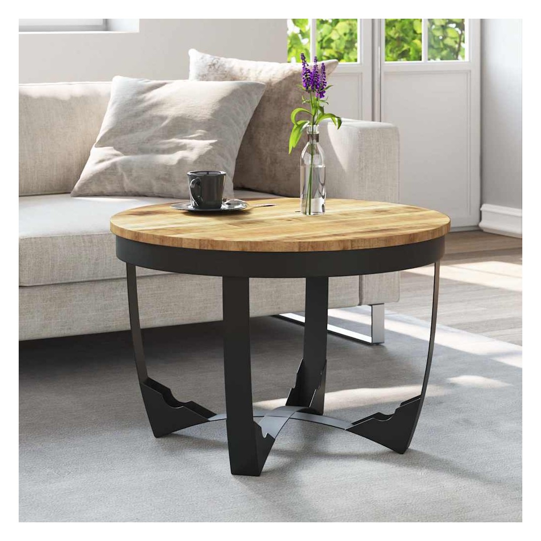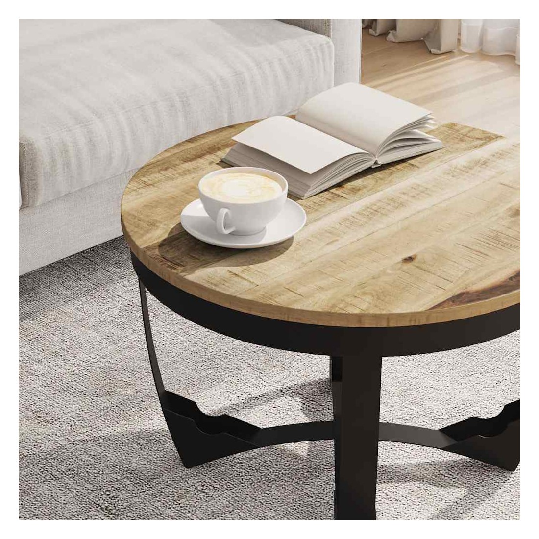 • Matériau : bois de manguier brut massif + acier enduit de poudre
