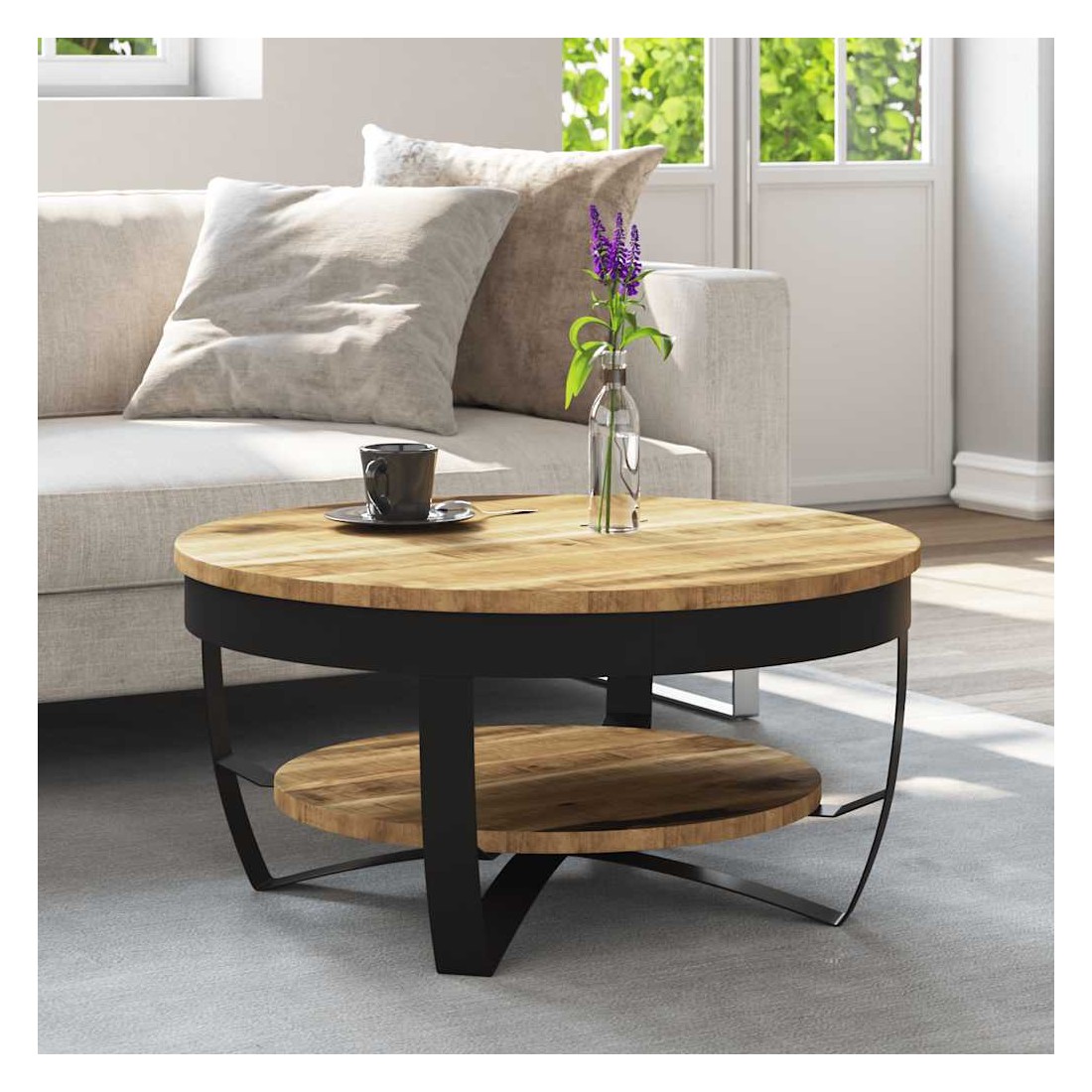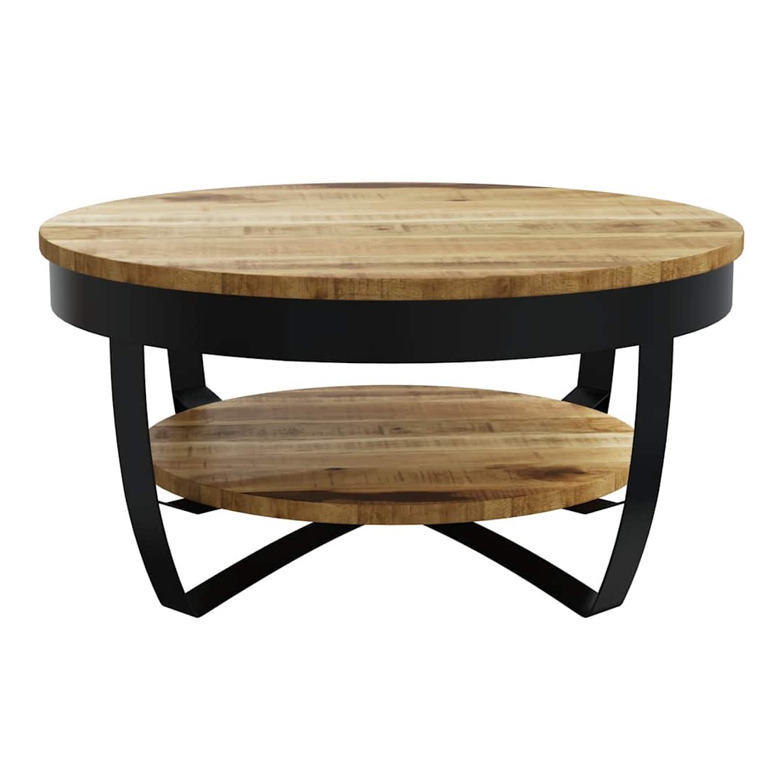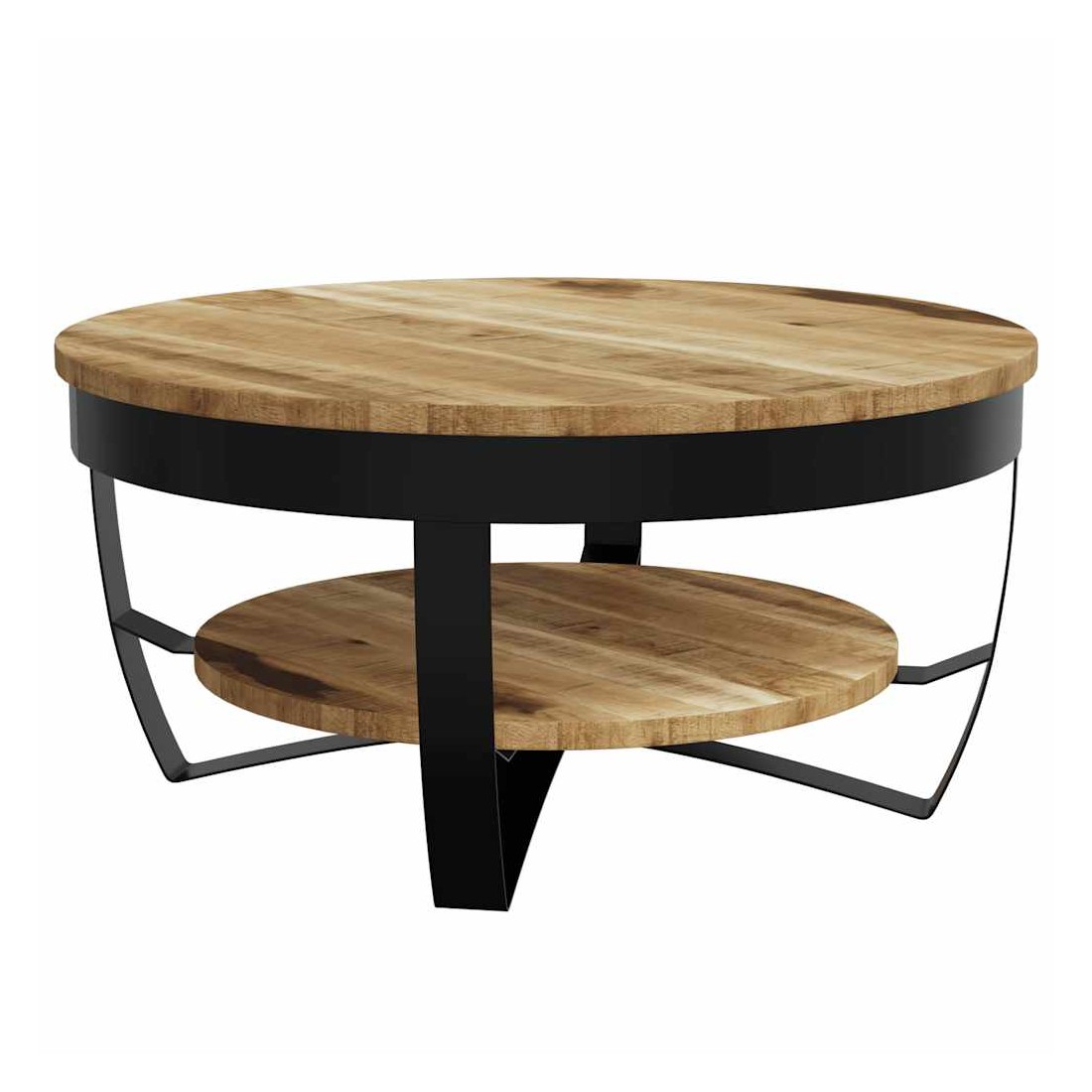 - Matériau : bois de manguier brut massif + acier enduit de poudre