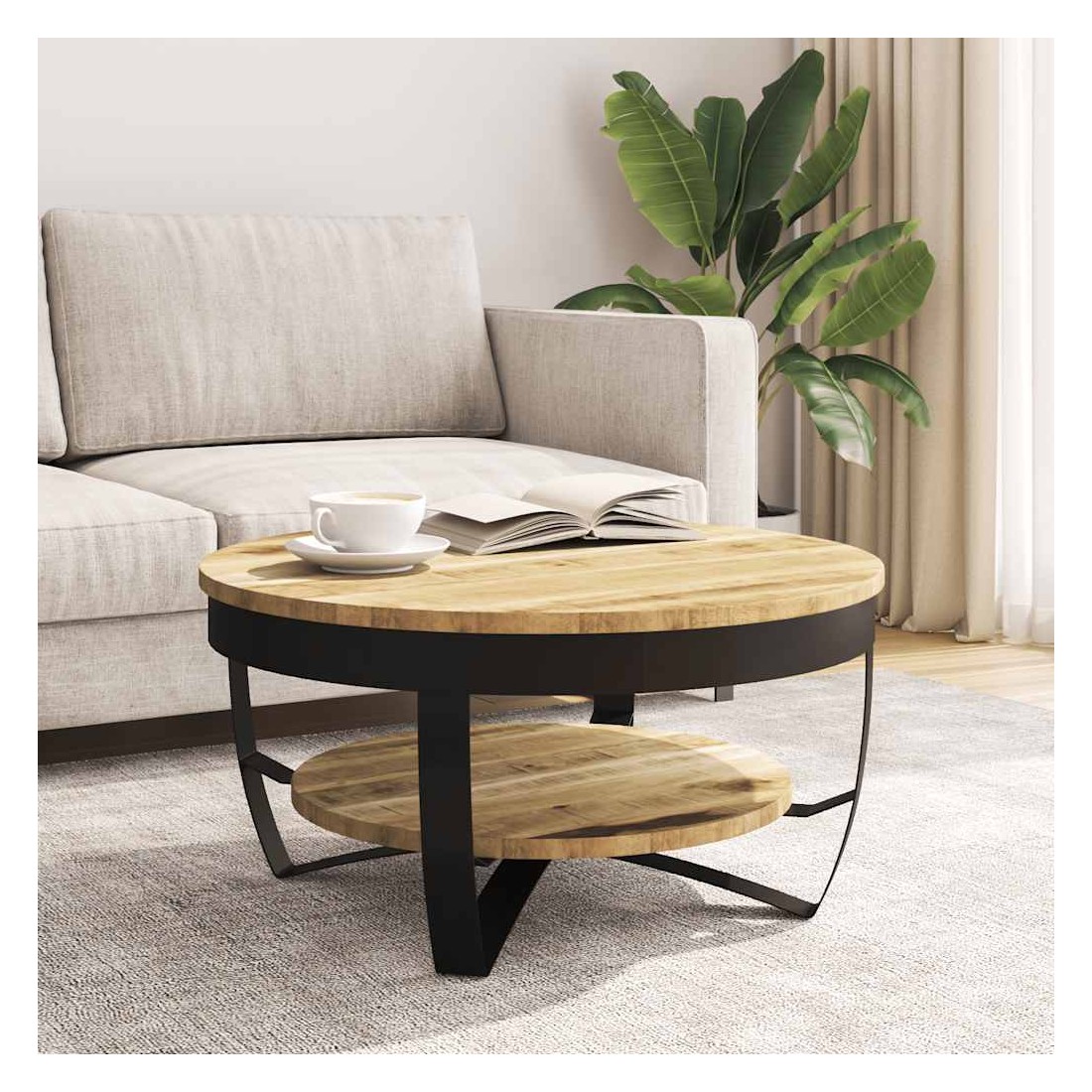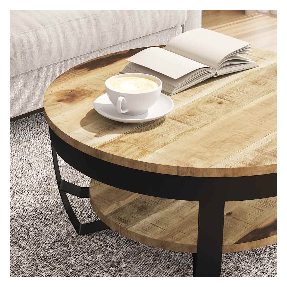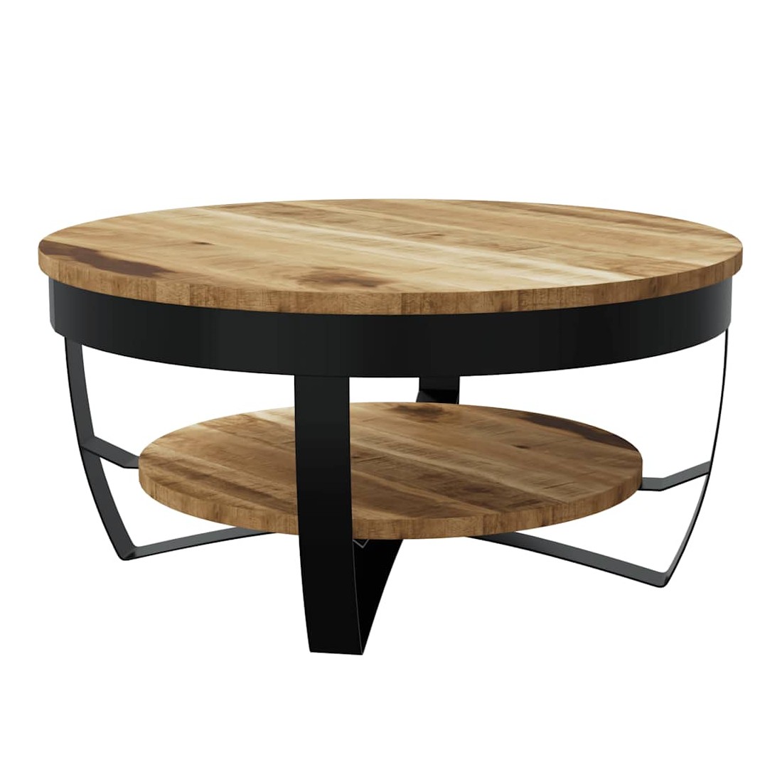 - Matériau : bois de manguier brut massif + acier enduit de poudre