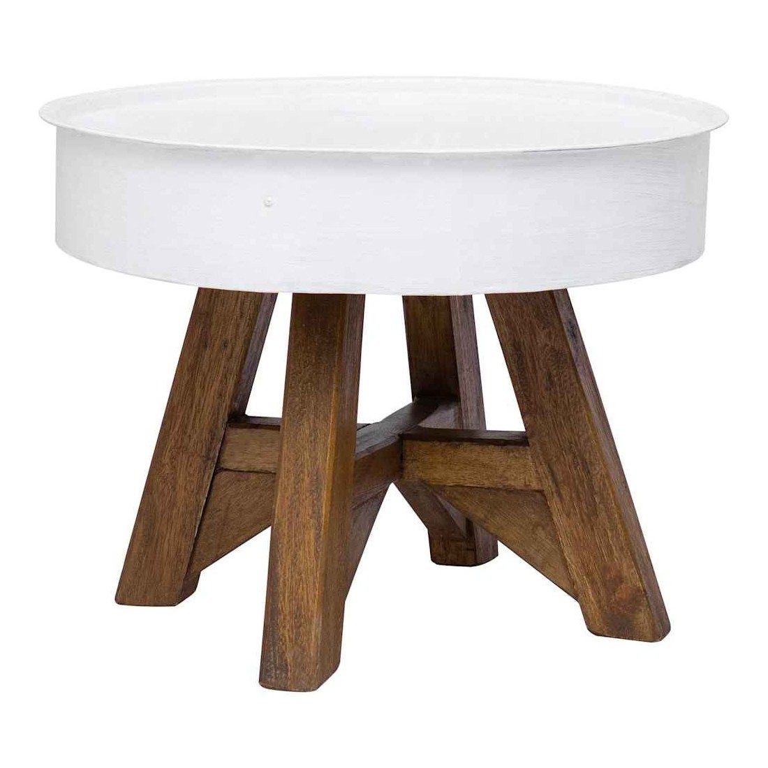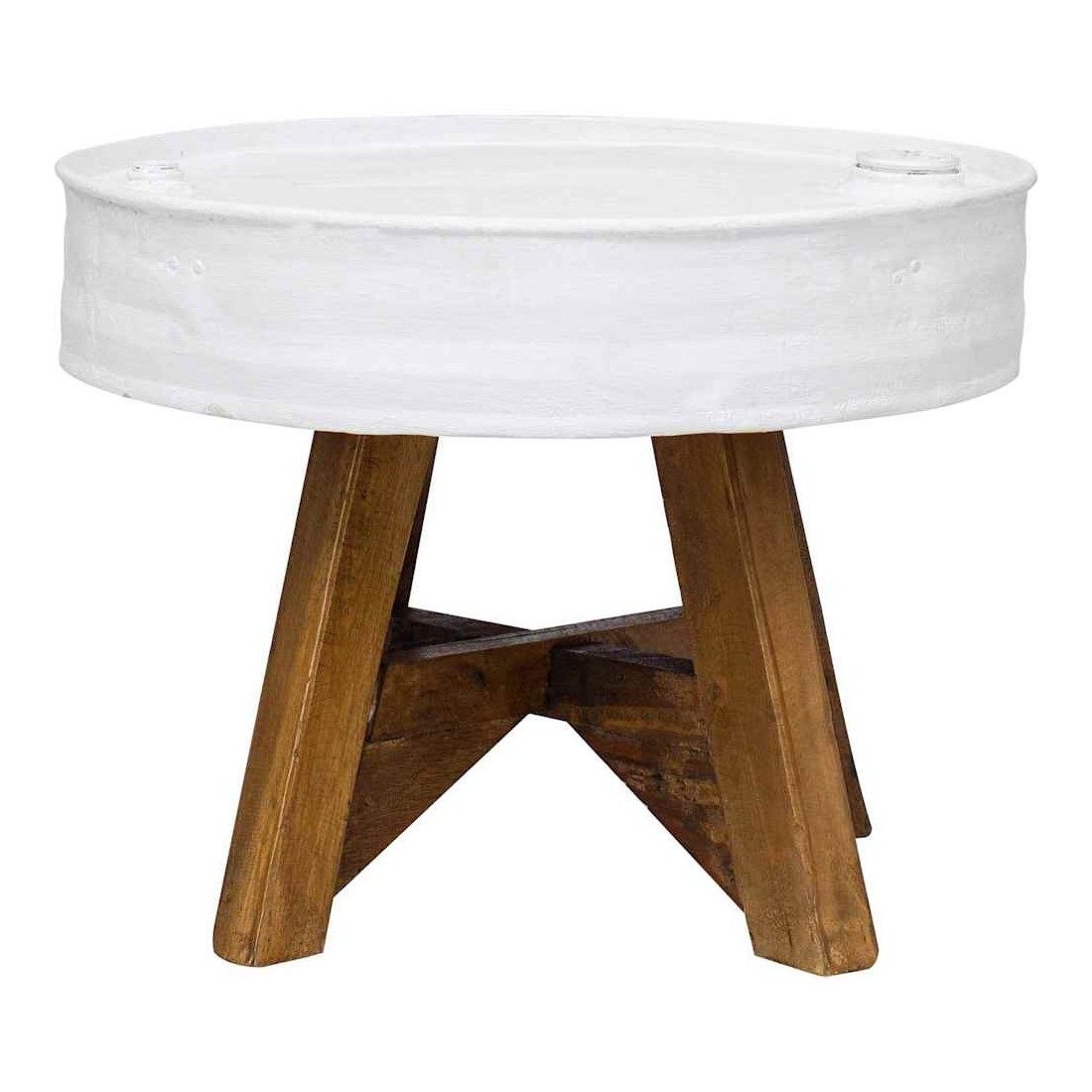 - Matériau : Plateau en acier zingué et finition transparente + pieds en bois recyclé massif