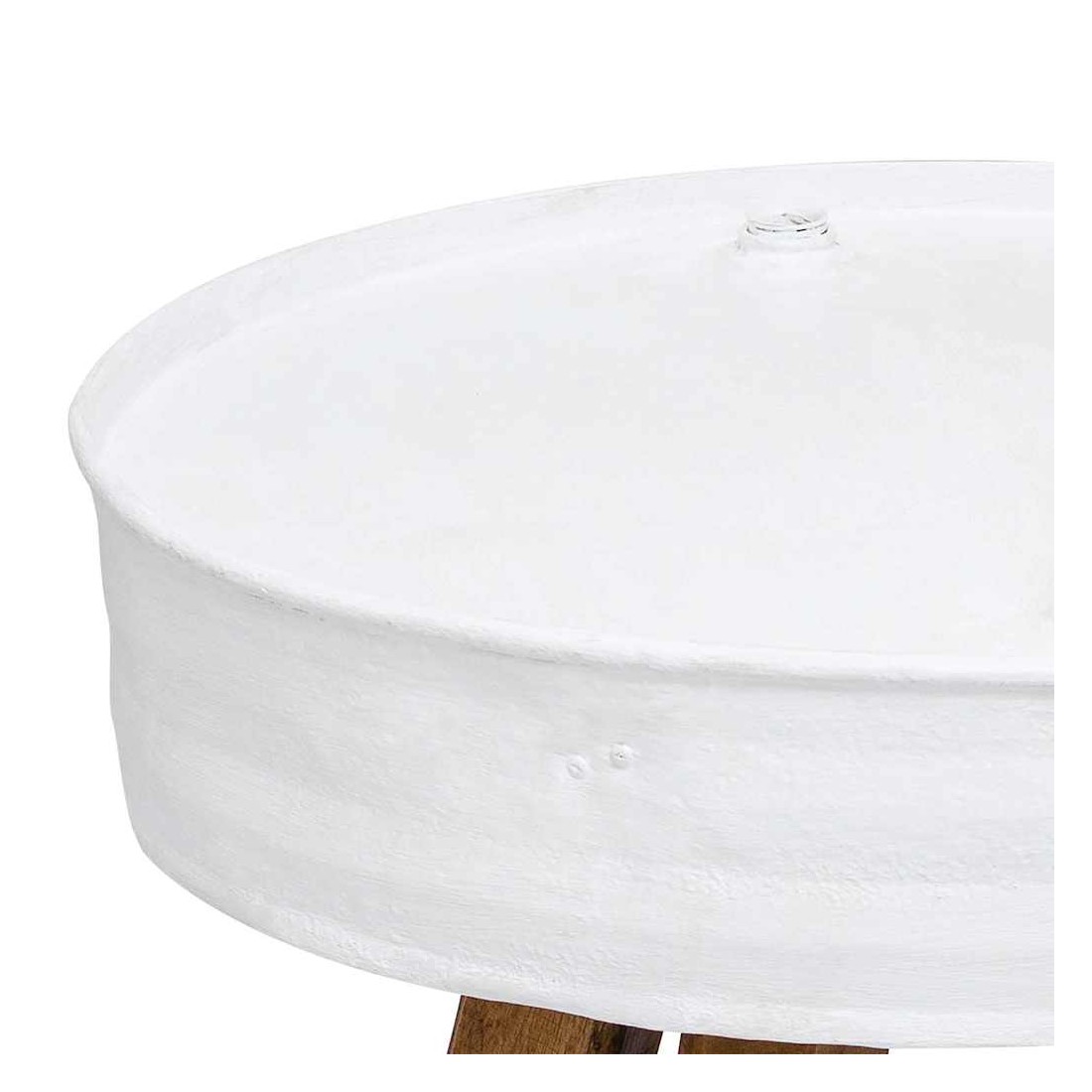 Cette table basse en bois de récupération, faite à la main, a un design industriel unique qui en fera un ajout saisissant à votre décor. La table basse peut également être utilisée comme table d'appoint. Les pieds de cette table basse sont faits de bois solide de récupération, qui a les caractéristiques de différents bois comme l'acajou, le teck, le manguier, l'acacia, etc. Chaque pièce du meuble est unique et légèrement différente de l'autre. Signes d'usure donnent à chaque pièce un look unique et ajoutent à son style vintage spectaculaire. Comme il est fait de bois de récupération, le produit peut présenter des imperfections qui reflètent son authenticité et sa riche histoire. Le bois provient d'arbres tombés naturellement, de bateaux, de maisons en bois, etc. Le dessus de table en acier a été fabriqué à partir d'un tambour récupéré et donne à la table basse son aspect industriel. Remarque importante : la couleur du bois peut varier d'une pièce à l'autre, ce qui rend chacune de nos tables basses unique. La livraison est aléatoire, ce qui garantit l'exclusivité et l'individualité de ton produit. Le haut ou le bas du baril peuvent être utilisés comme dessus de table et la livraison se fait au hasard.