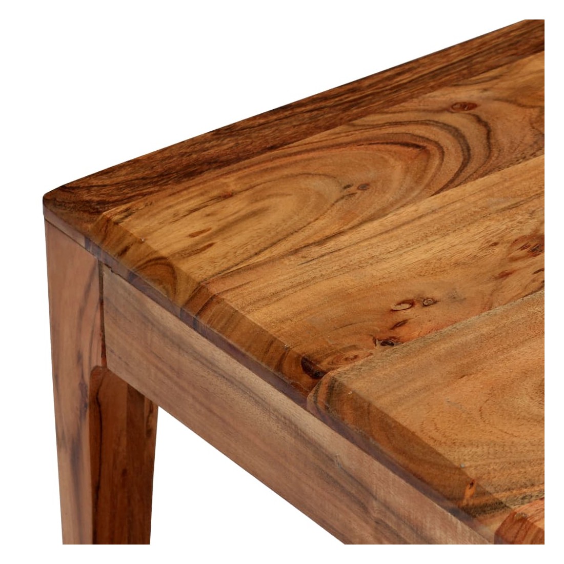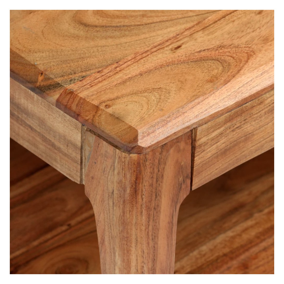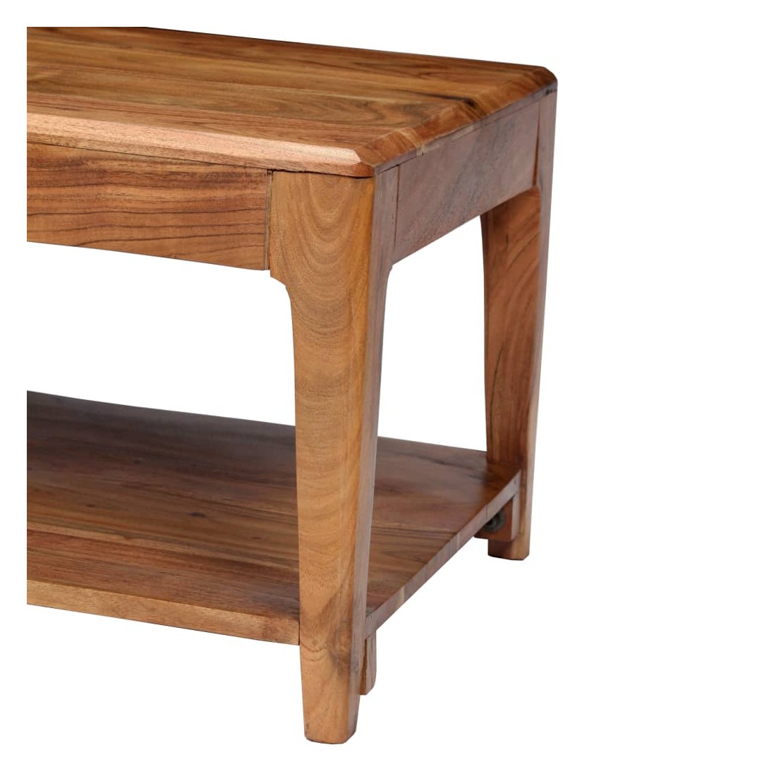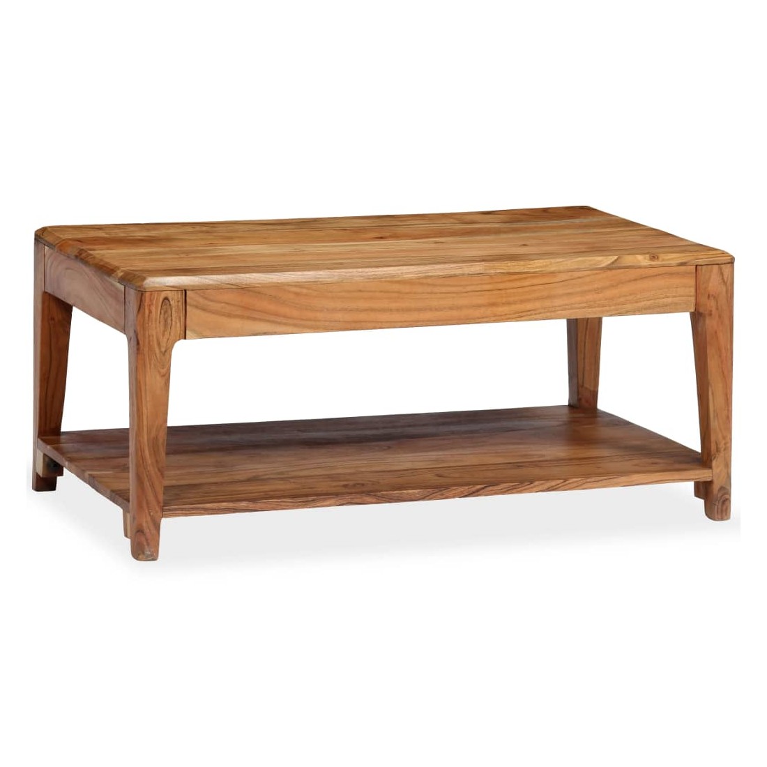 Cette table basse en bois dégage un charme rustique et sera un excellent supplément à votre intérieur. La table basse est faite de bois d'acacia solide qui a reçu une belle finition par polissage, peinture et laquage, pour lui donner un aspect raffiné. Cette table est entièrement faite à la main et les beaux grains de bois rendent chaque meuble unique et légèrement différent l'un de l'autre. Cette table d'appoint a une surface solide et stable sur laquelle vous pouvez placer vos boissons, aliments, paniers de fruits ou objets décoratifs. Cette table basse est équipée d'une étagère qui offre suffisamment d'espace pour garder vos magazines, livres, télécommandes et d'autres petits objets à portée de main. L'assemblage est facile. Remarque importante : les couleurs varient d'une pièce à l