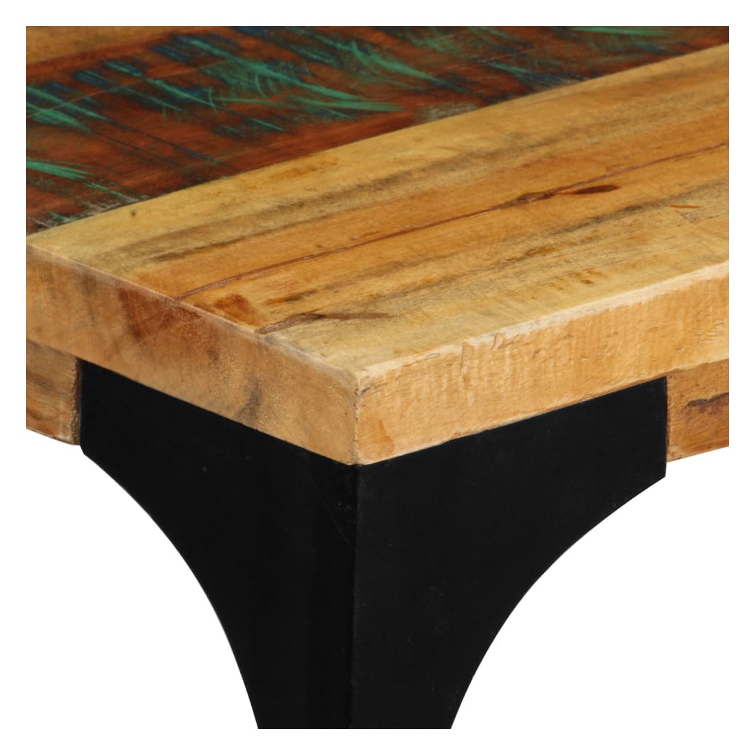 Cette table console en bois est à la fois élégante et pratique. Elle peut être utilisée comme table à dîner ou bureau. La conception élégante fera de cette table d'appoint une pièce de résistance dans n'importe quelle pièce. Cette table d'appoint est faite de bois de récupération massif et d'acier enduit de poudre, ce qui lui confère une robustesse et une durabilité considérables. Les meubles fabriqués à partir de bois de récupération ont les caractéristiques de différents bois comme le teck, le bois de manguier et l'acacia. Cela signifie que le bois de récupération conserve les caractéristiques de ces différents types de bois. Le bois de récupération est déjà vieilli, patiné et séché et, par conséquent, il ne rétrécit pas et ne se plie pas. Chaque étape du processus de fabrication est