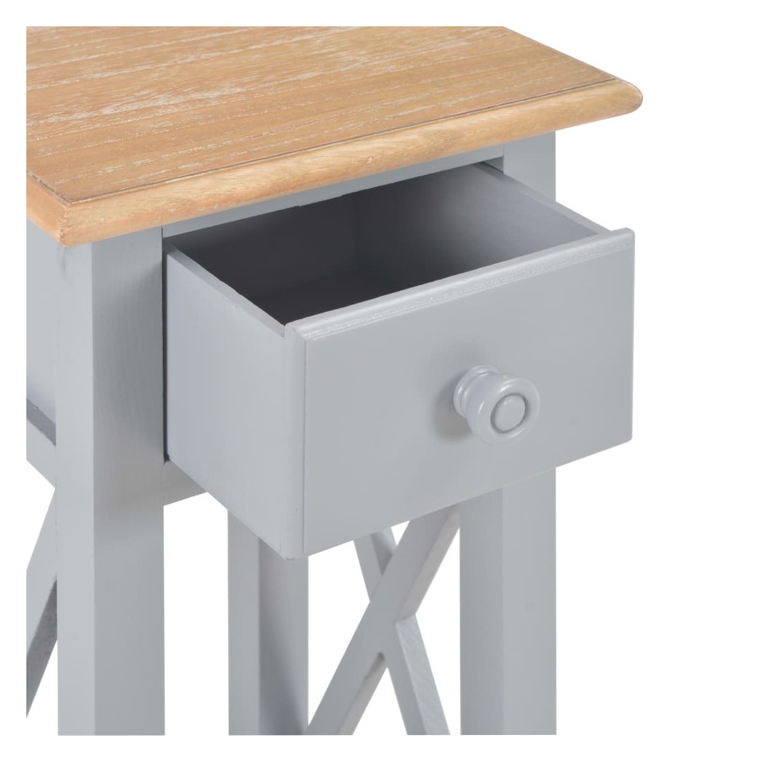 Cette belle table d'appoint sera un excellent supplément à votre entrée ou salon. Elle peut être utilisée comme espace de stockage pour les téléphones, pots de fleurs et autres objets décoratifs. La table d'appoint présente un excellent artisanat combiné avec la fonctionnalité. Le tiroir vous offre un espace supplémentaire pour vos ornements, cosmétiques et autres effets personnels. Cette table d'appoint est faite de pinède de haute qualité avec la finition peinte grise pour la durabilité, qui vous donnera des années de service.