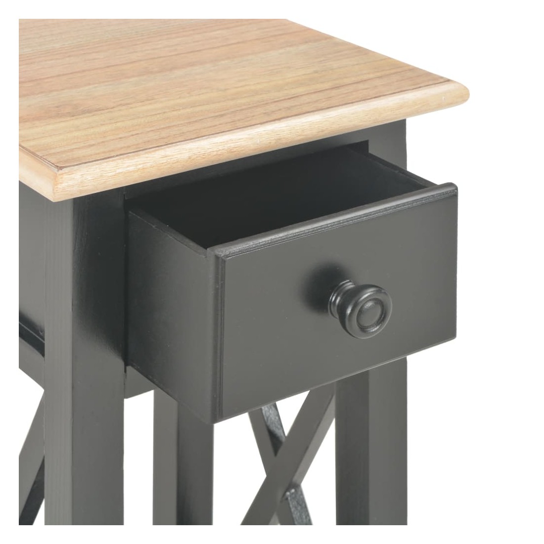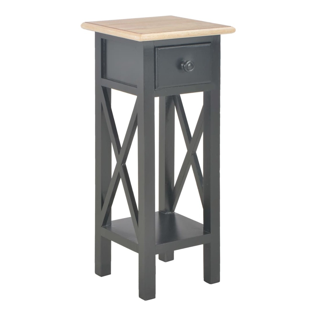 Cette belle table d'appoint sera un excellent supplément à votre entrée ou salon. Elle peut être utilisée comme espace de stockage pour les téléphones, pots de fleurs et autres objets décoratifs. La table d'appoint présente un excellent artisanat combiné avec la fonctionnalité. Le tiroir vous offre un espace supplémentaire pour vos ornements, cosmétiques et autres effets personnels. Cette table d'appoint est faite de pinède de haute qualité avec la finition peinte noire pour la durabilité, qui vous donnera des années de service.
