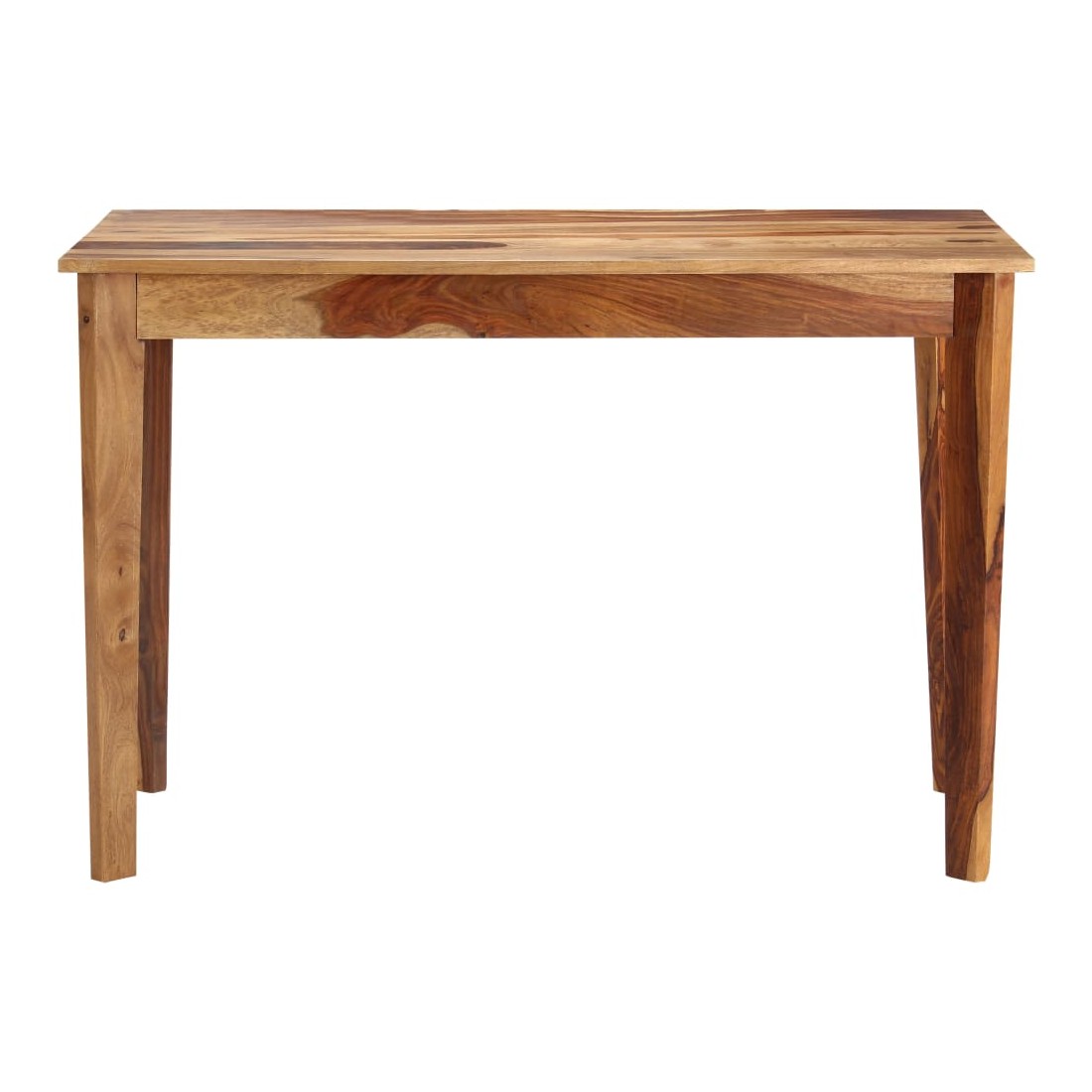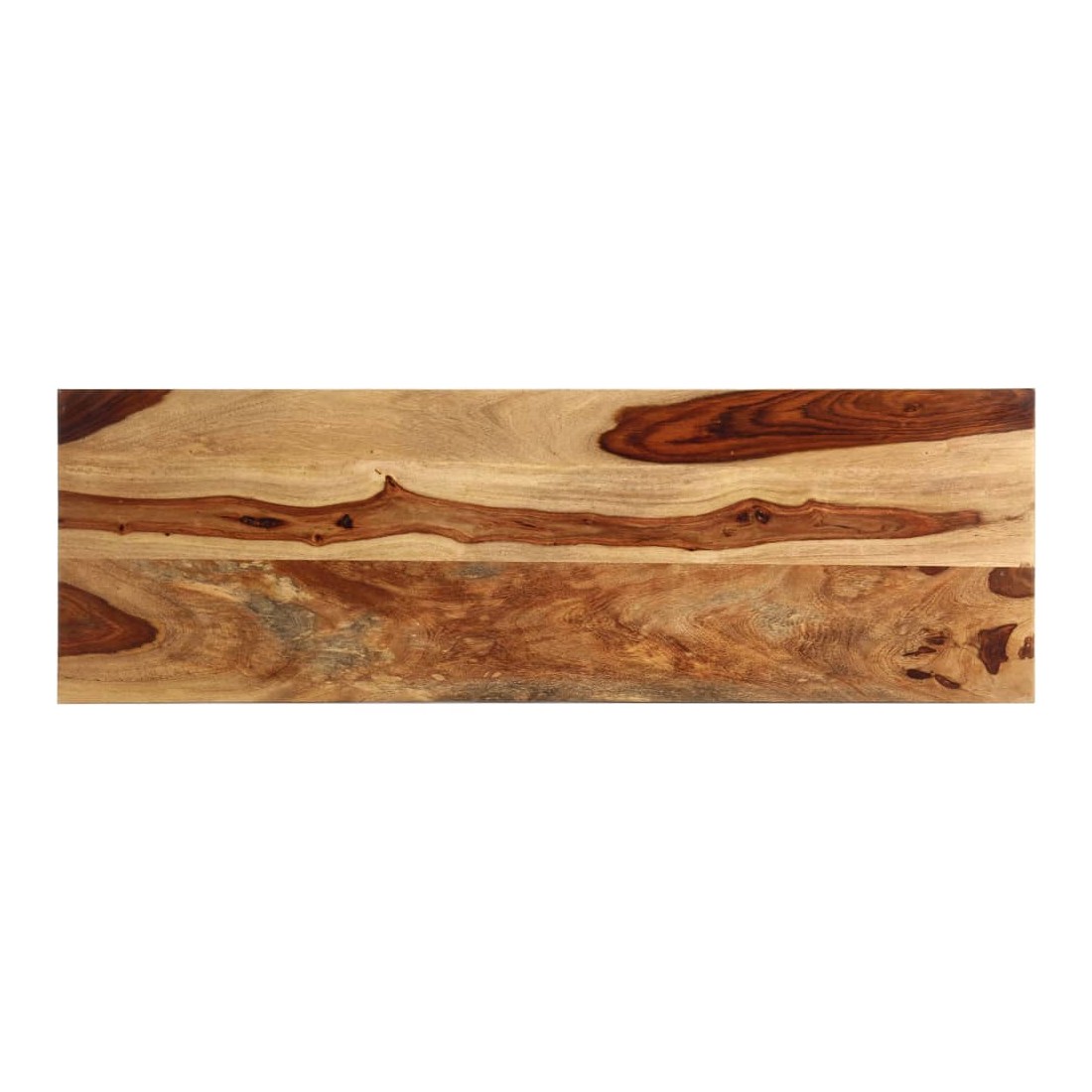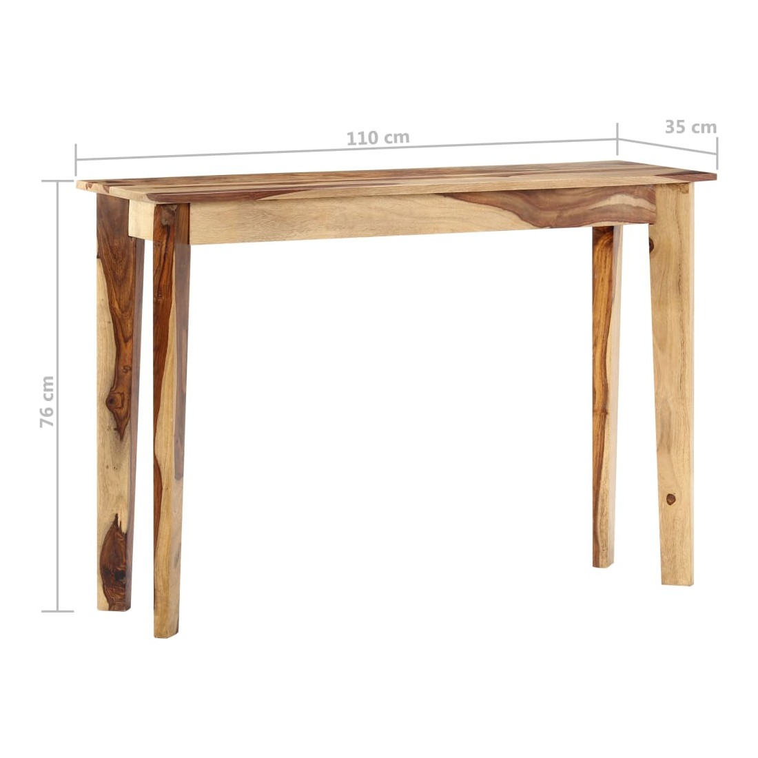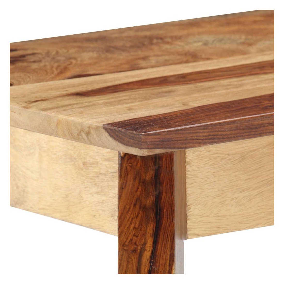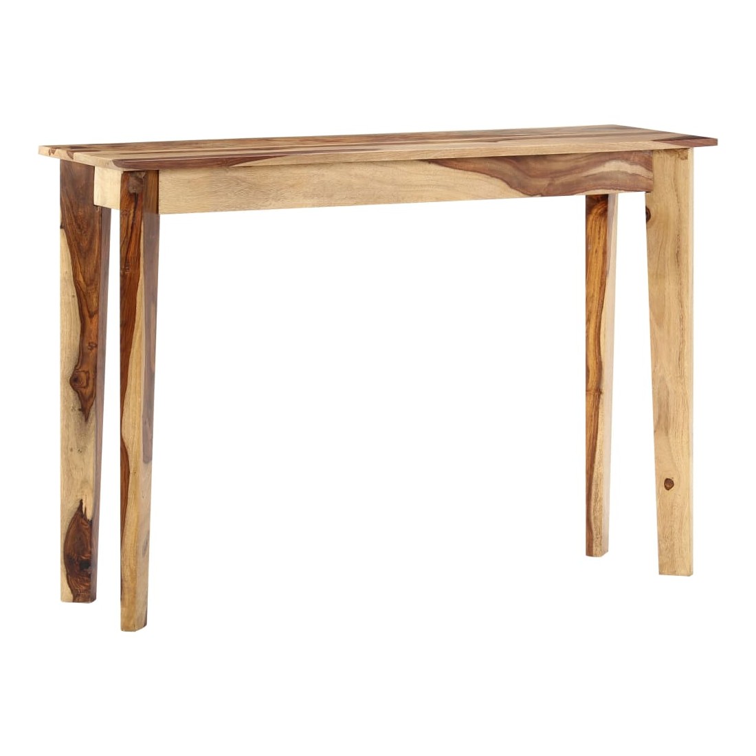 Cette table console en bois de Sesham solide apportera une touche pratique et intemporelle à votre décoration intérieure. La table est faite de bois massif de Sesham et le savoir-faire artisanal exquis et les magnifiques grains de bois rendent chaque meuble unique et légèrement différent l'un de l'autre. Le Sesham est un bois dur tropical qui est célèbre pour ses grains riches, aussi connu sous le nom de bois de rose ou palissandre. Cette table d'appoint a un dessus de table robuste, sur lequel vous pouvez placer des objets décoratifs comme des corbeilles de fruits ou des vases. De plus, les solides pieds en bois contribuent à la robustesse de la construction. Ce produit est facile à assembler. Remarque importante : Les couleurs varient d'une pièce à une autre, rendant chacune d'elle unique ; la livraison est aléatoire.