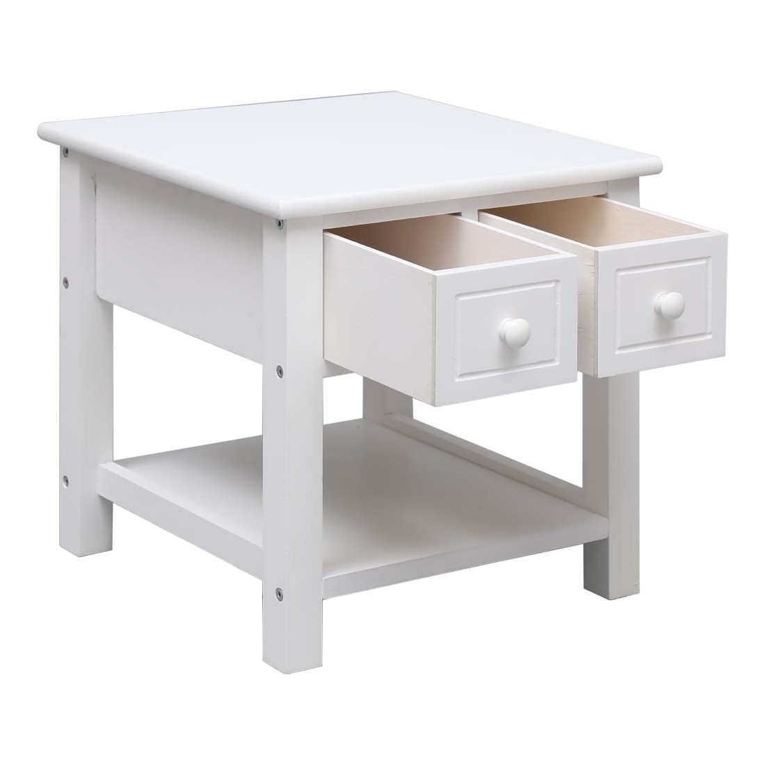 Notre table d'appoint apportera une touche pratique et décorative à votre intérieur. Elle peut également être utilisée comme support de téléphone, armoire de chambre à coucher, etc. Fabriquée en bois de Paulownia et en MDF, cette table basse est durable et robuste. La table de canapé offre un espace de rangement avec 2 tiroirs et la tablette inférieure. Le dessus de table robuste est idéal pour afficher des objets décoratifs, des cadres photo ou des plantes en pot. Elle est facile d'essuyer avec un chiffon humide. La table d'appoint est facile à assembler.