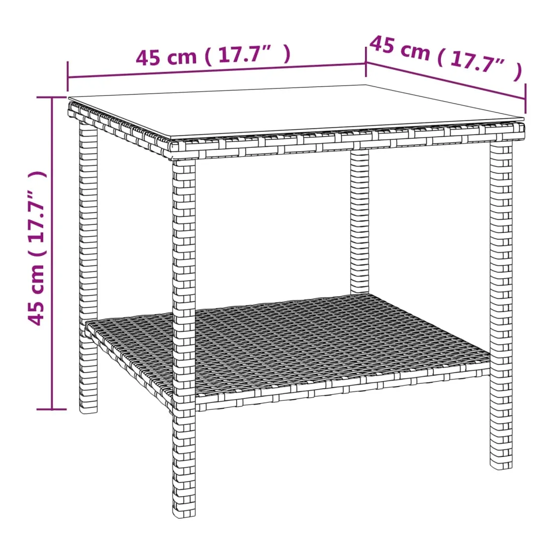 Vous êtes à la recherche d'une table pour garder vos articles essentiels ? Cette table d'appoint est un choix parfait, à la fois pratique et beau ! Matériau durable : la résine tressée, également connue sous le nom de rotin poly, résiste aux intempéries et est facile à nettoyer. Elle reste belle à l'extérieur pendant une longue période. Elle est plus économique que d'autres matériaux, tout en offrant une excellente qualité, une commodité et un aspect esthétique.Cadre en acier enduit de poudre : le cadre en acier enduit de poudre de la table basse assure robustesse et stabilité.Rangement supplémentaire : l'étagère de rangement située au bas de la table peut être utilisée comme emplacement temporaire pour des objets et vous permettra d'économiser de l'espace sur votre bureau.Dessus de table facile à nettoyer : le dessus recouvert de verre trempé est facile à nettoyer, beau et élégant.Large application : vous pouvez non seulement combiner cette table unique avec vos meubles de jardin, mais aussi l'utiliser à l'intérieur. Bon à savoir :Pour faciliter au maximum le montage, chaque produit est livré avec des instructions. Remarque :Pour que vos meubles d'extérieur restent beaux, nous vous recommandons de les protéger avec une housse imperméable.