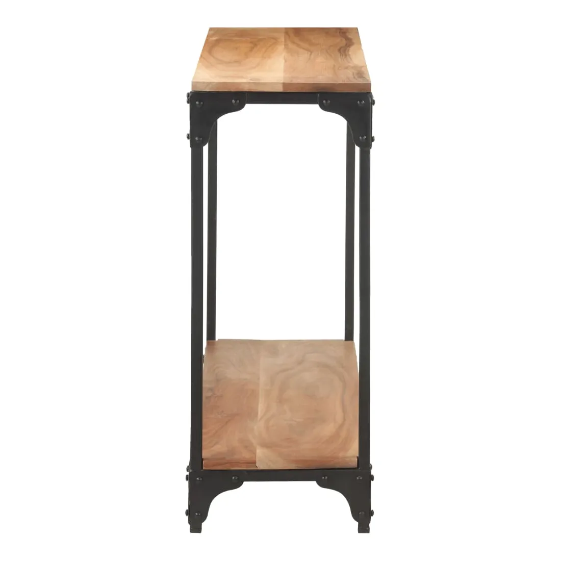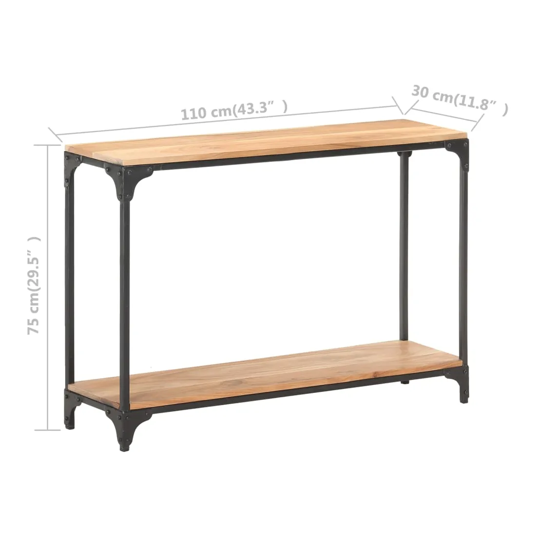 Cette table console en bois sera un complément pratique à votre salon, couloir, etc. Vous pouvez également la placer sous un miroir. Cette table de couloir est faite de bois d’acacia massif, un bois dur avec des grains denses. Cette table magnifiquement conçue est stable, durable et accrocheuse. De plus, l’artisanat exquis et les belles veines du bois font que chaque pièce soit légèrement différente l'une de l'autre. Avec son cadre en acier enduit de poudre noire, la table en bois est stable et robuste. Le dessus robuste vous offre suffisamment d’espace pour mettre vos paniers de fruits, cadres photo ou autres objets décoratifs. L’étagère inférieure est idéale pour placer des magazines, des livres et d’autres petits essentiels bien organisés et à portée de main. Remarque importante : les couleurs varient d'une pièce à l'autre, rendant chaque pièce unique. La livraison est aléatoire.
