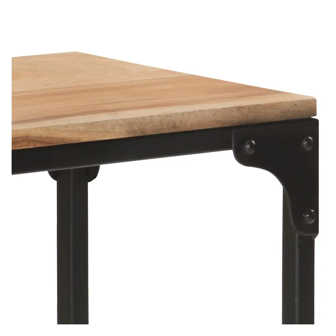 - Matériau : bois d'acacia massif avec une finition naturelle, acier enduit de poudre