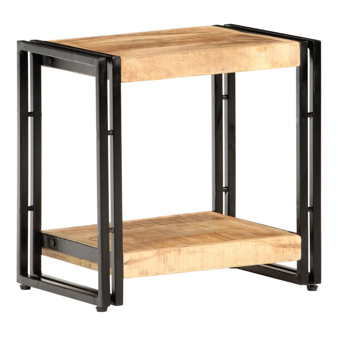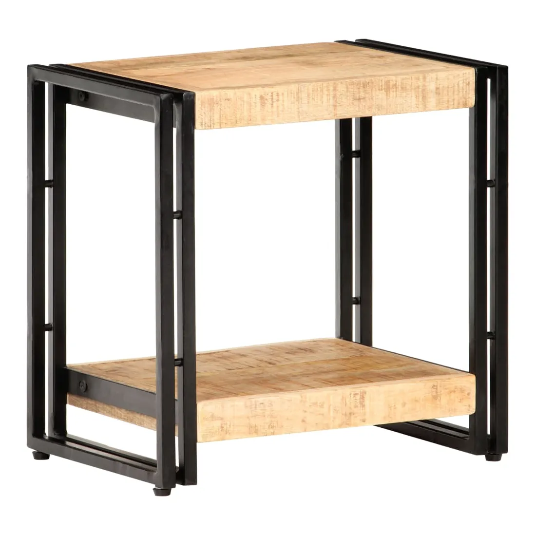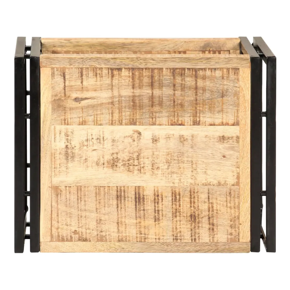 - Matériau : bois de manguier brut avec une finition naturelle, fer avec revêtement en poudre noire
